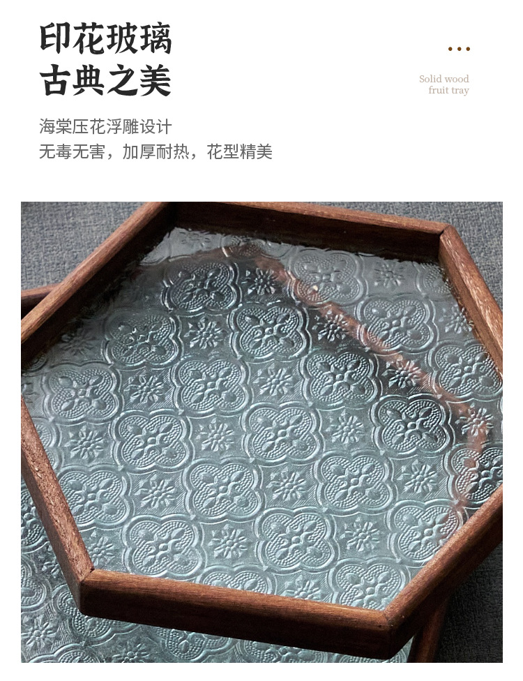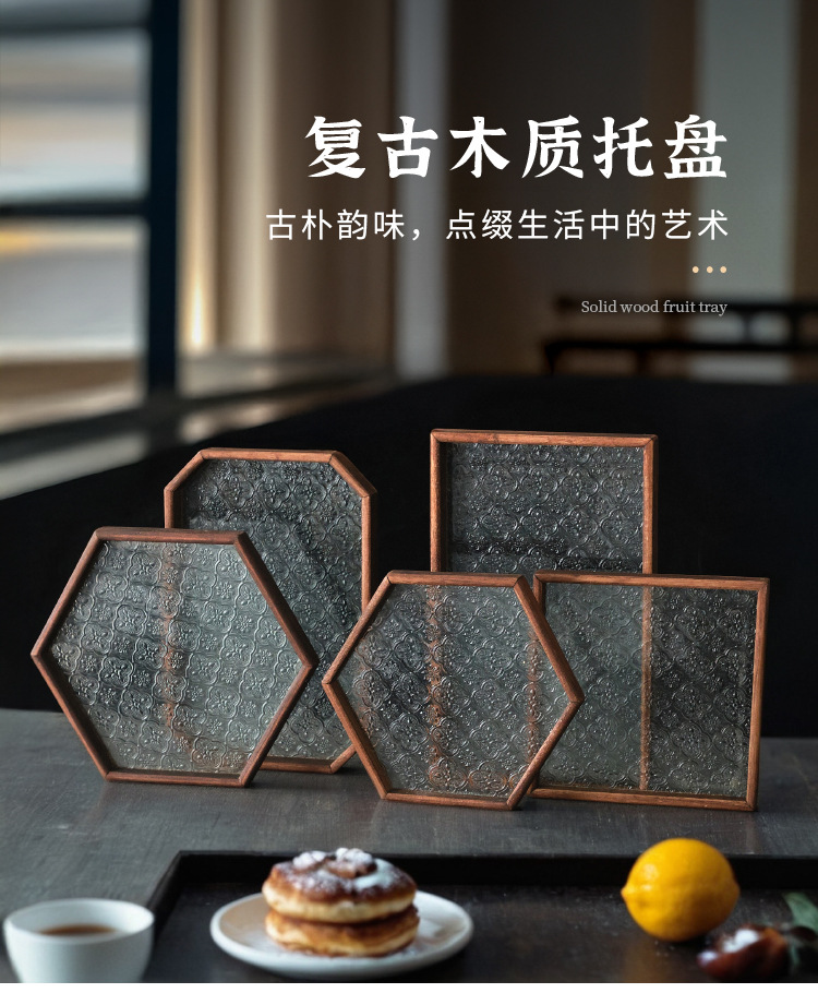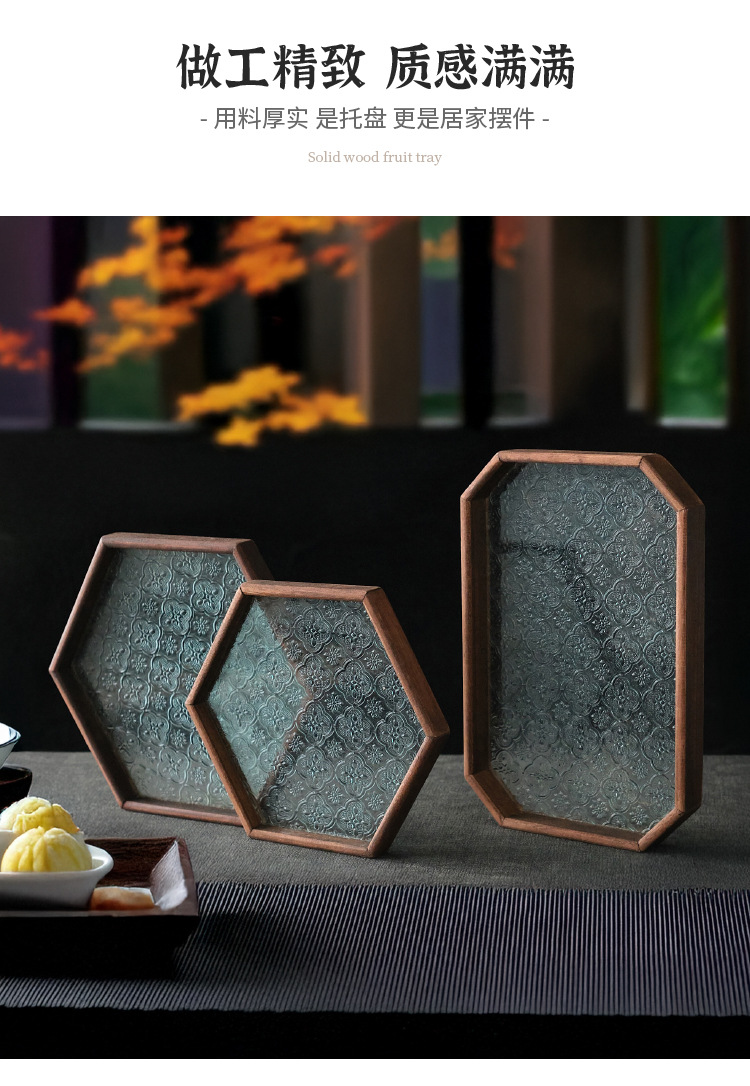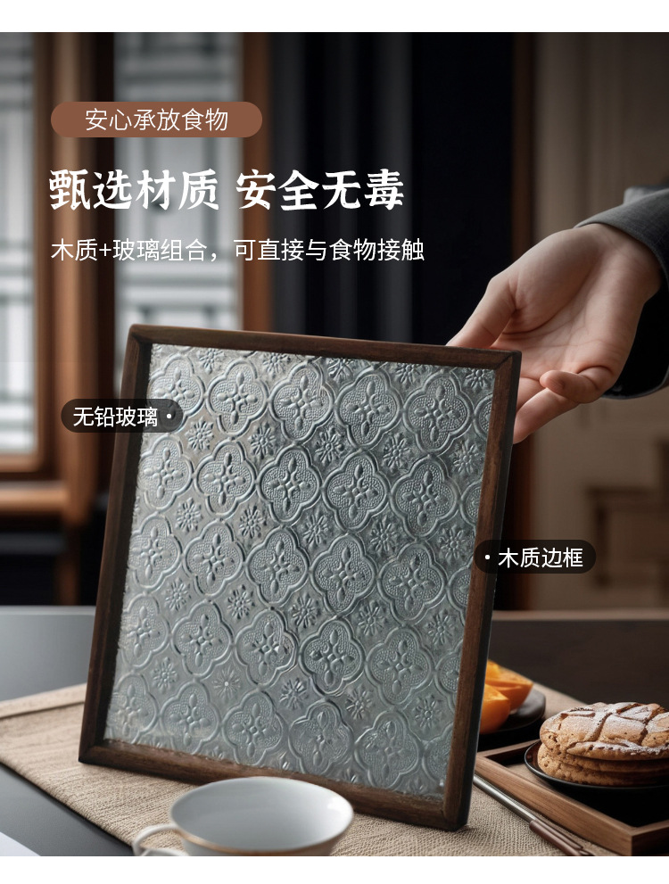 インスタイル木製ガラスティートレイ長方形トレイティーセット収納装飾品中国風フルーツスナックスナックトレイトレイ