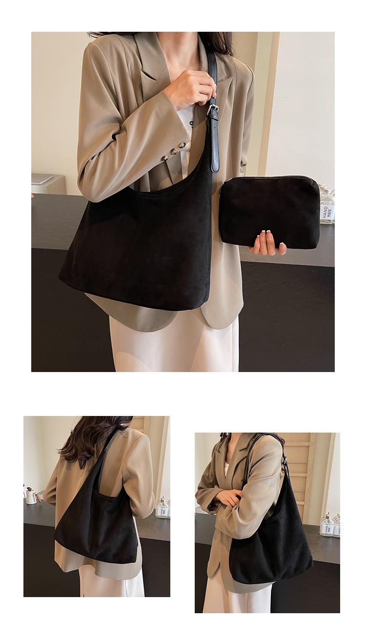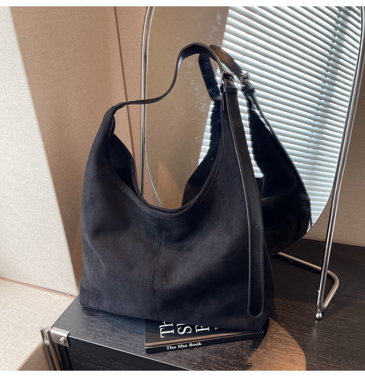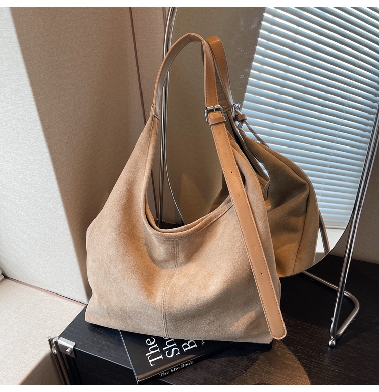 秋冬新作スエードバケットバッグ大容量ショルダー脇トートバッグレトロ通勤多用途マザーバッグ
