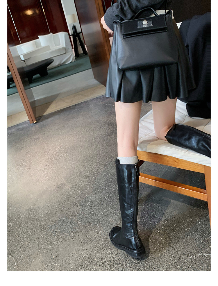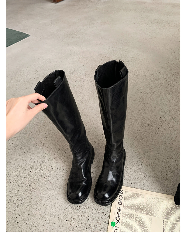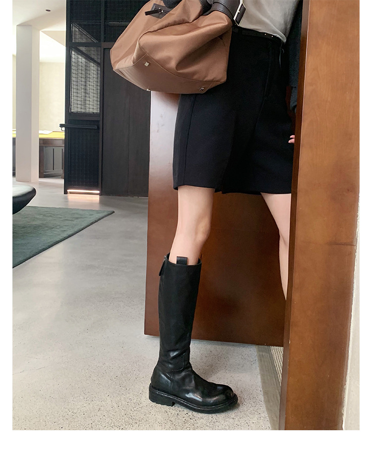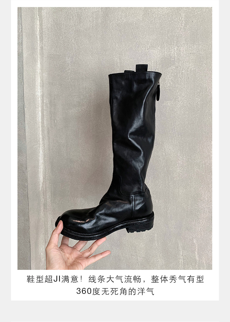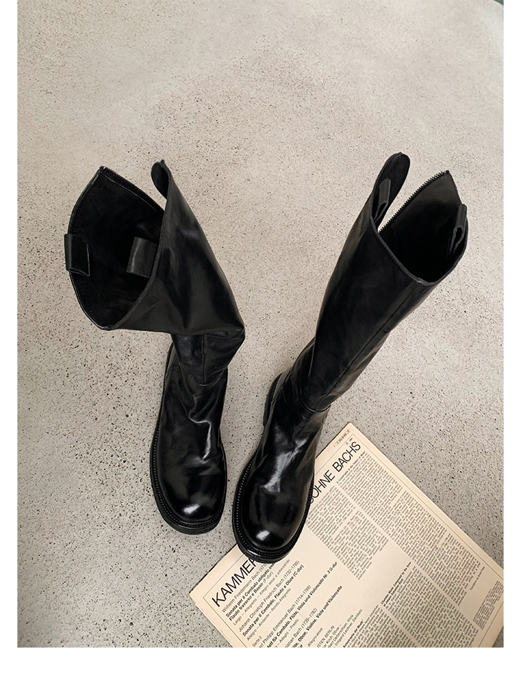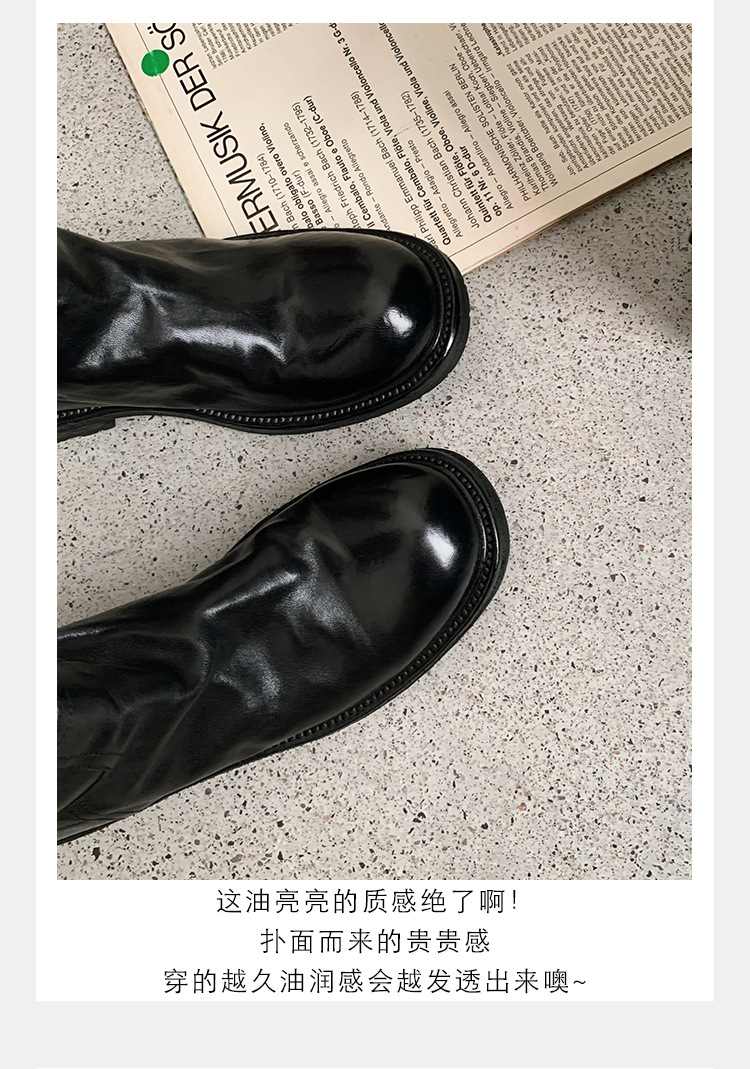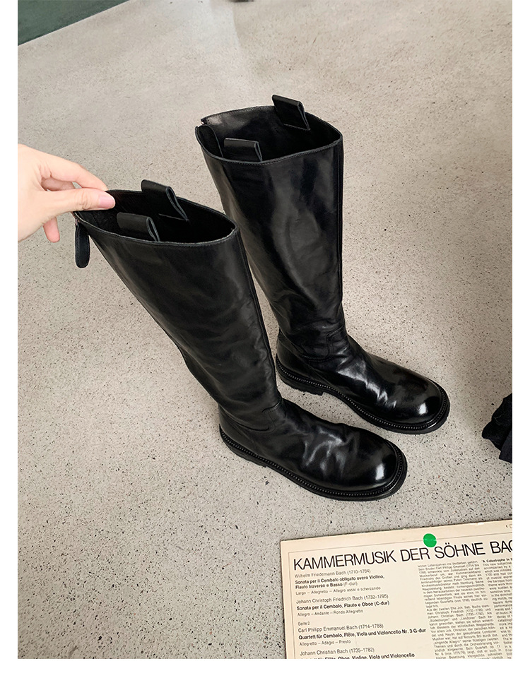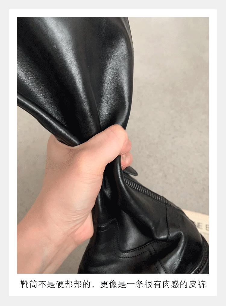 全牛革 ~ 英倫水洗い本革厚い底ブーツ女性後ファスナー太ヒールブーツ痩せ騎士ブーツ