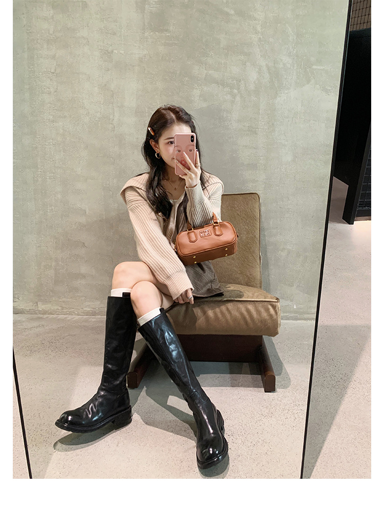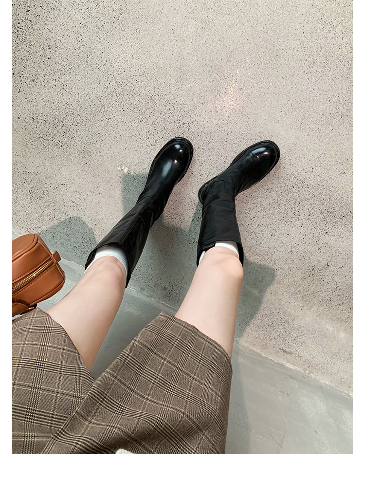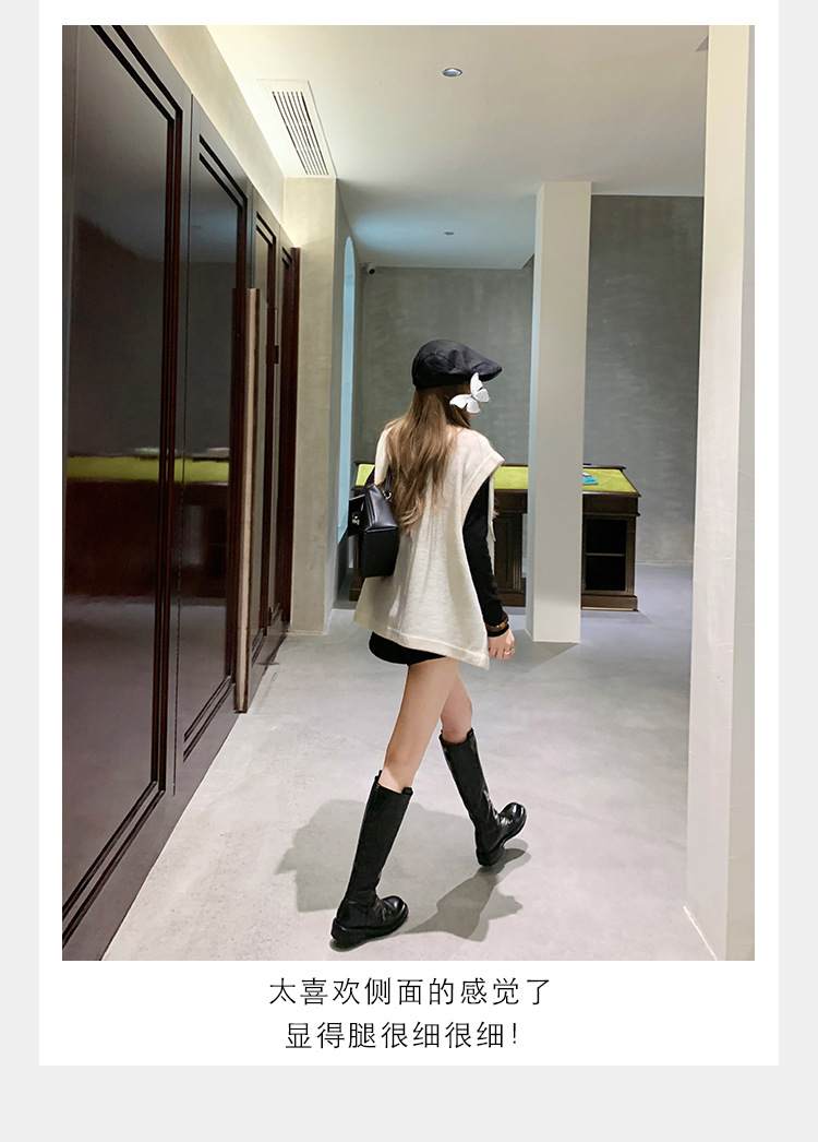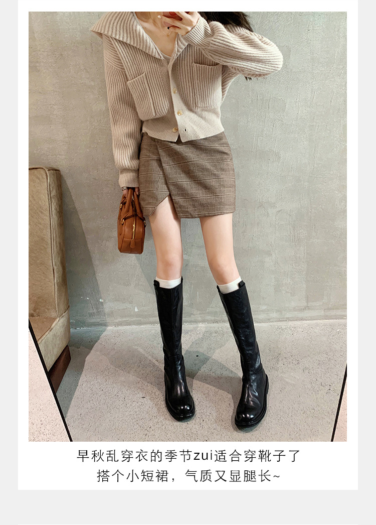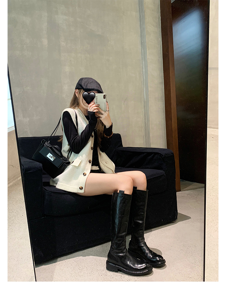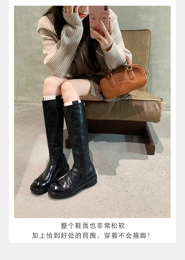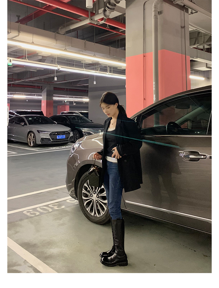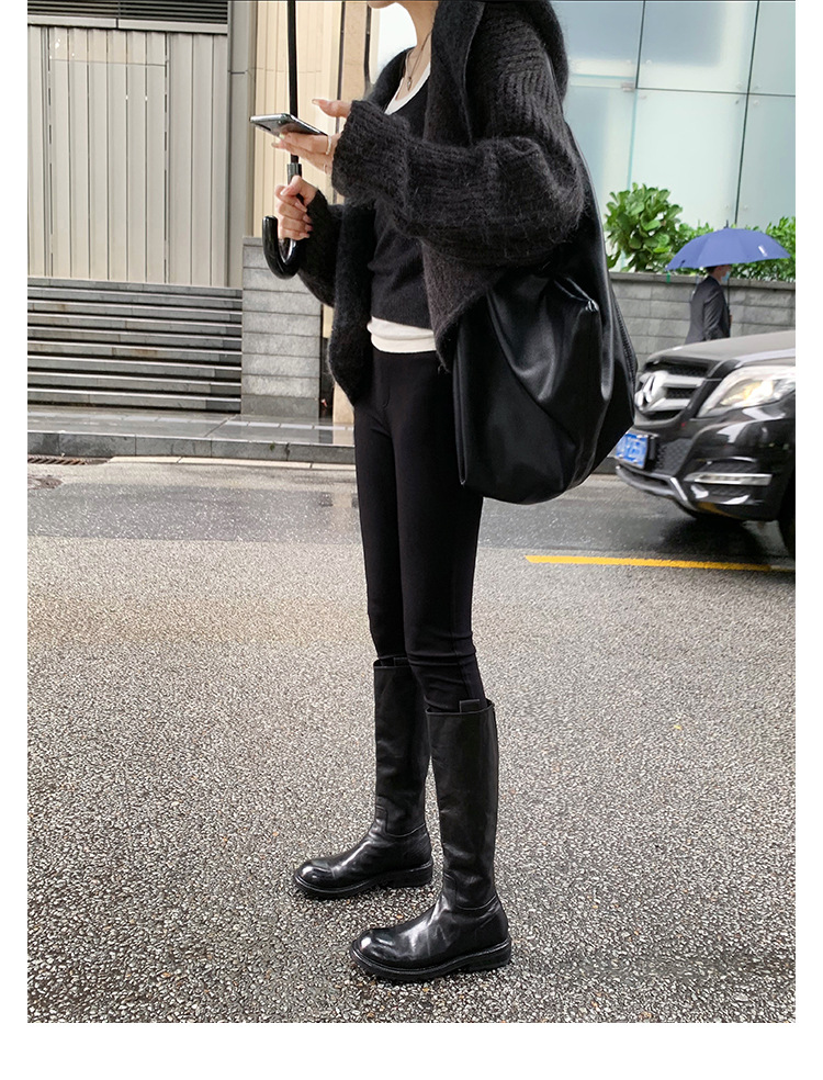 全牛革 ~ 英倫水洗い本革厚い底ブーツ女性後ファスナー太ヒールブーツ痩せ騎士ブーツ