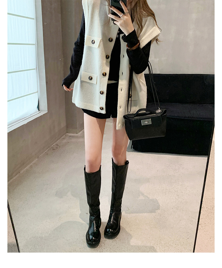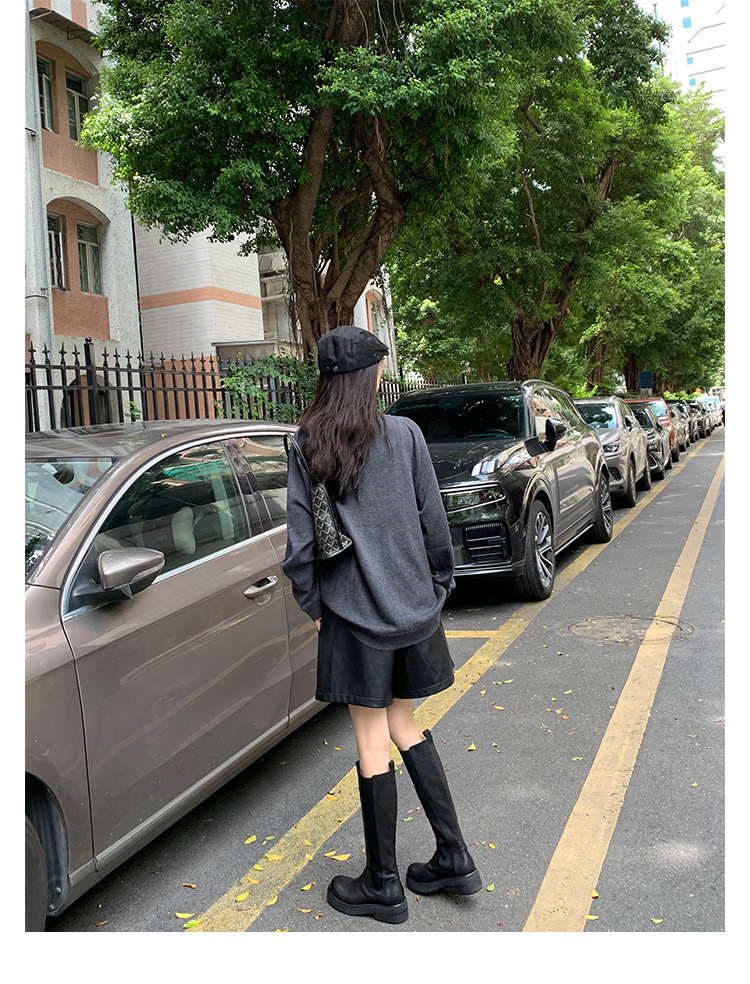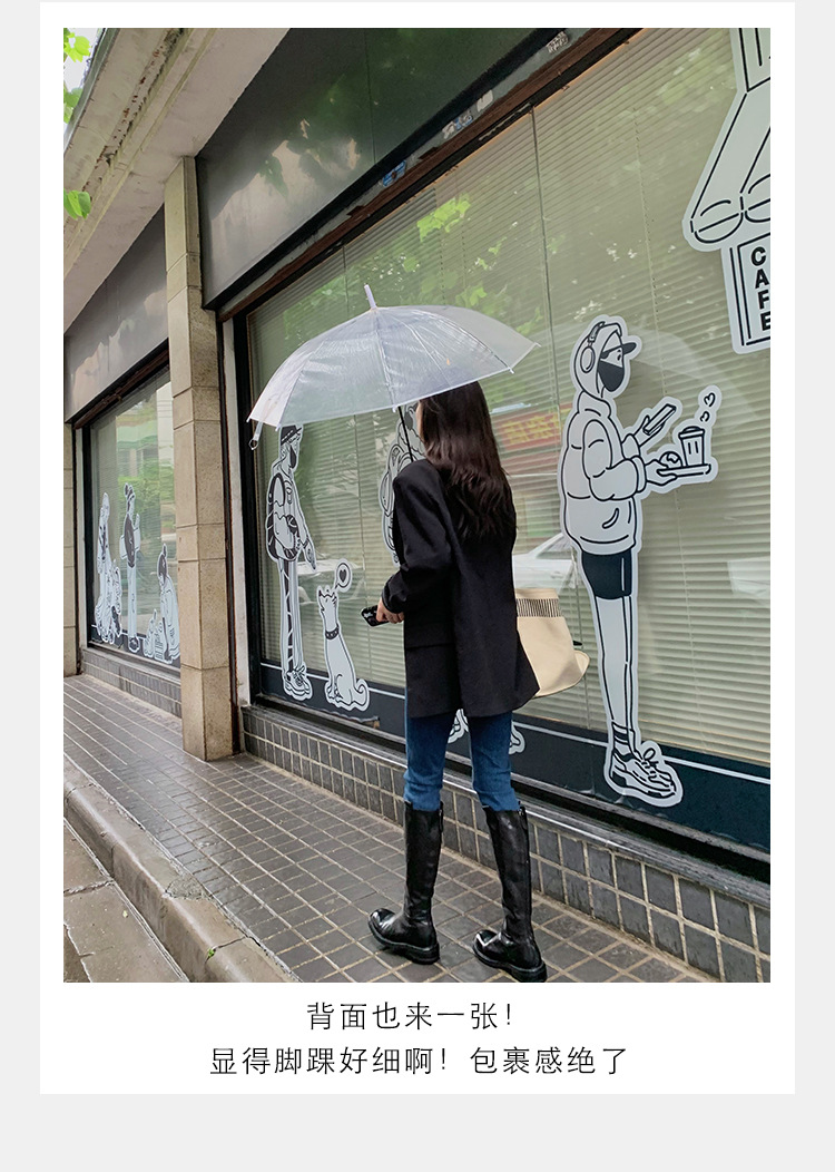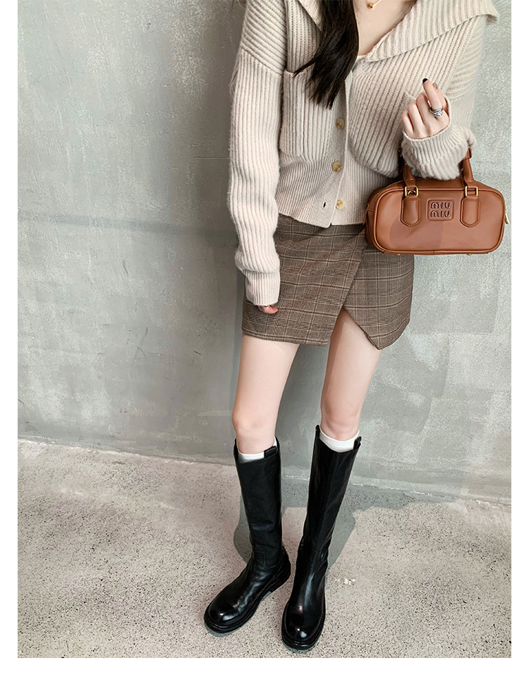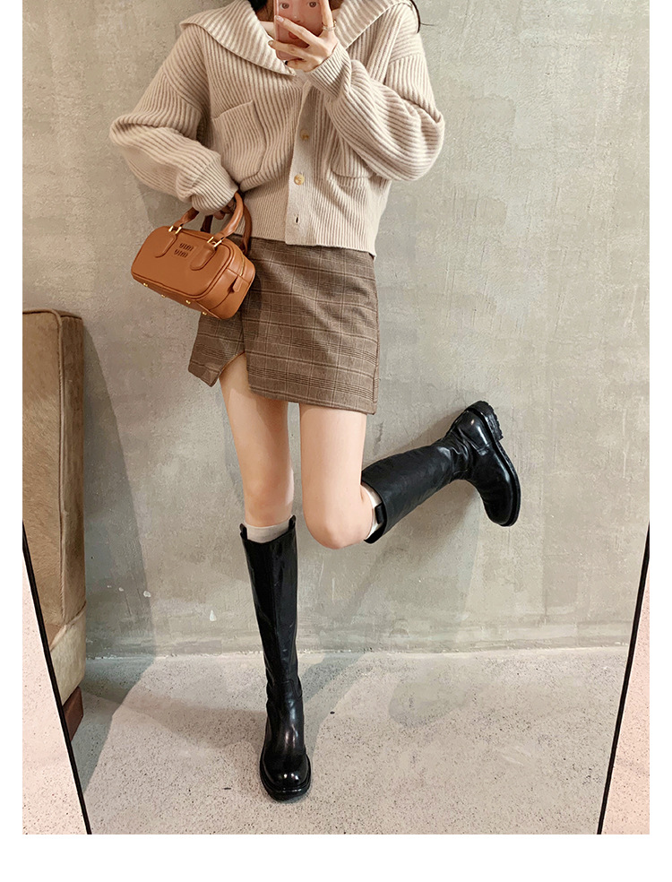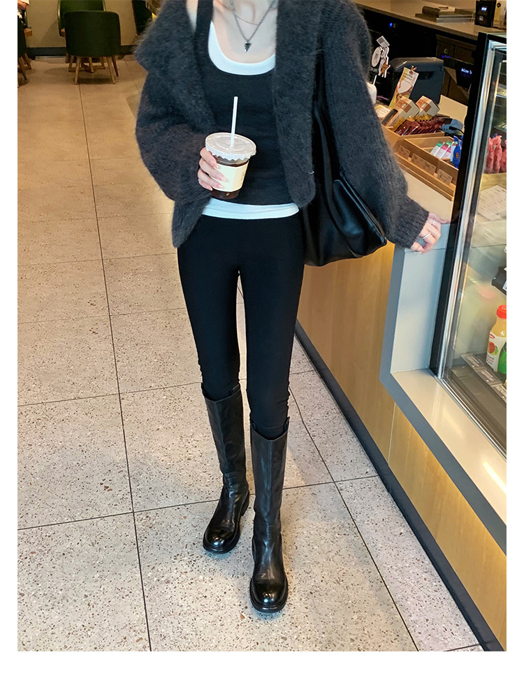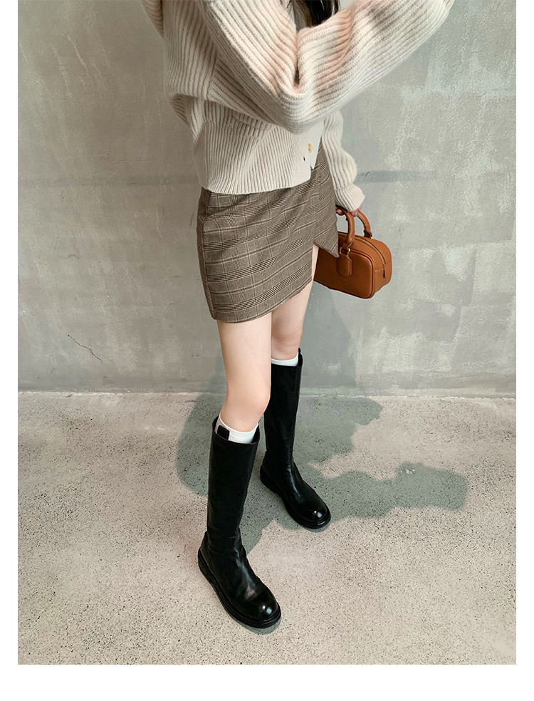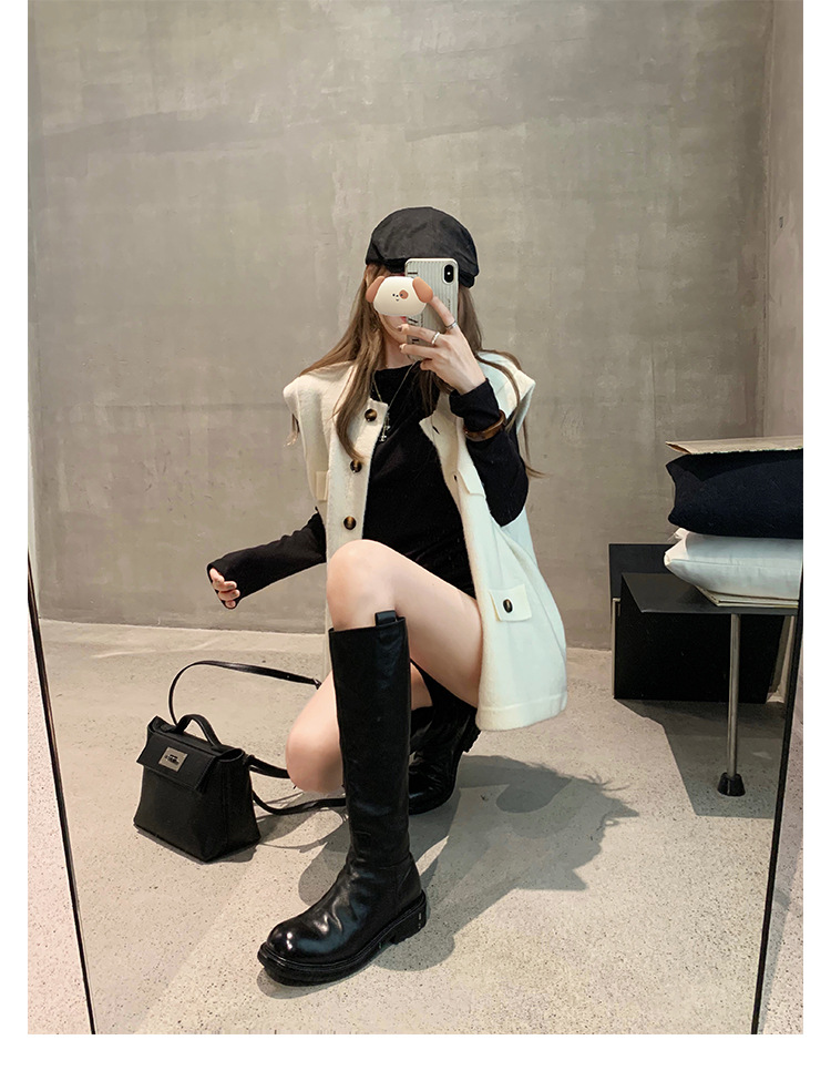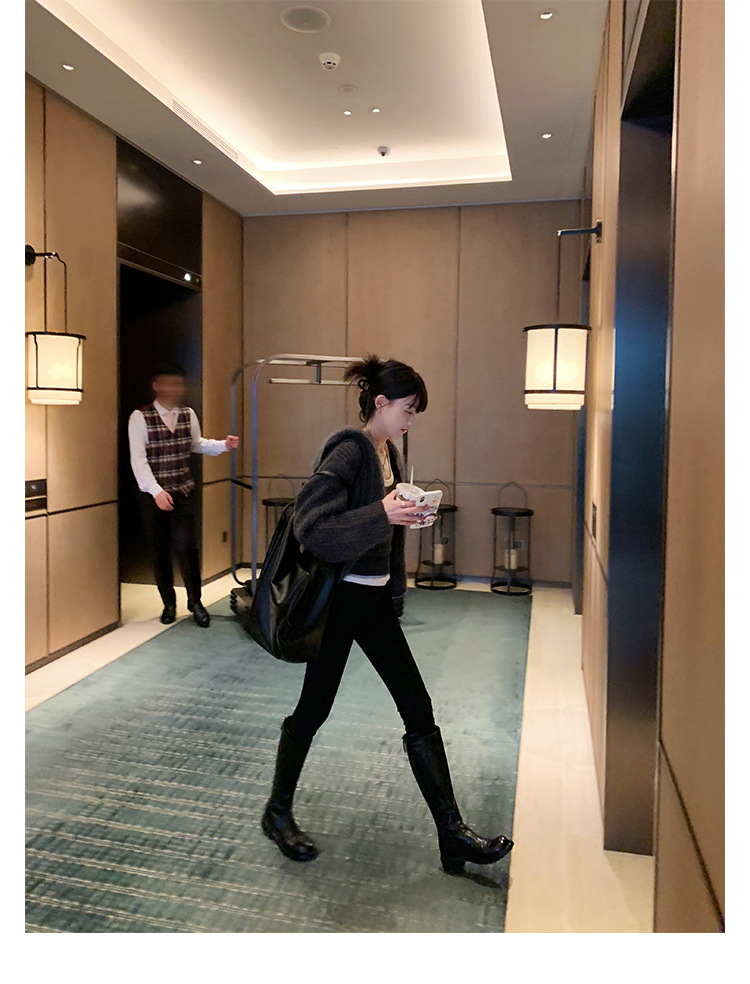 全牛革 ~ 英倫水洗い本革厚い底ブーツ女性後ファスナー太ヒールブーツ痩せ騎士ブーツ