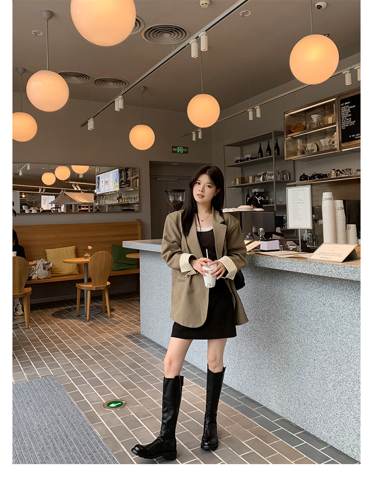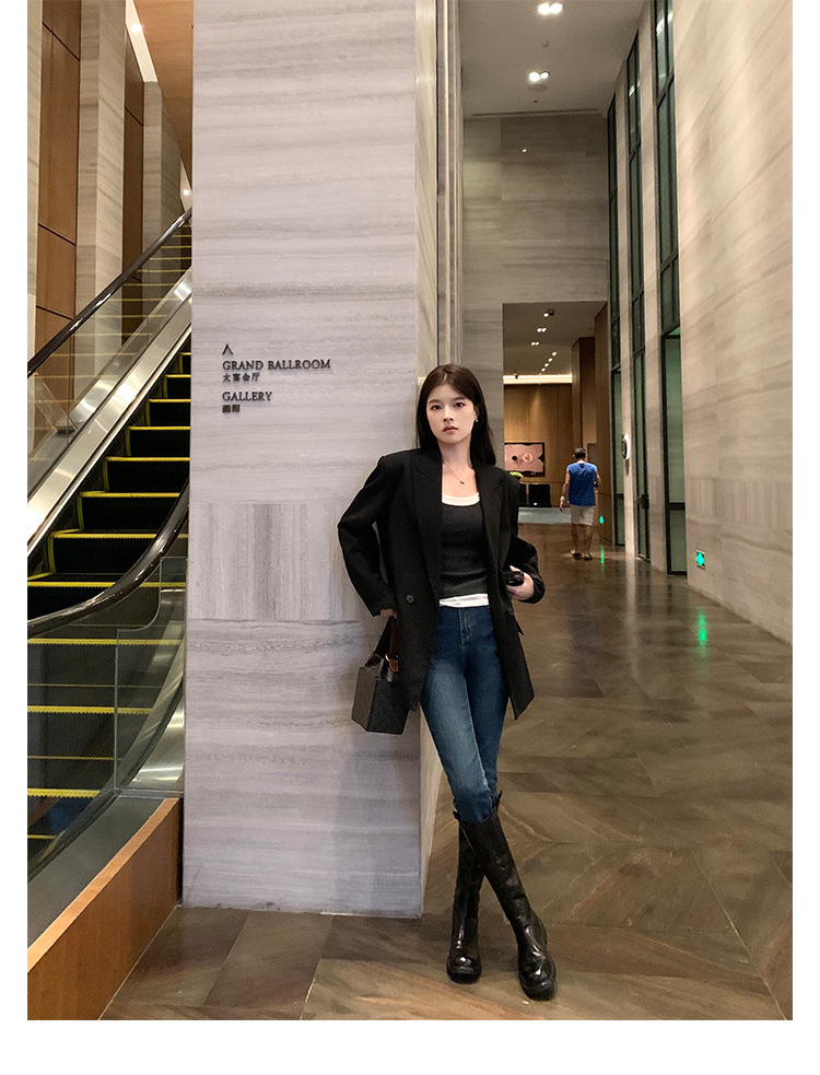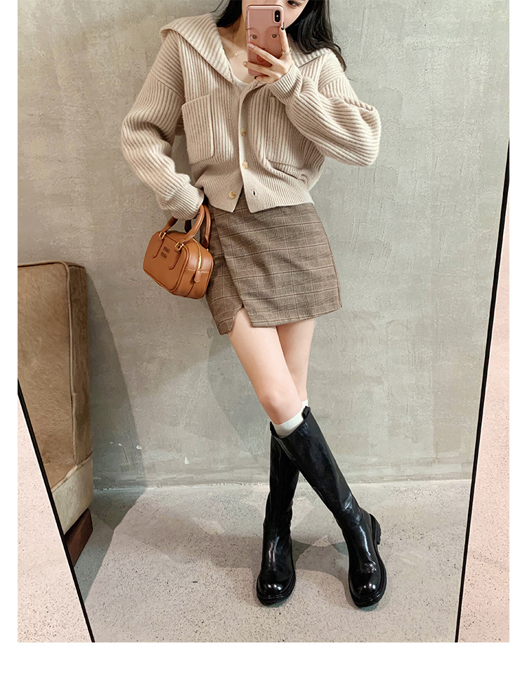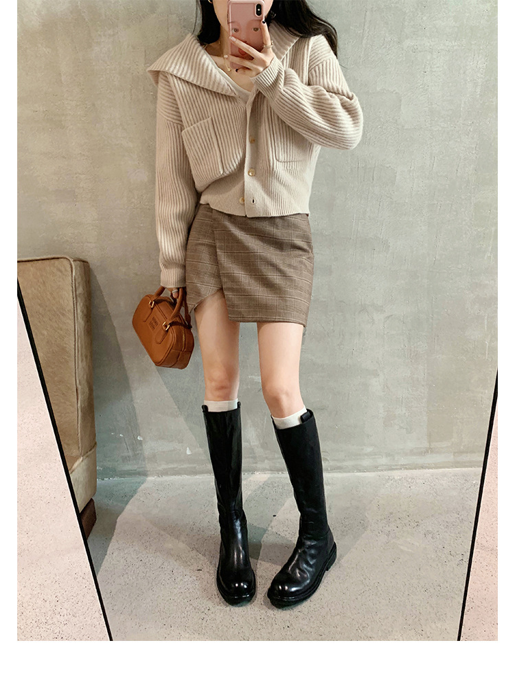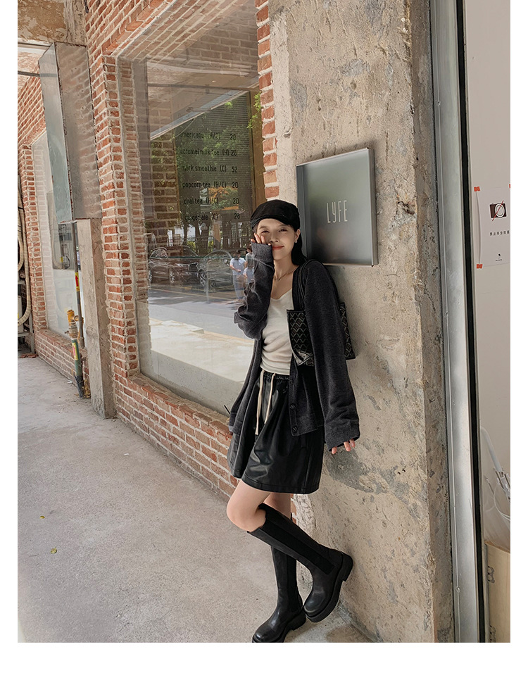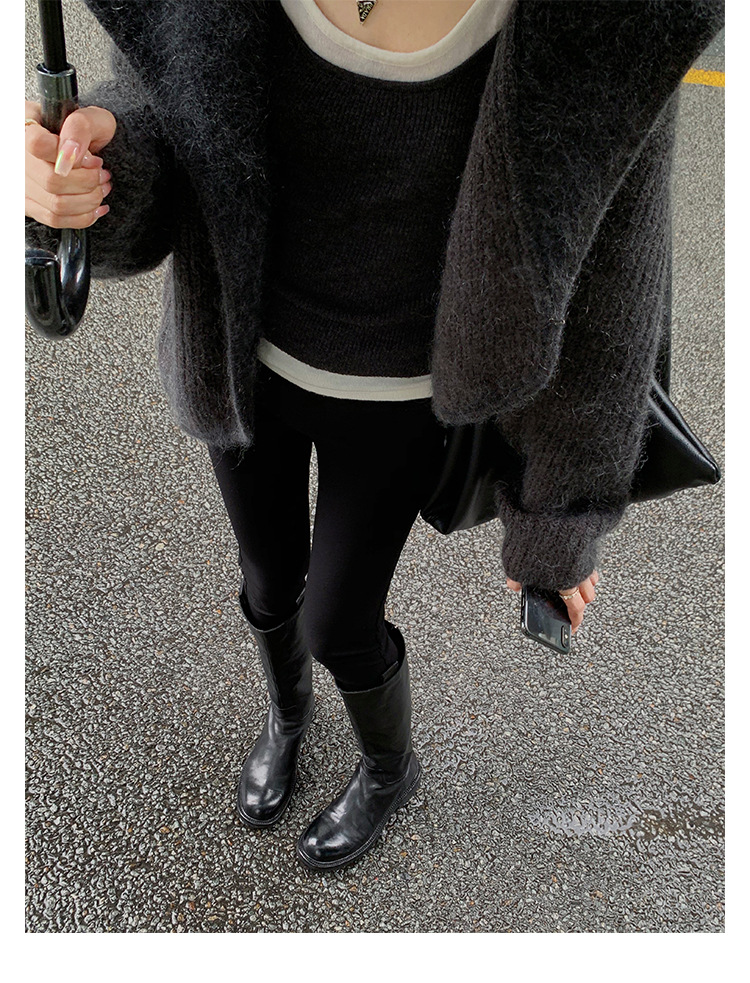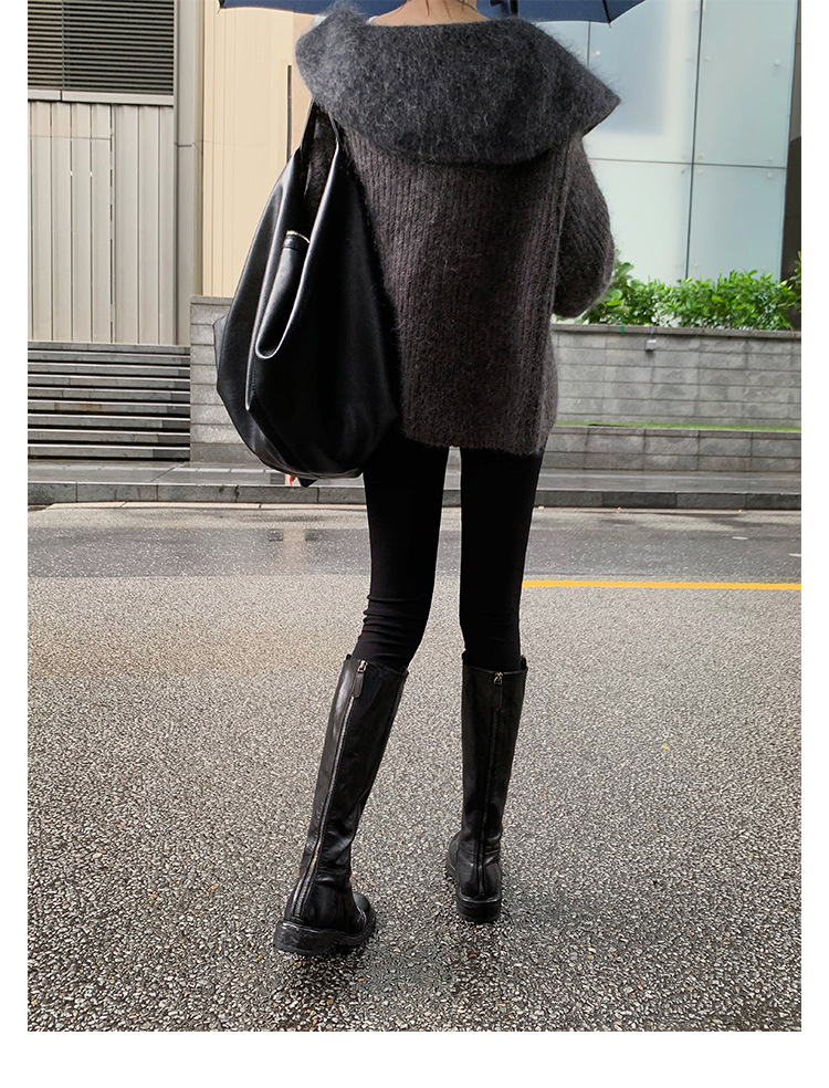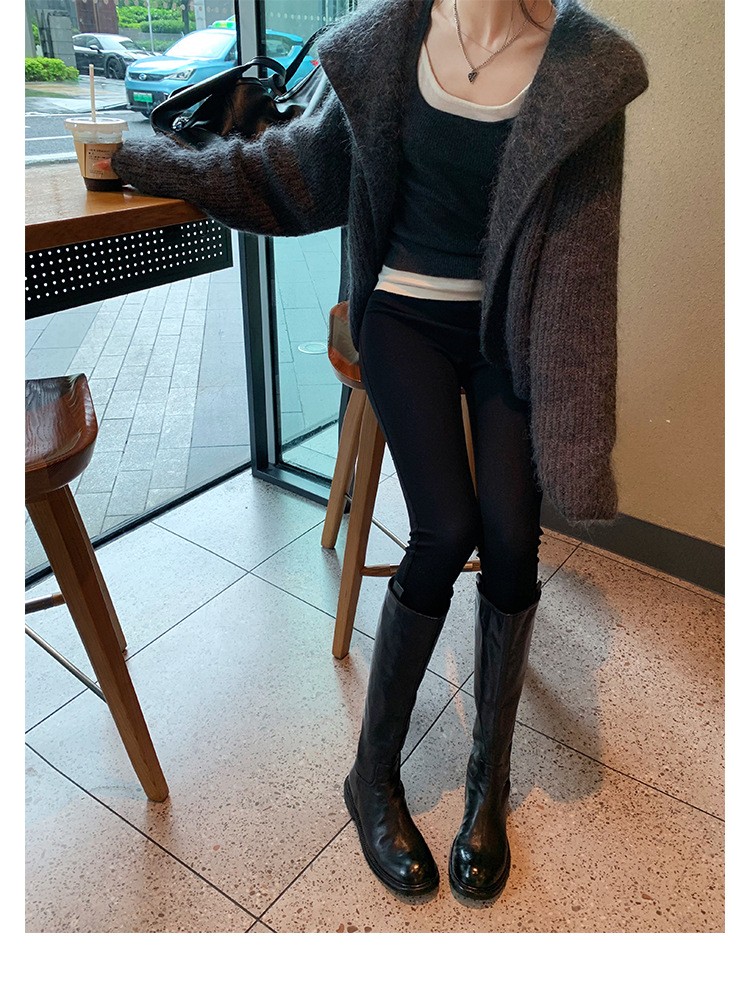 全牛革 ~ 英倫水洗い本革厚い底ブーツ女性後ファスナー太ヒールブーツ痩せ騎士ブーツ