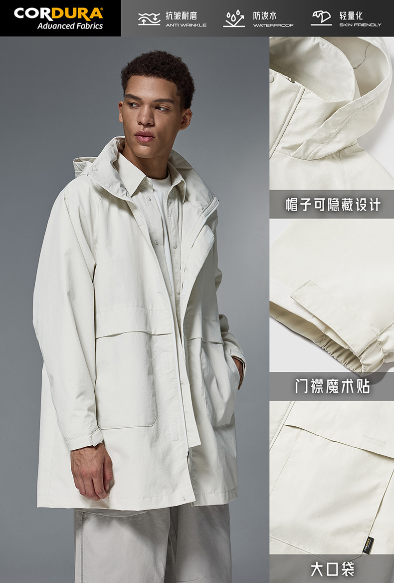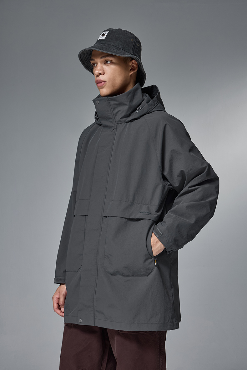 INFメンズ | CORDURA®トレンチコート2024秋冬新商品潮工装フード付きゆるいロングコート