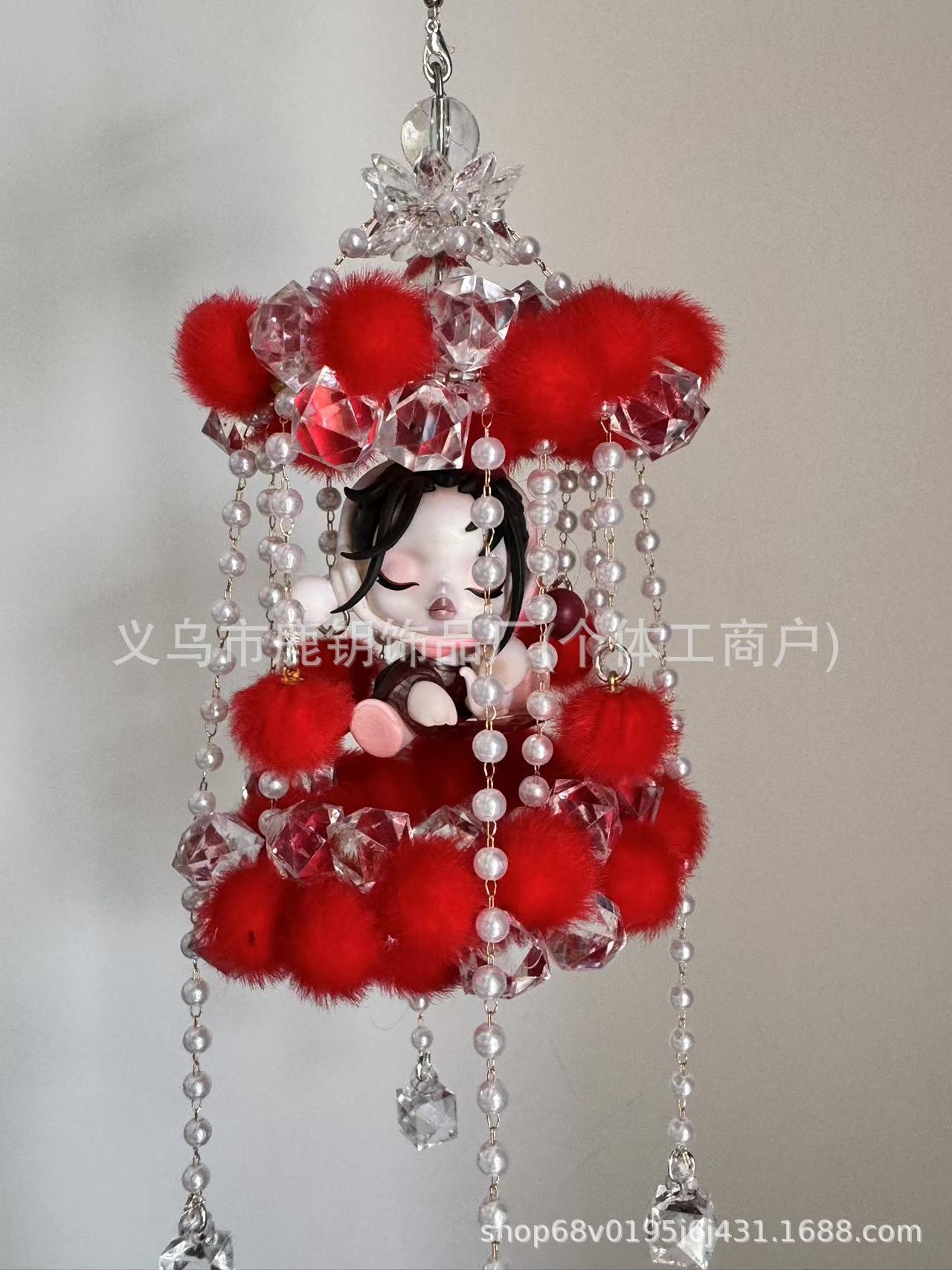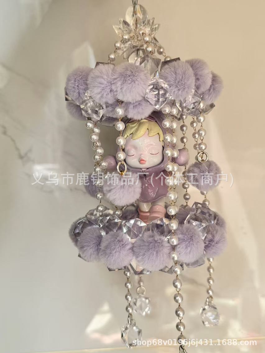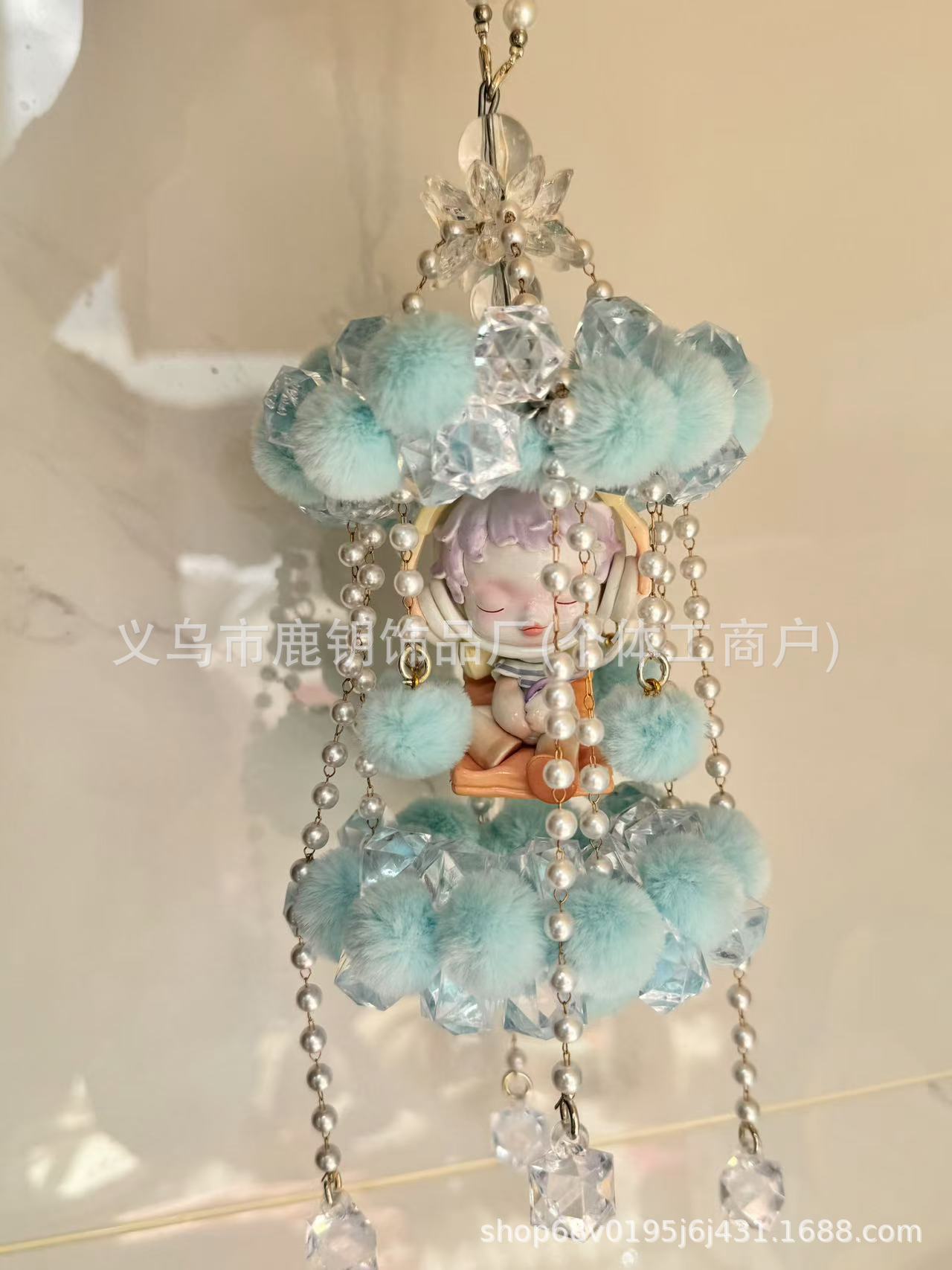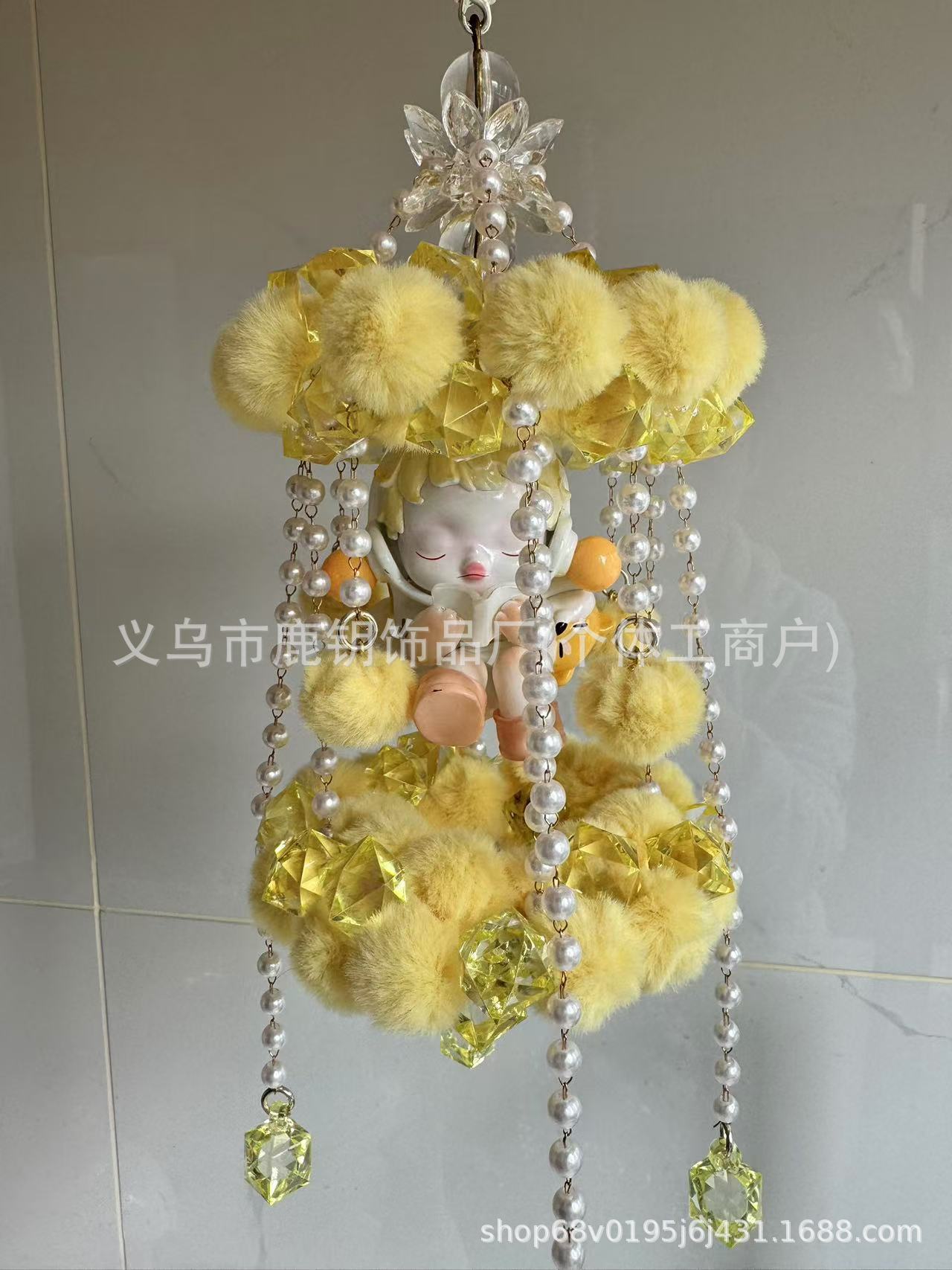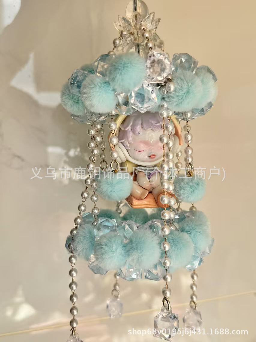 盲盒车挂 抖音直播拆盲盒车载装饰香妃毛球重工车挂泡泡码特成品