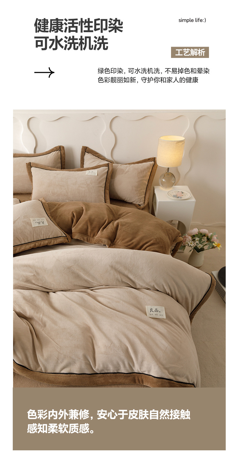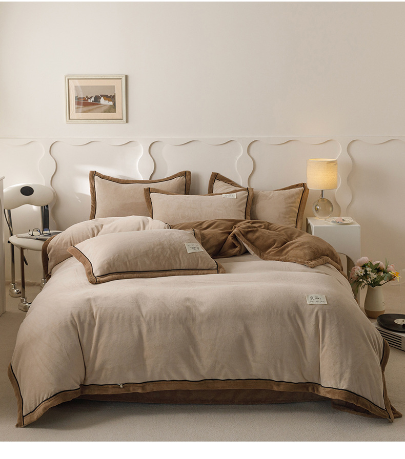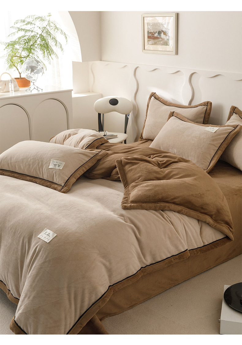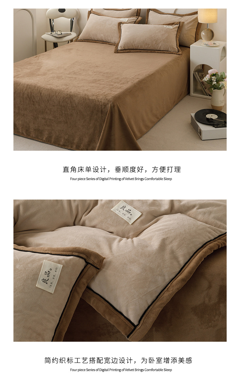 ミルクベルベット4点セット 秋冬用 厚手 保温 コーラルベルベット フランネル ベッドカバー シーツ ボックスシーツ 和風