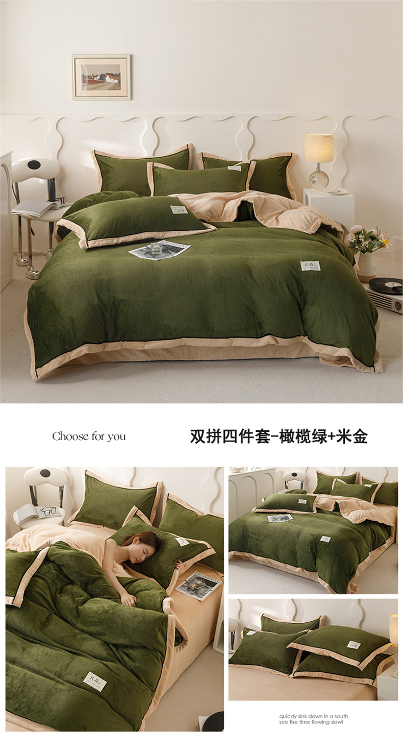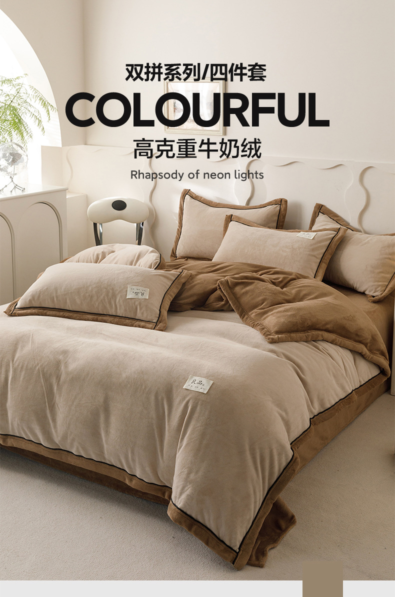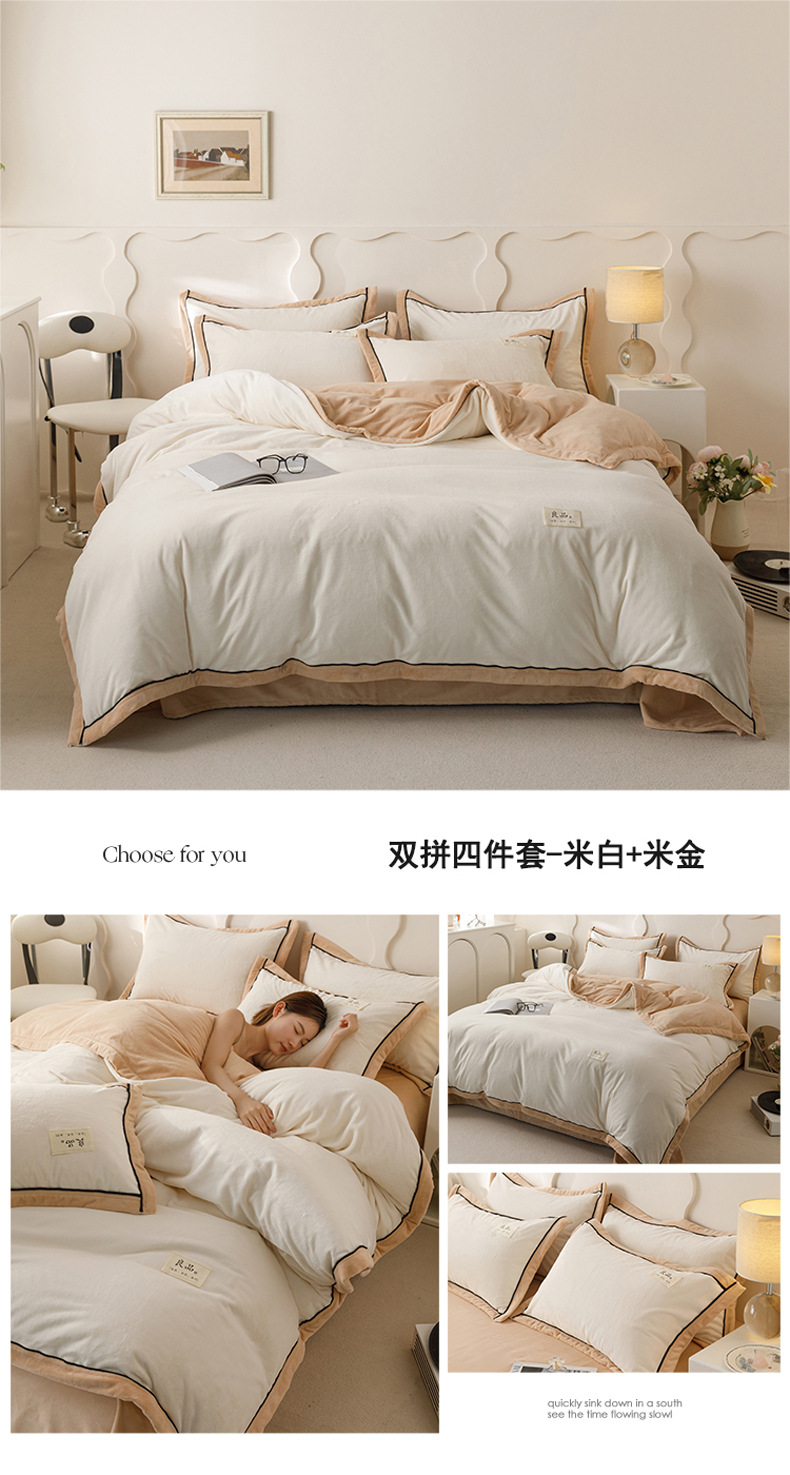 ミルクベルベット4点セット 秋冬用 厚手 保温 コーラルベルベット フランネル ベッドカバー シーツ ボックスシーツ 和風