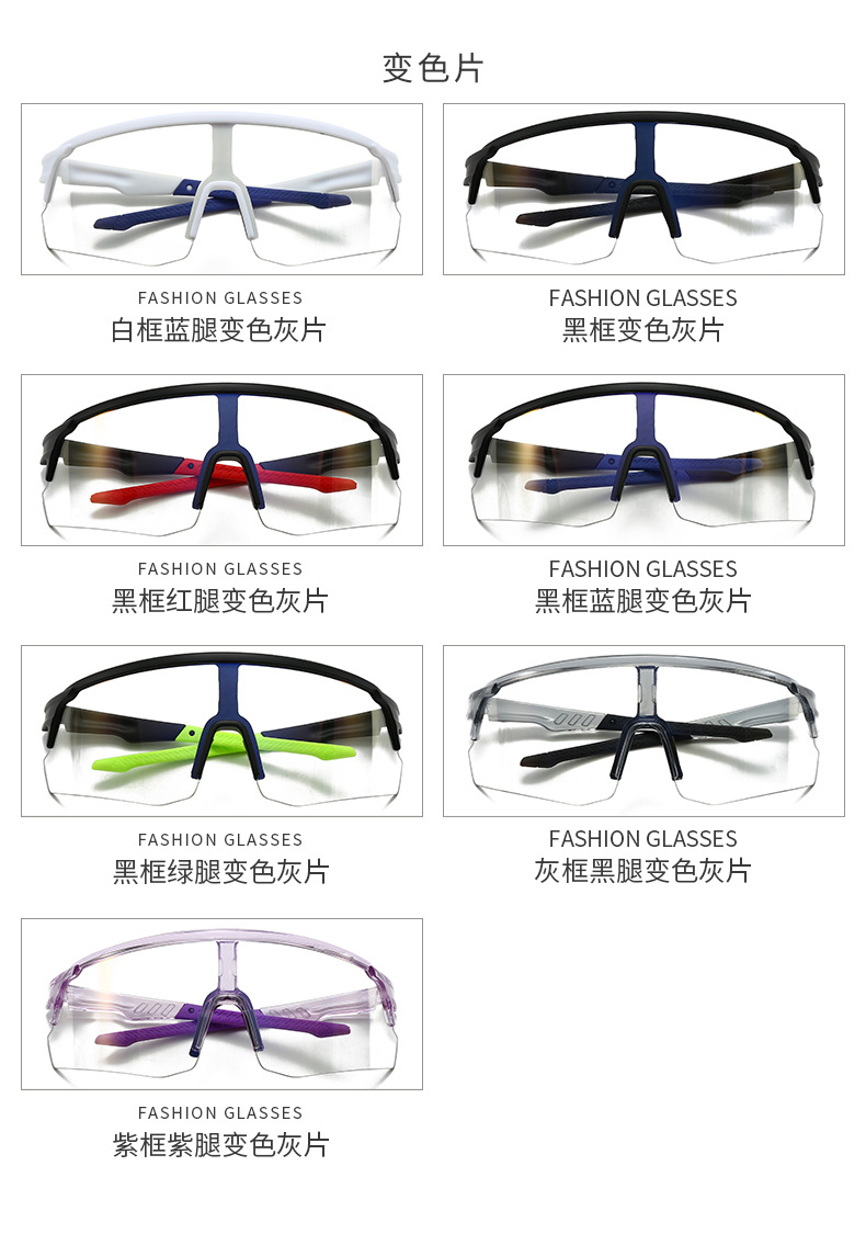 新品ハーフフレームスポーツ変色メガネアウトドアランニングワンピースレンズサングラス自転車騎乗防風サングラス