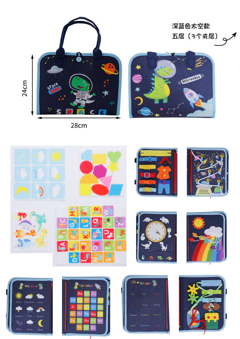 ピンクのプリンセス,青い恐竜,ピンクの人魚,緑の動物,ダークブルーの空間,スペースビジーボード,クマの着こなし学習ボード,青と緑の星空学習ボード