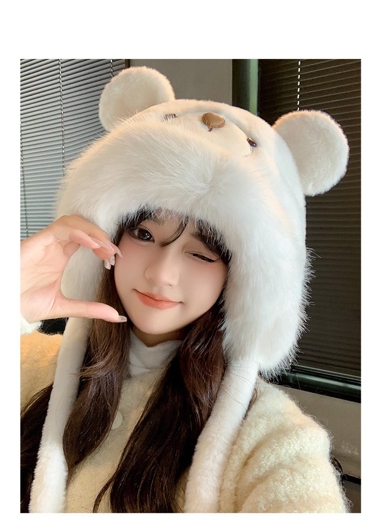 ぬいぐるみクマの帽子女性のための秋と冬 2025 新しいかわいい顔が見える小さな防風暖かい耳保護多用途プルオーバー帽子