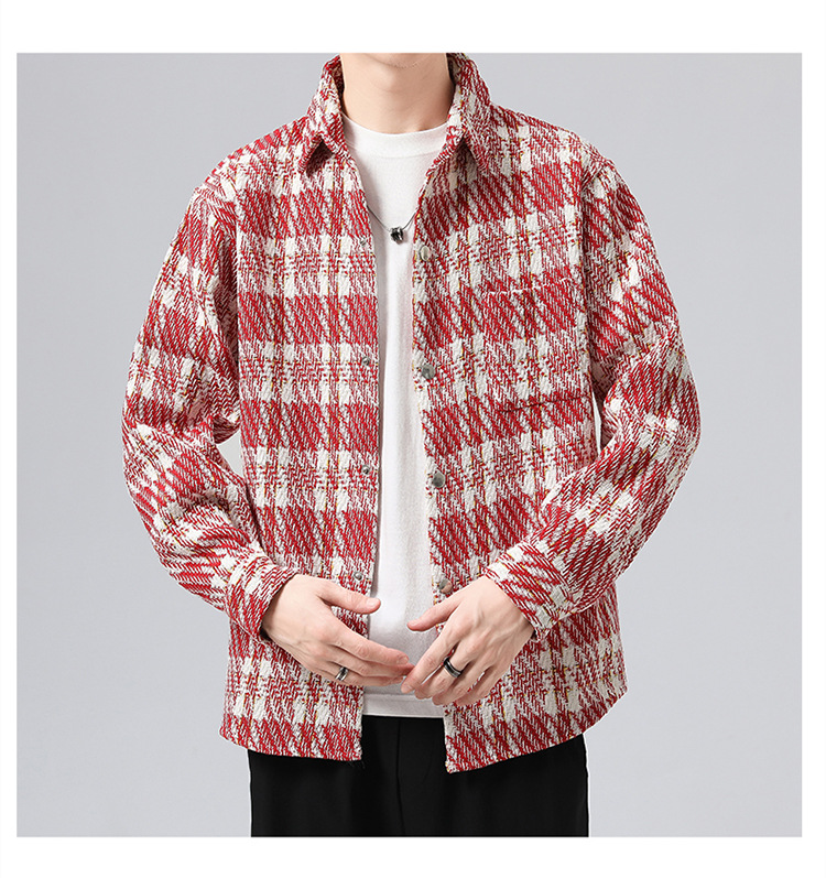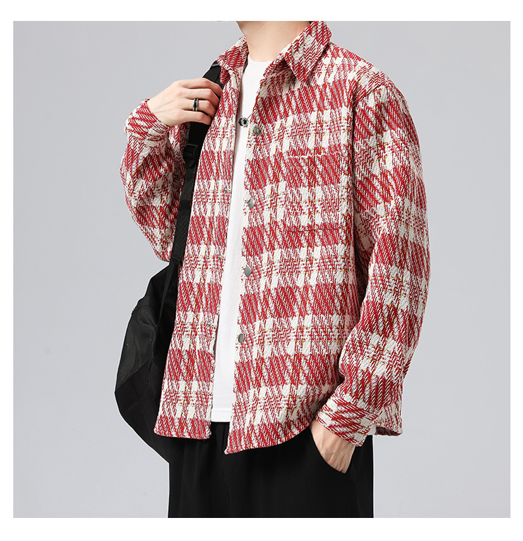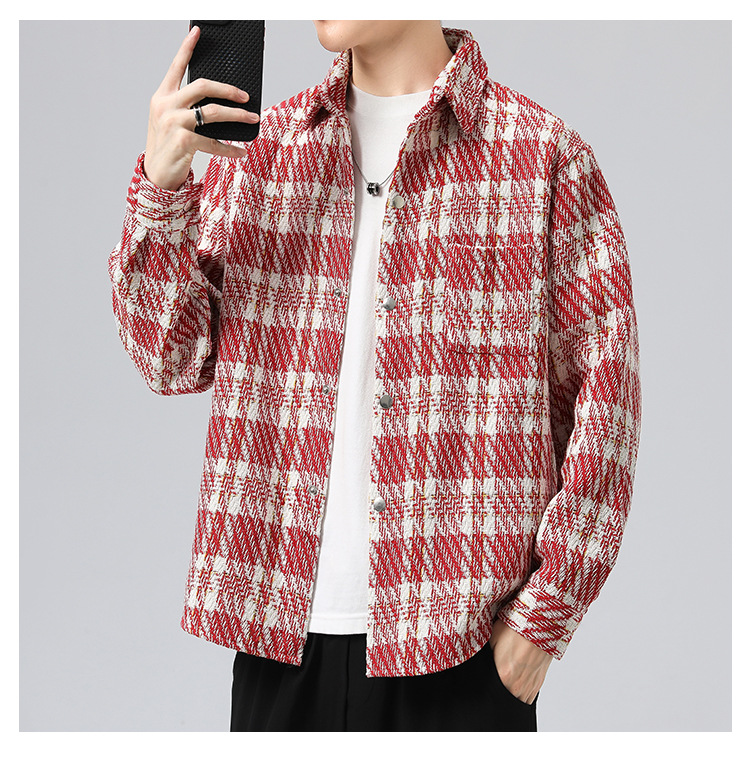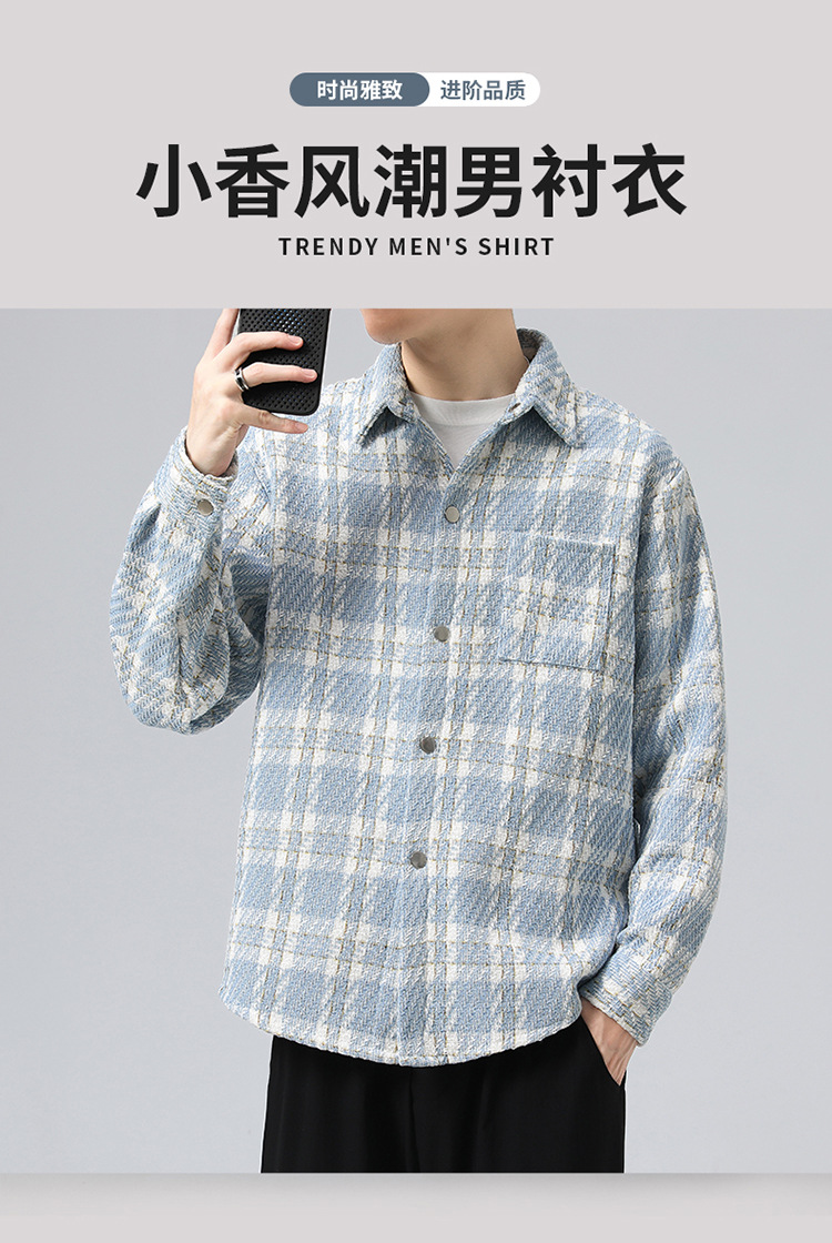 青少年コート男性春秋タイプ高校生小香風格子シャツ男性ハンサムジャケット男性服