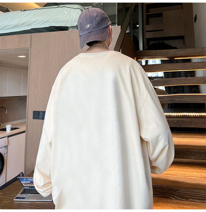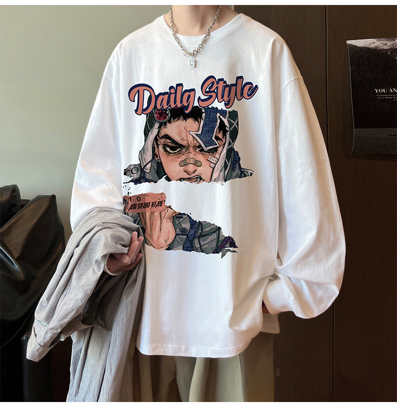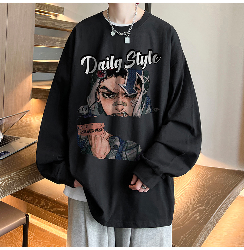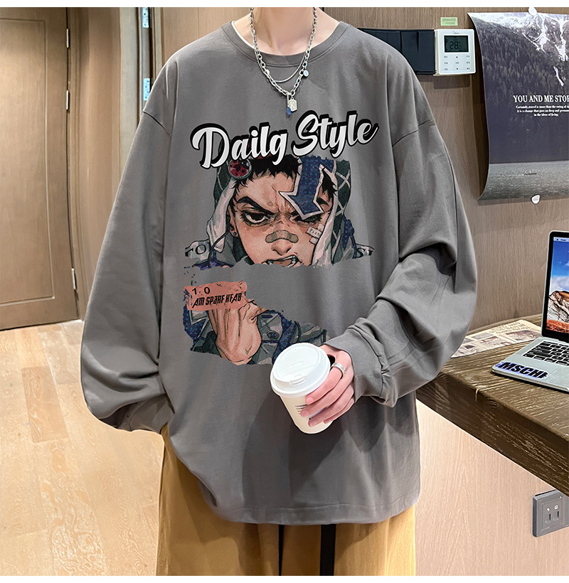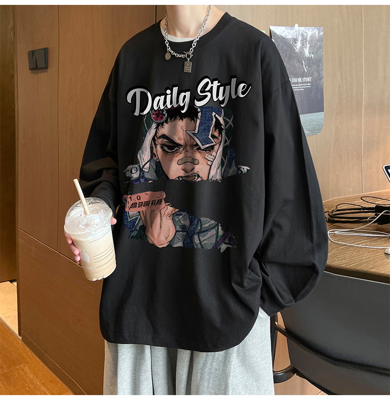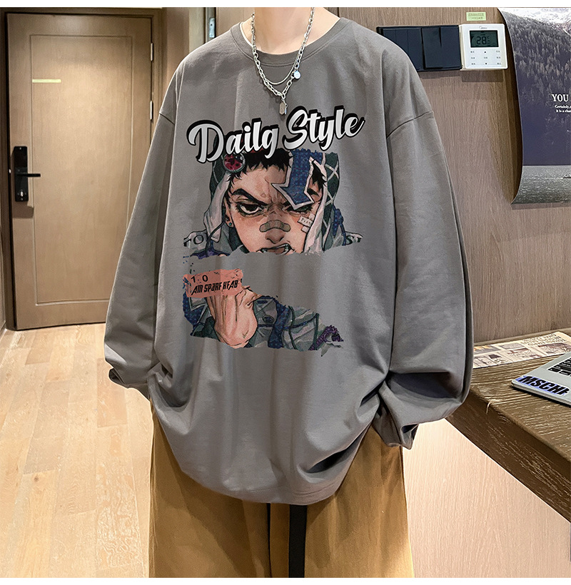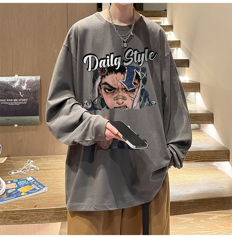 ワインレッド純綿長袖tシャツ男子秋潮牌大サイズ丸首底シャツアニメプリント重ポンド上着