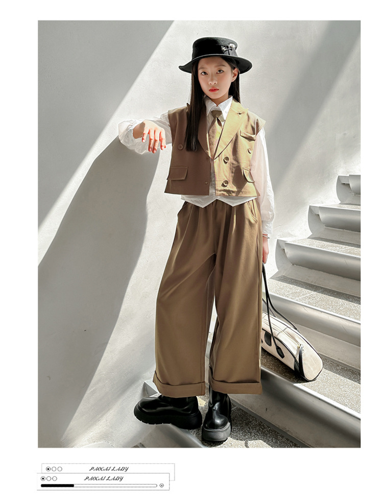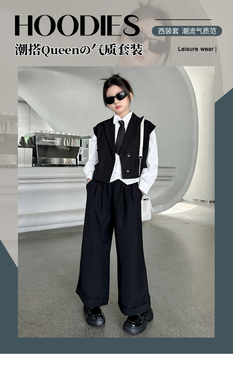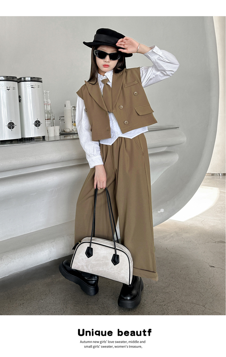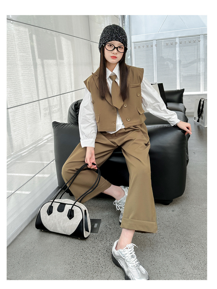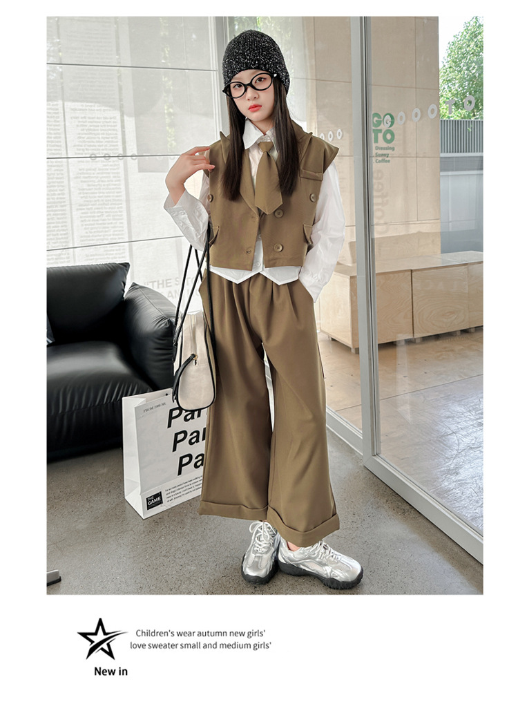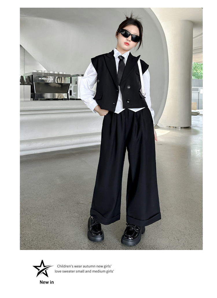 女の子の秋の服の新しいファッション 2025 新しい韓国スタイルの女の子のファッショナブルなインターネット有名人の長袖スーツベストとズボンのスーツ