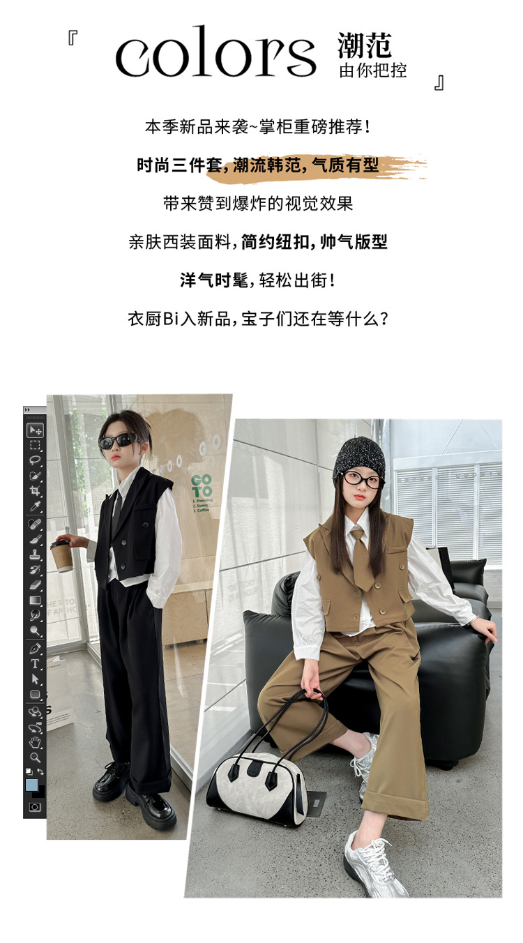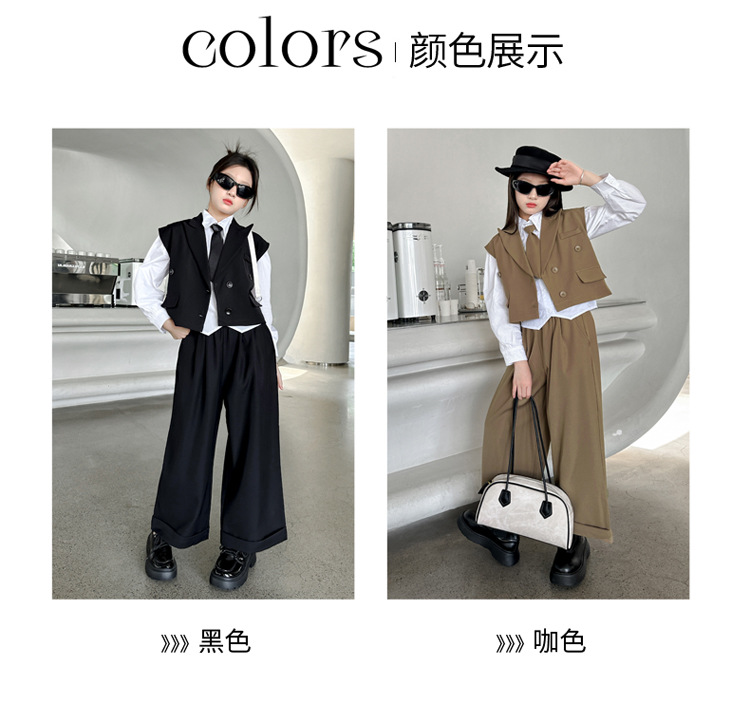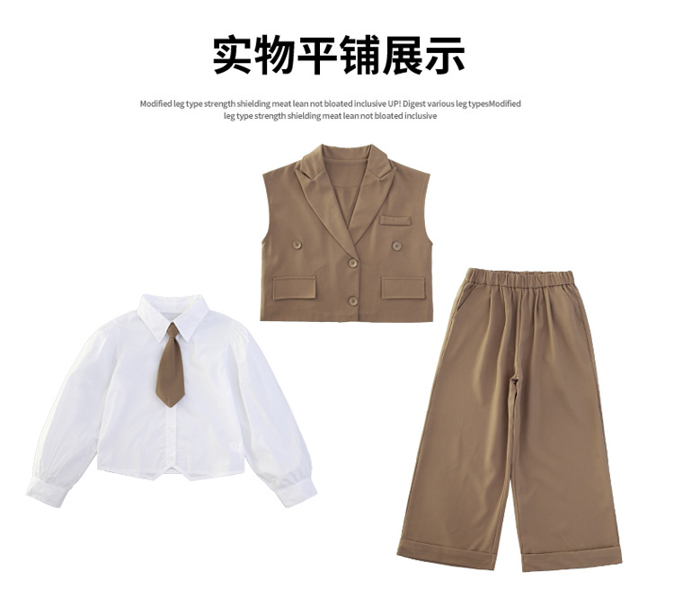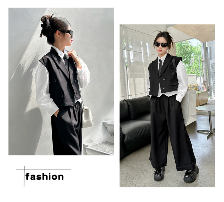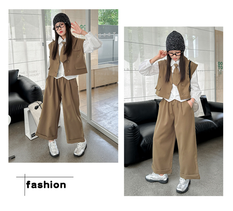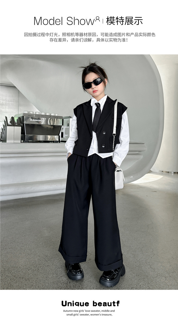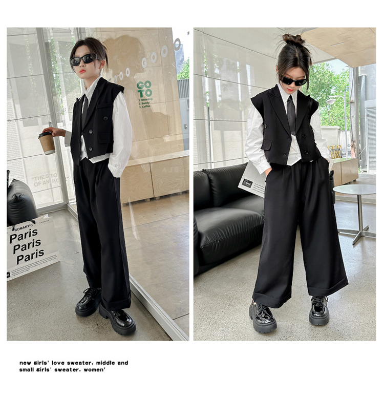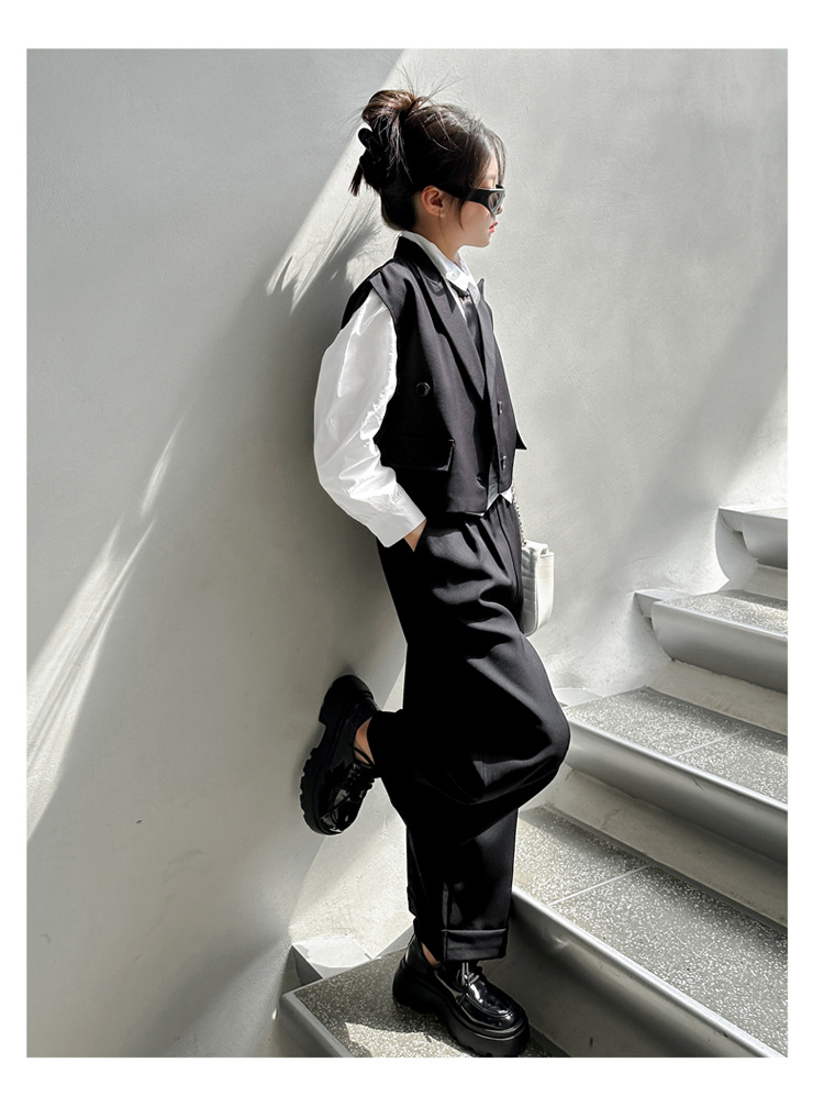 女の子の秋の服の新しいファッション 2025 新しい韓国スタイルの女の子のファッショナブルなインターネット有名人の長袖スーツベストとズボンのスーツ