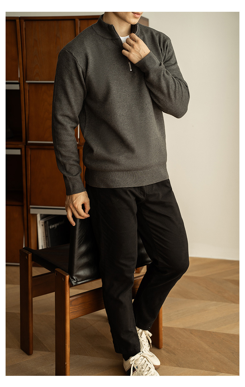 レトロヘビーウェイトハーフジップメンズニットジャケット 2025 秋の新カジュアル暖かいセーターカーディガンメンズ