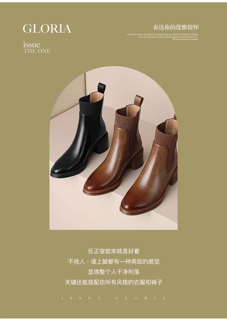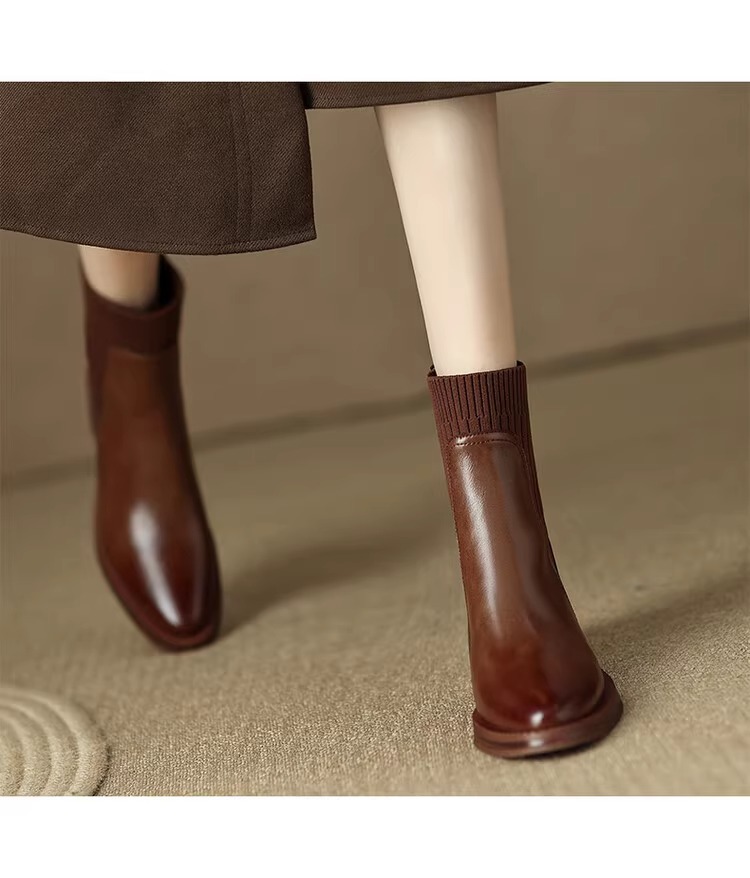 英倫風の本皮の靴の子供の秋冬の新型のやせている靴下の靴はショートブーツの太さと中と弾力のマーティンの靴を合わせます。