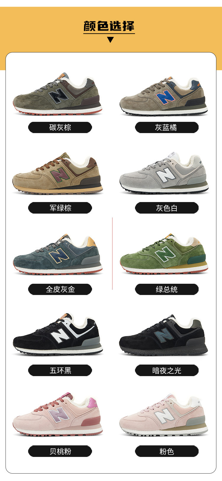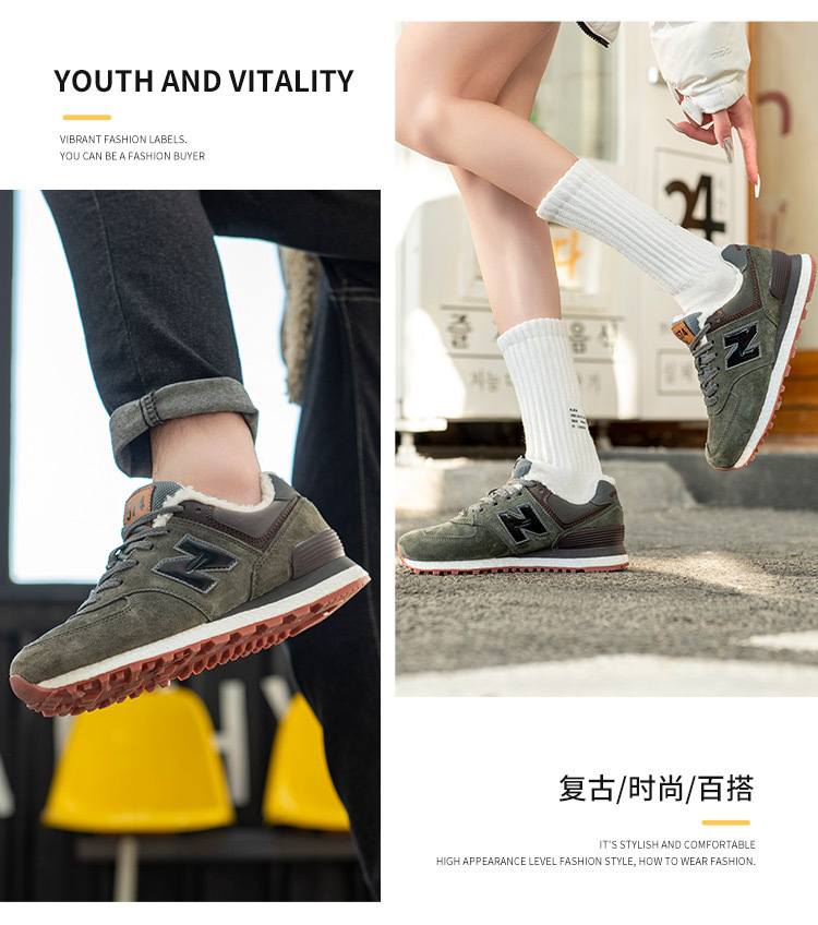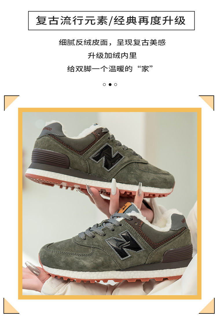 浪新百倫威NB574ベルベット運動カジュアル靴男性靴冬保温屋外カップルランニング靴女性靴