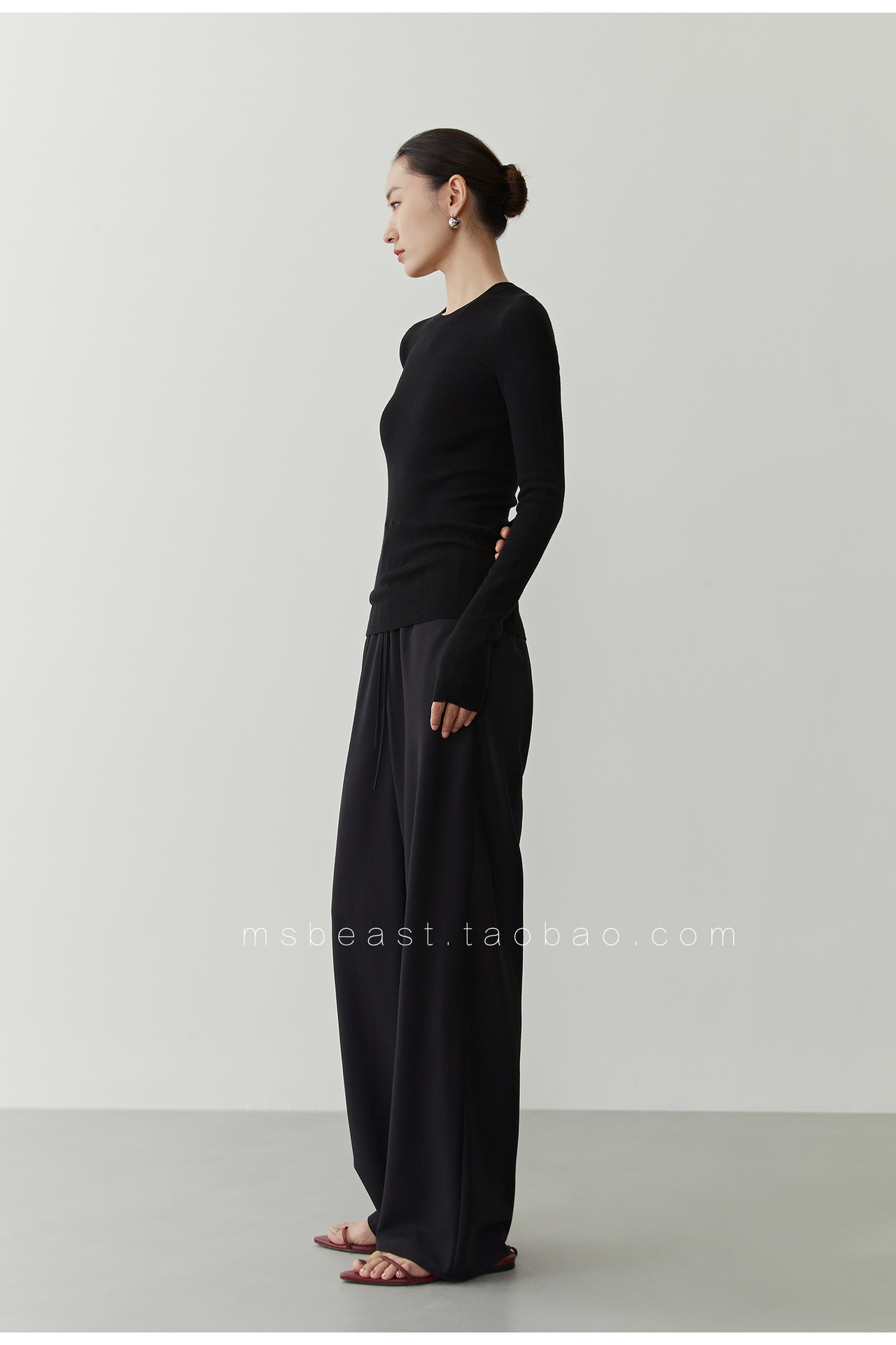 クラシックブラック(140Sラウンドネック)[梳毛ウール100%]