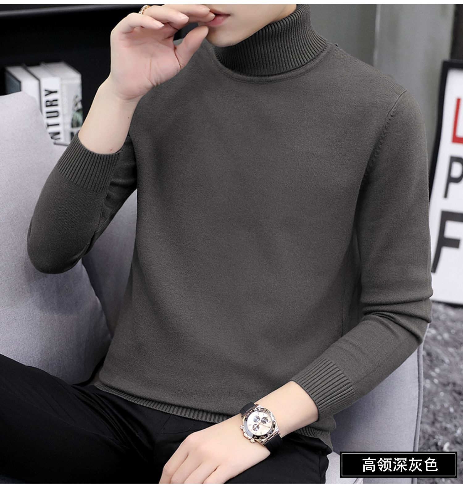 ハーフタートルネックセーター ダークグレー