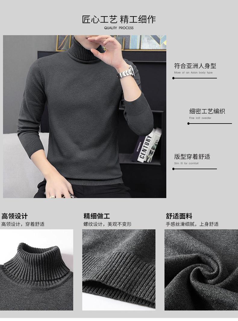 タートルネックセーター メンズ ニットウェア 秋冬 中衿 インナー ベースレイヤー 保温性のあるセーター ハーフタートルネック スリムフィット 細見え