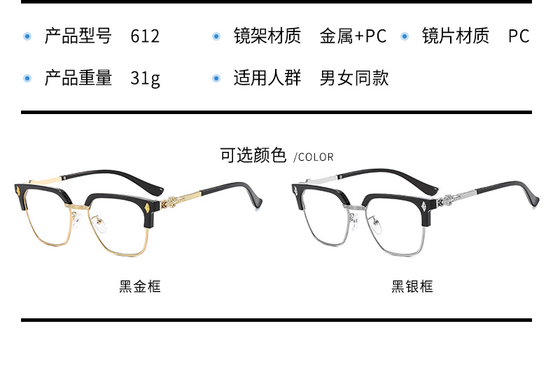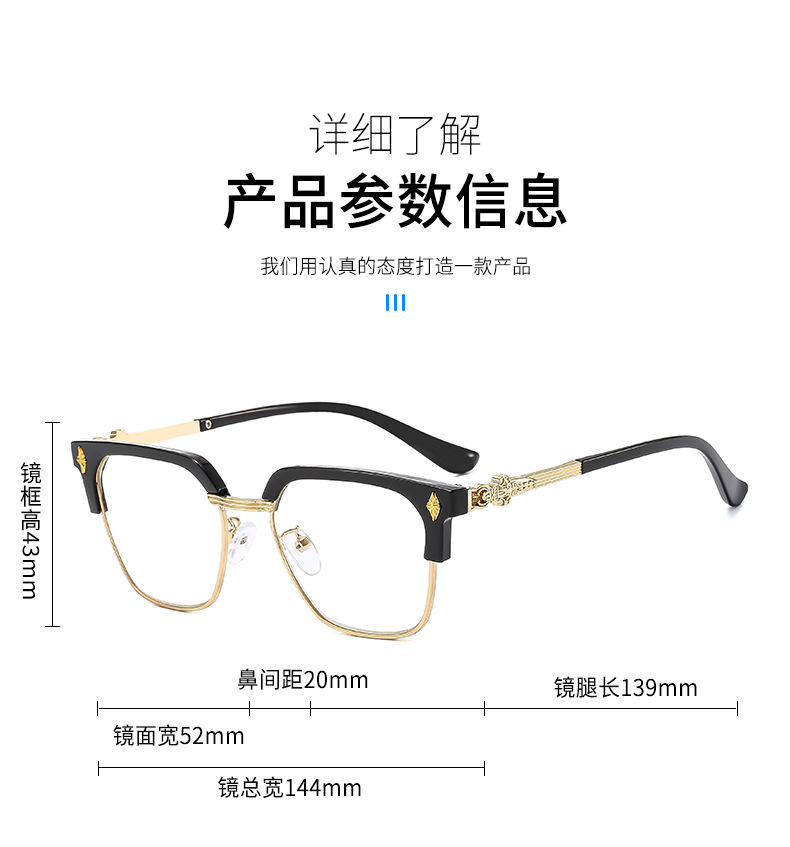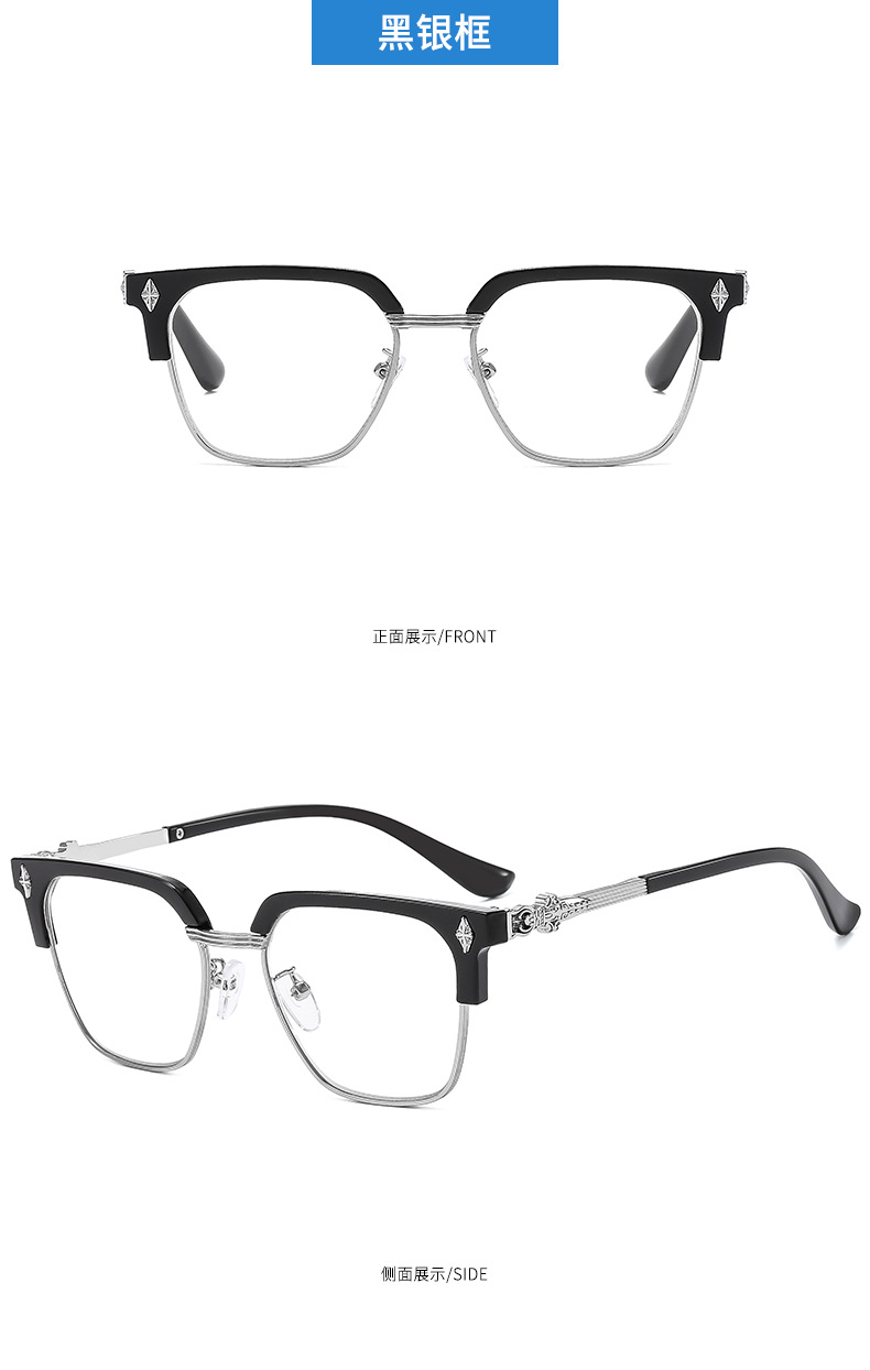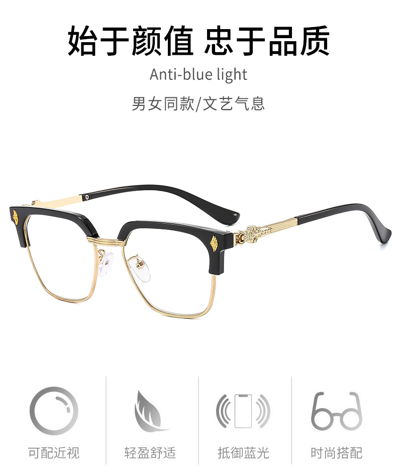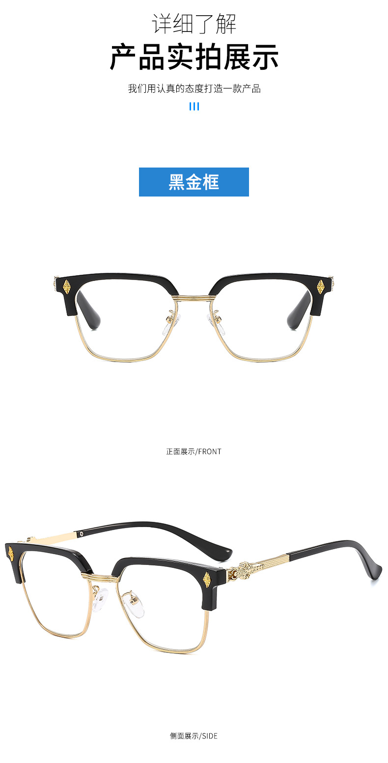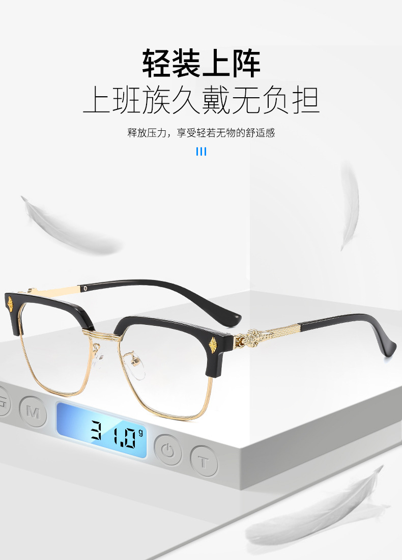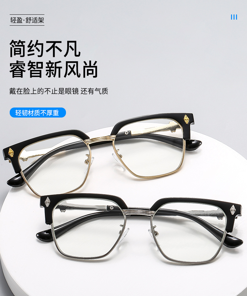 新型レトロ防ブルーライト老眼鏡男半枠眉眼鏡フレーム花鏡女ファッション若い老眼鏡