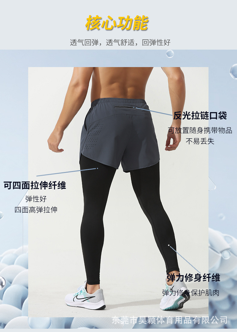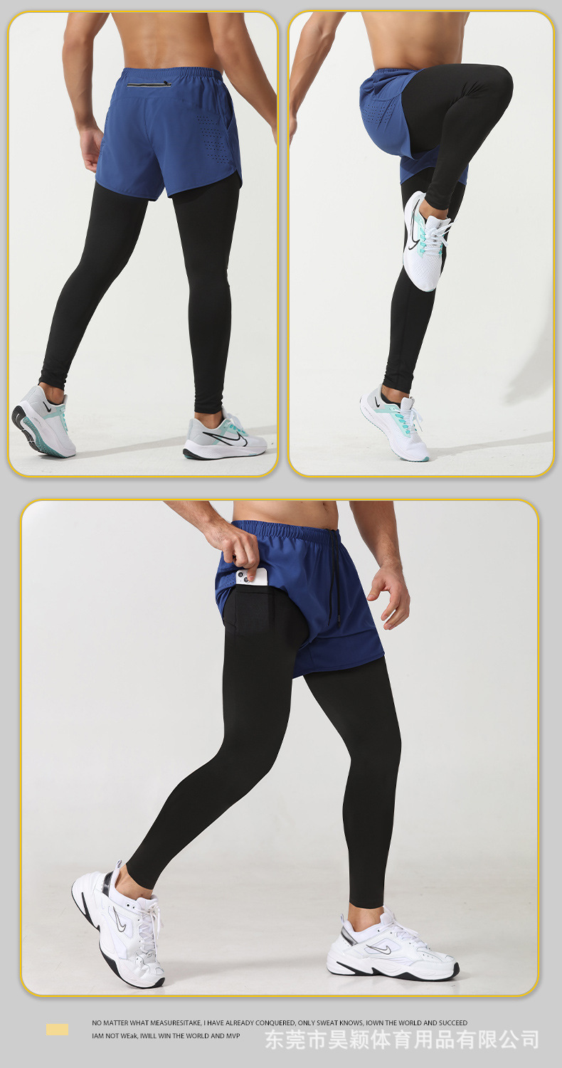 プロ級ランニングタイツ男偽二枚九分スポーツパンツ速乾通気高弾バスケットボール陸上トレーニングパンツ