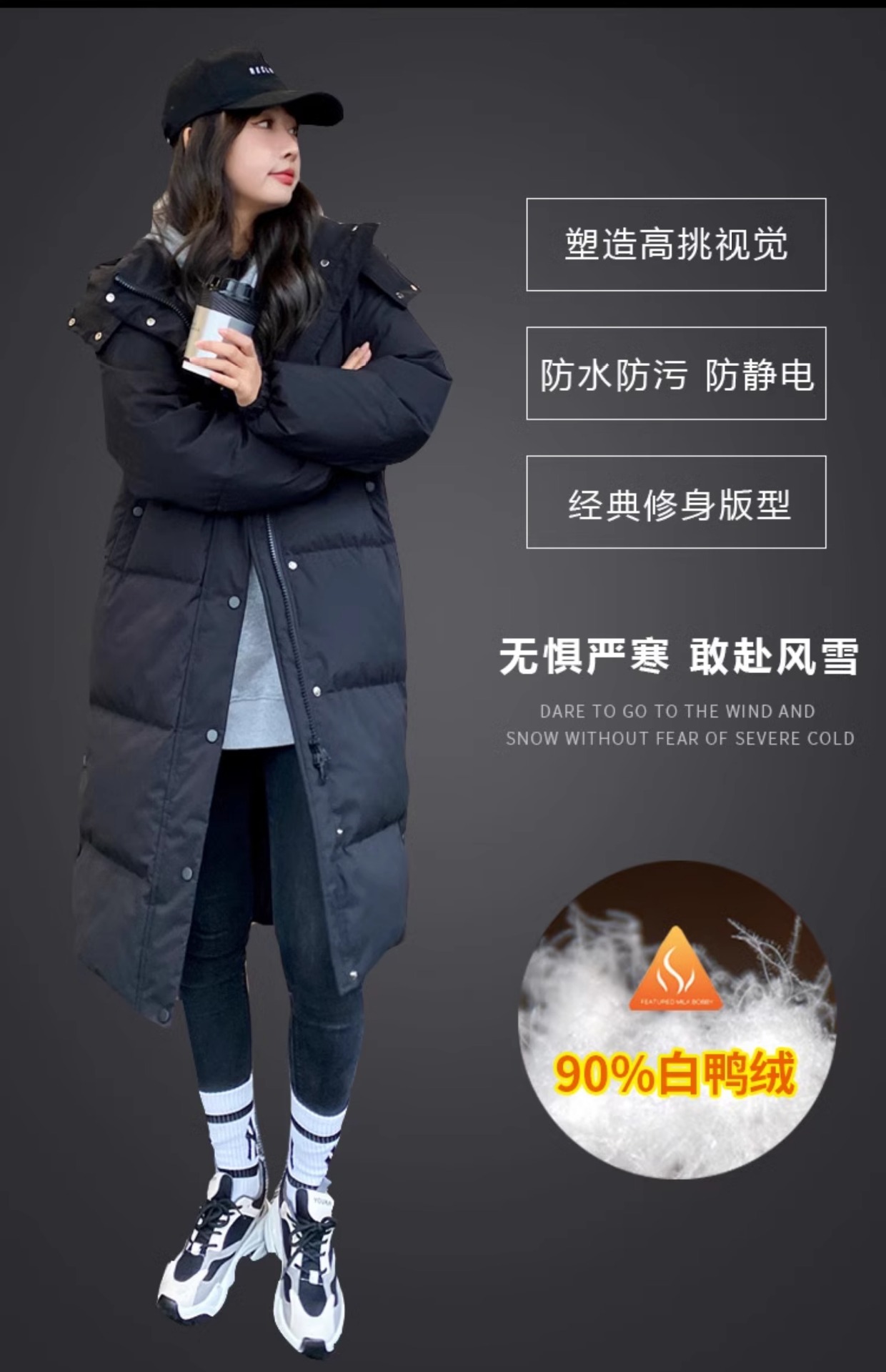 2025年冬新作 レディース ダウンジャケット 膝丈 ロング丈 カジュアル ゆったり 着痩せ効果 厚手 90%ホワイトダックダウン アウター 男女兼用