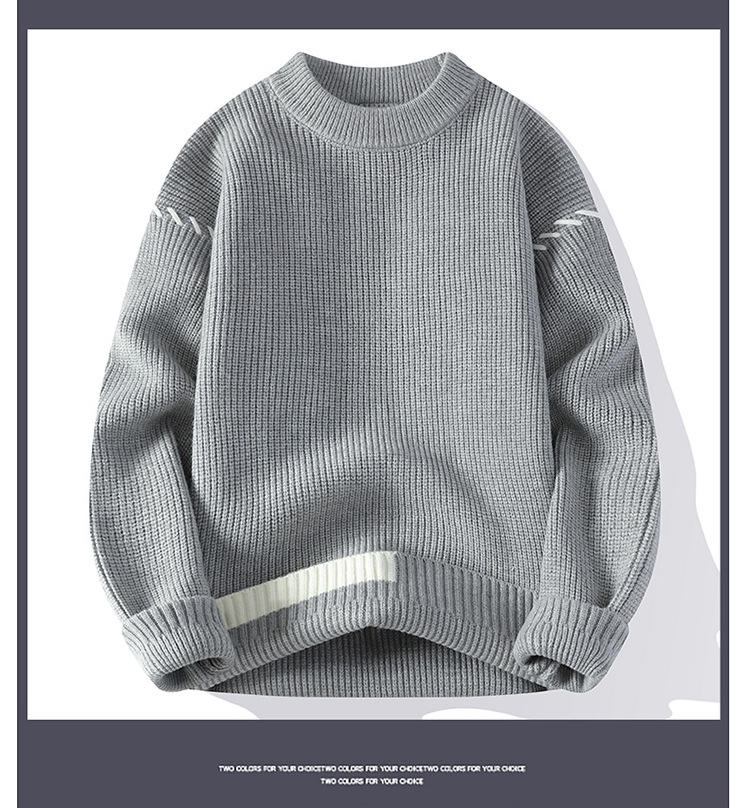 丸襟のセーターの男性の秋冬の新型の厚い保温の頭のゆったりしている青少年の韓国版は色を合わせてニットを打ちます。