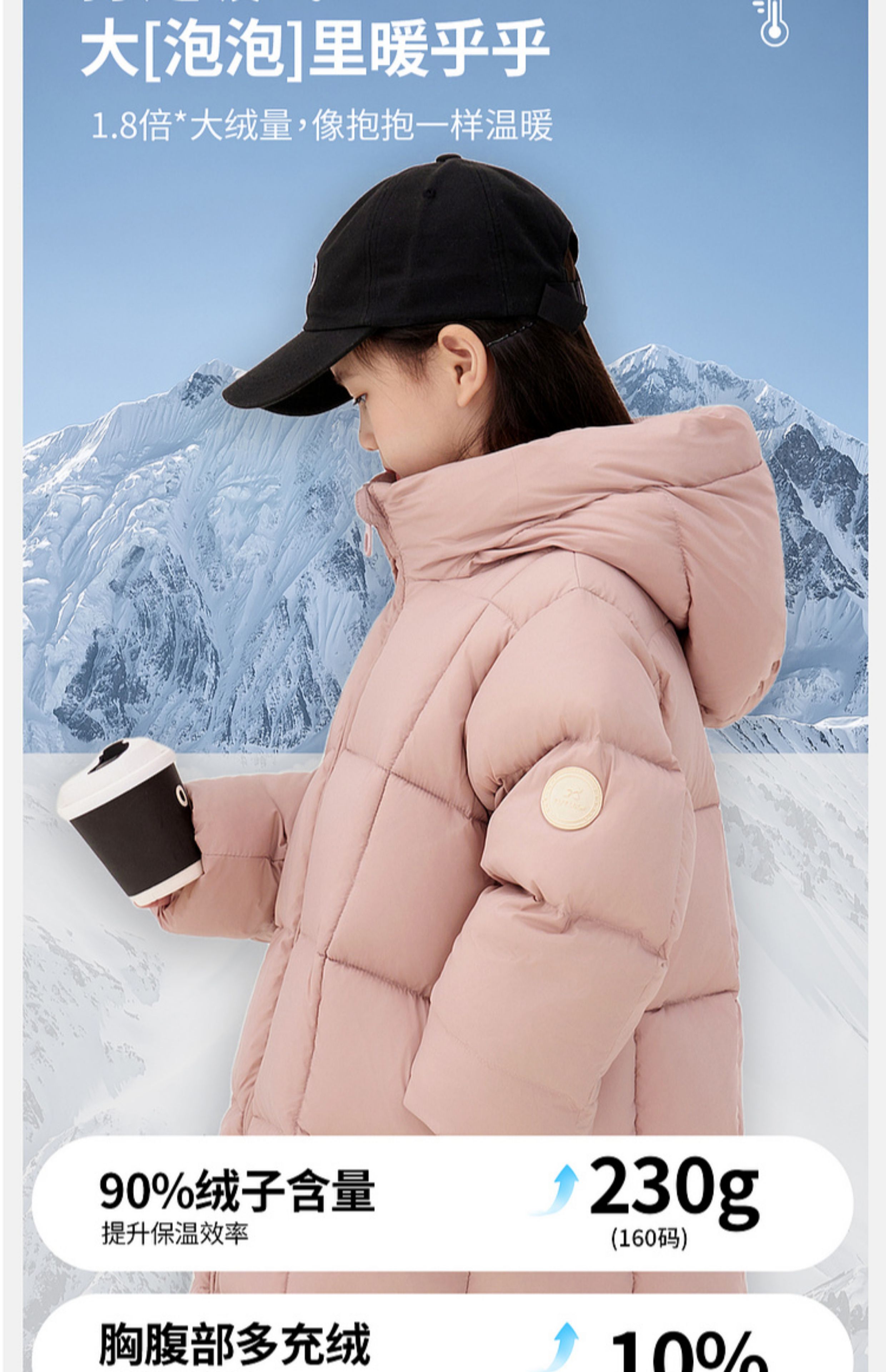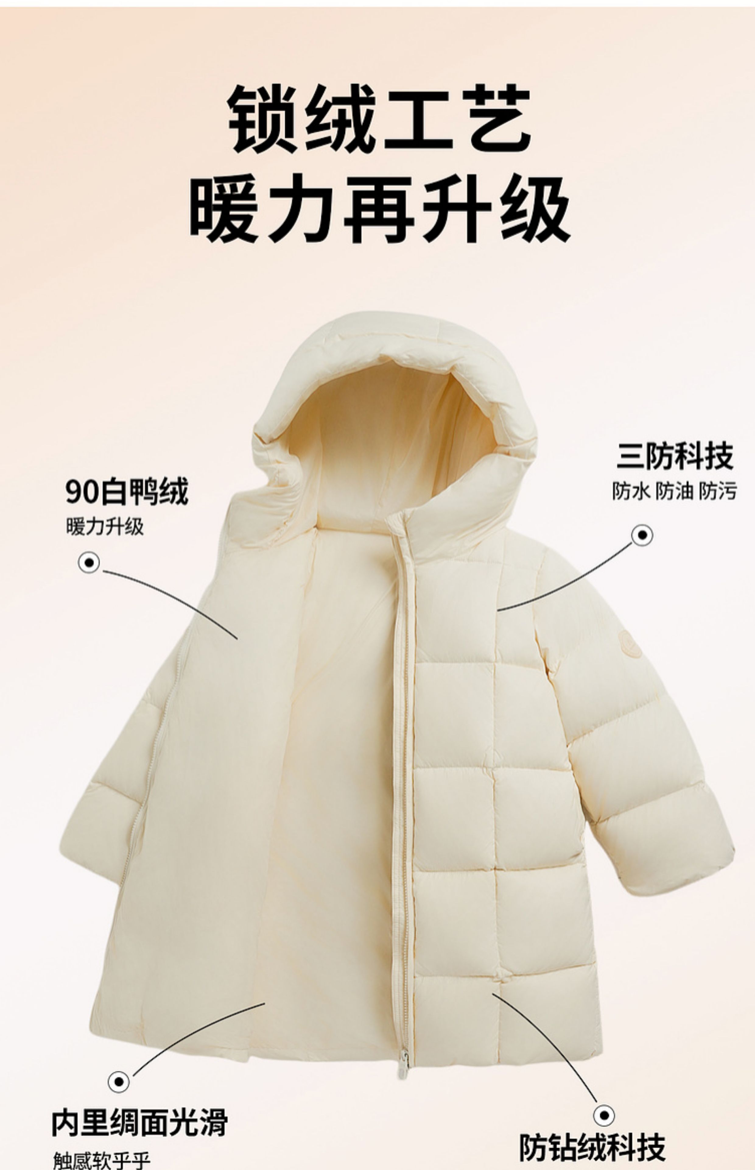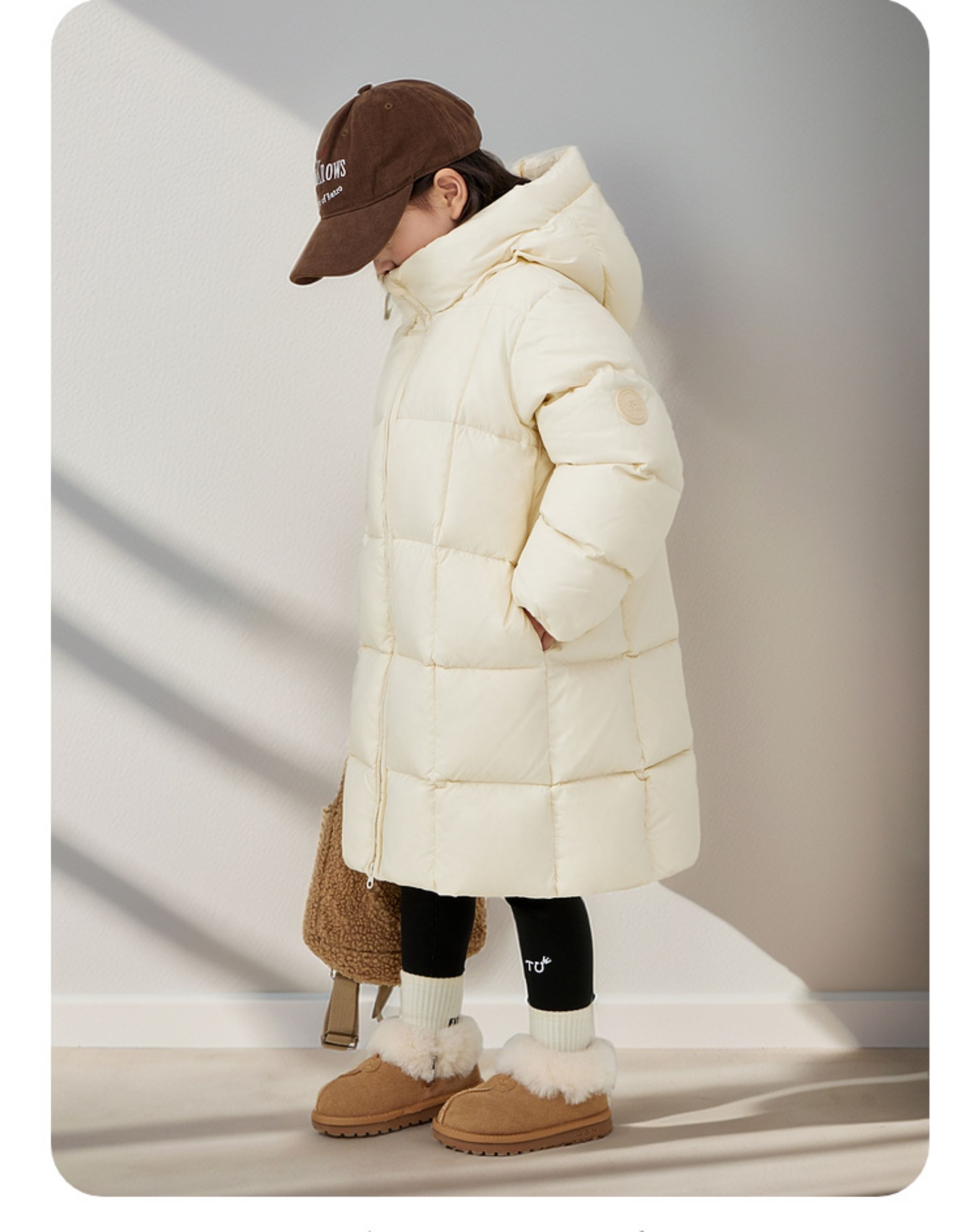 女の子のダウンジャケットの冬のタイプ2025の新型の洋気の流行の子供の秋の服の90白のアヒルの羽毛の厚い保温の上着の潮