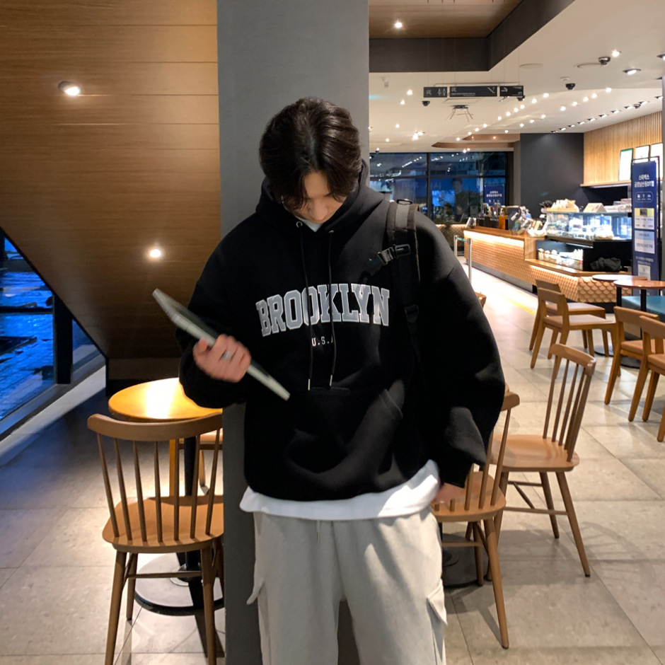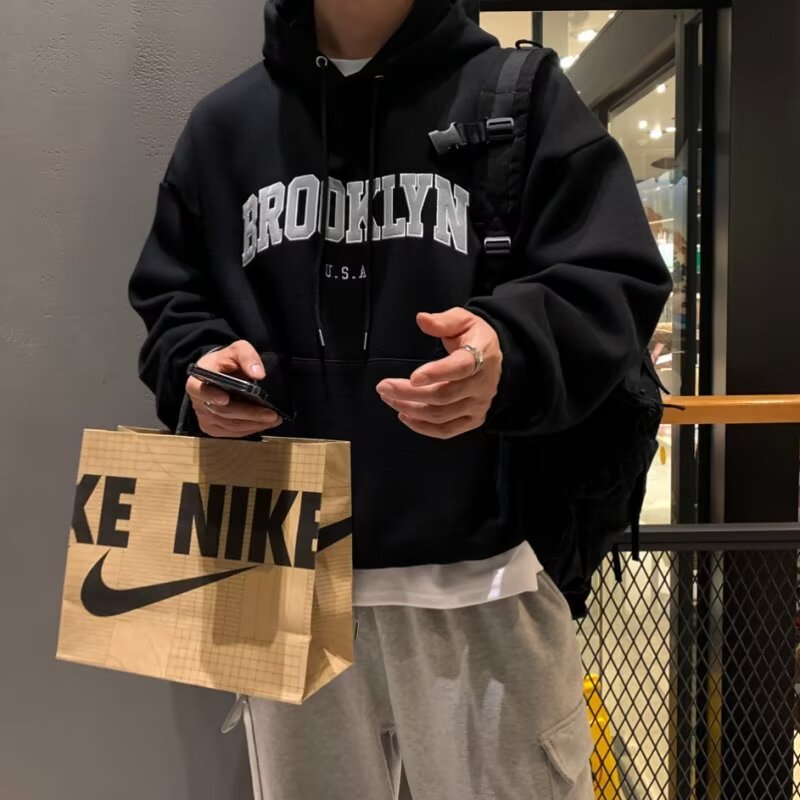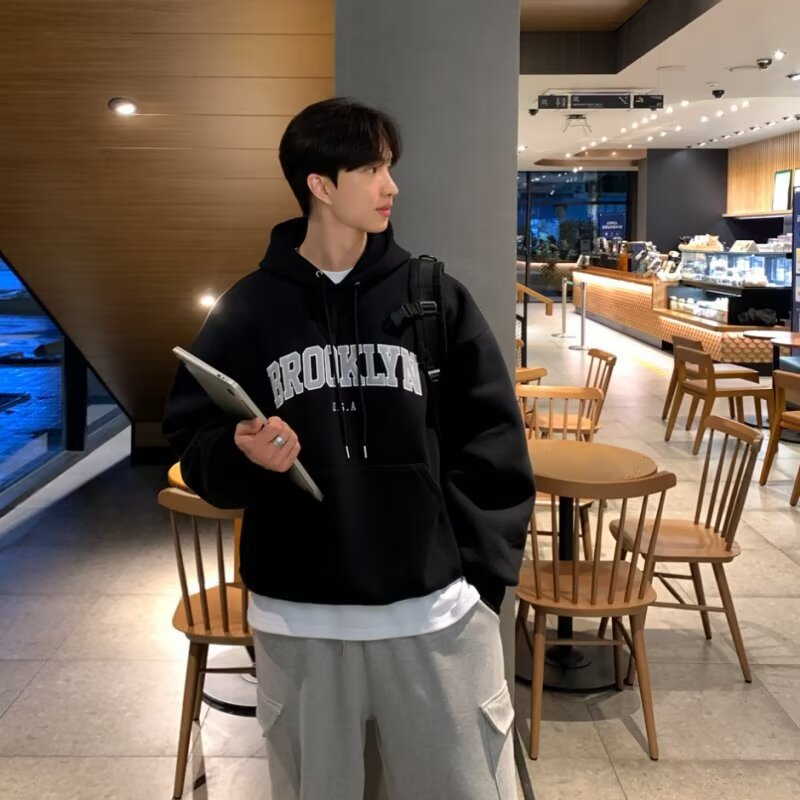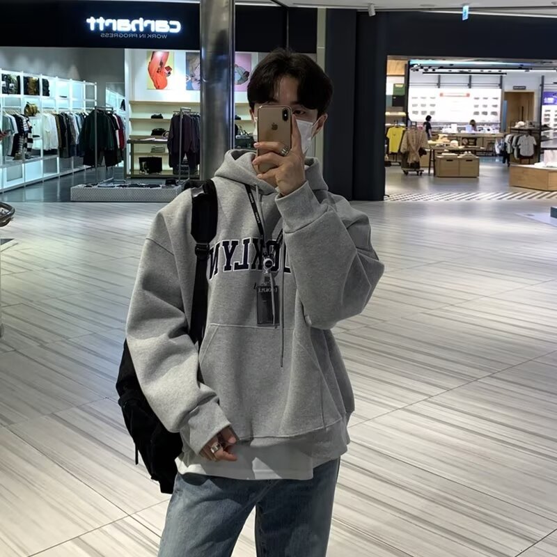 2024年秋の新型アメリカ式ガーディアン男性のゆるいトレンドが爆発した帽子付き男性の怠惰なコート
