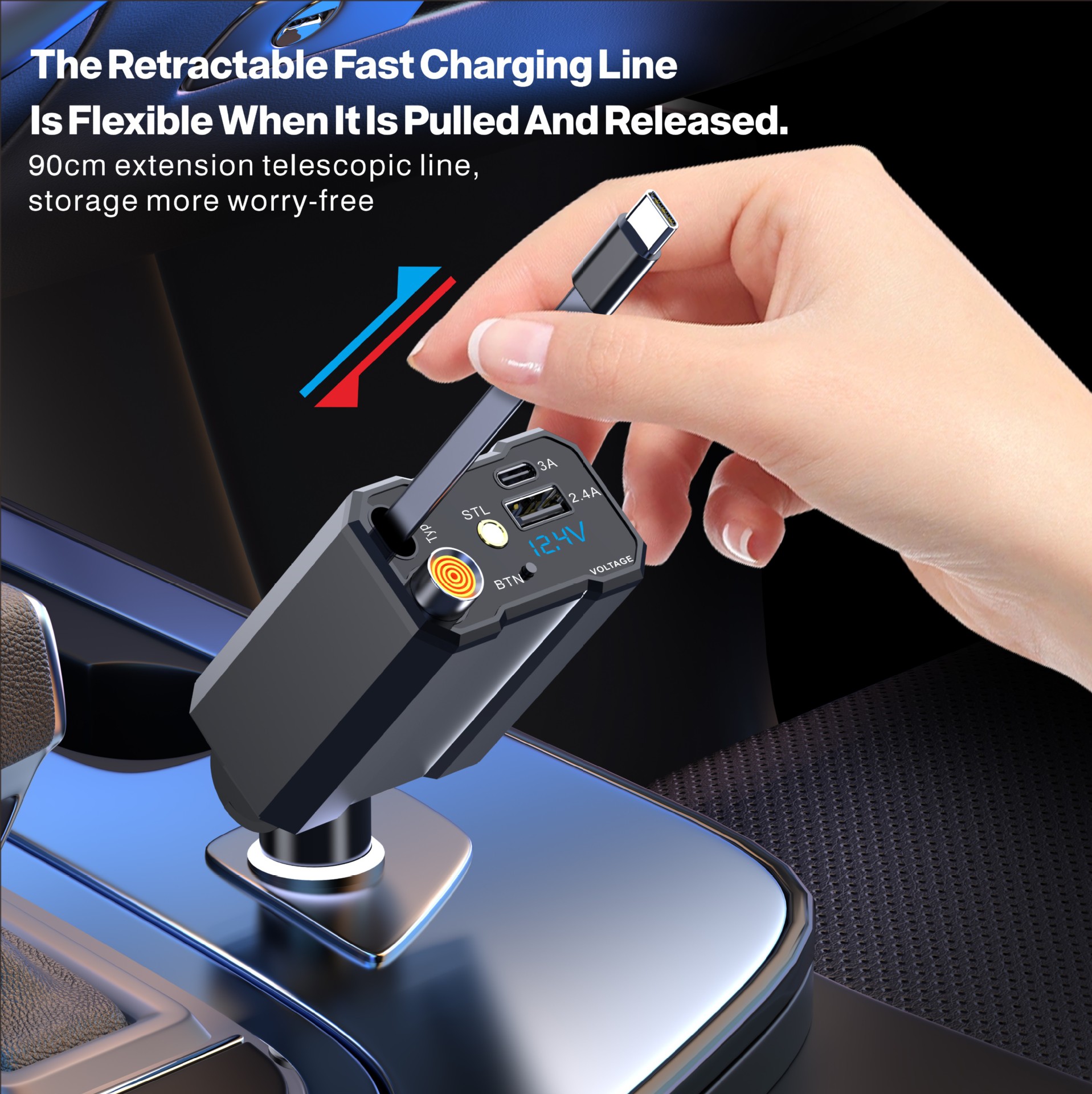 B1 テレスコピックコード超急速充電、シガーライト機能付き