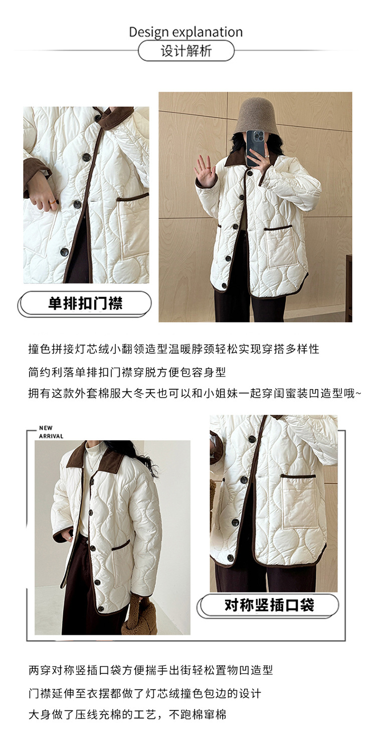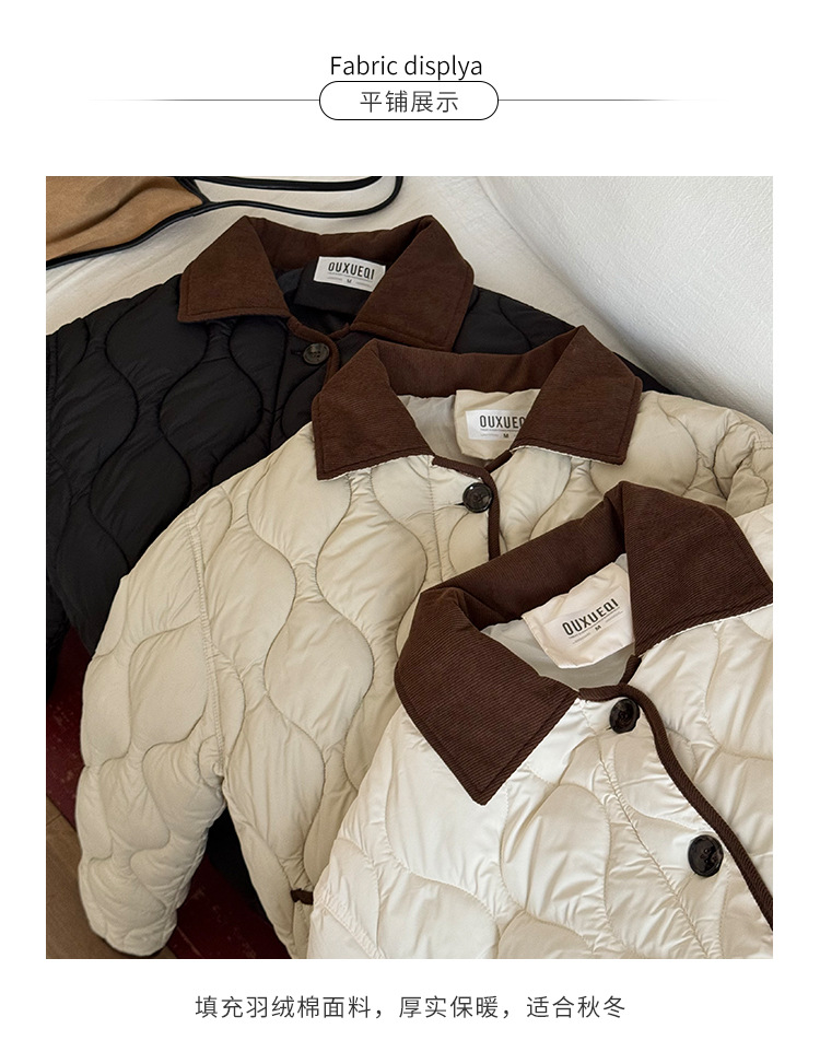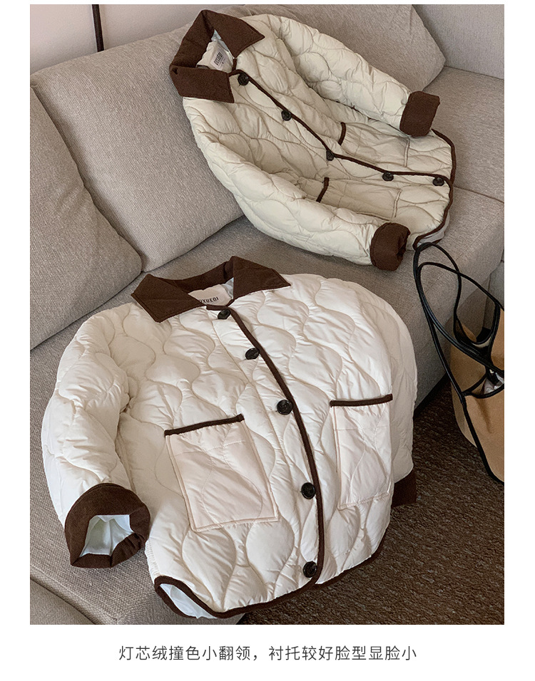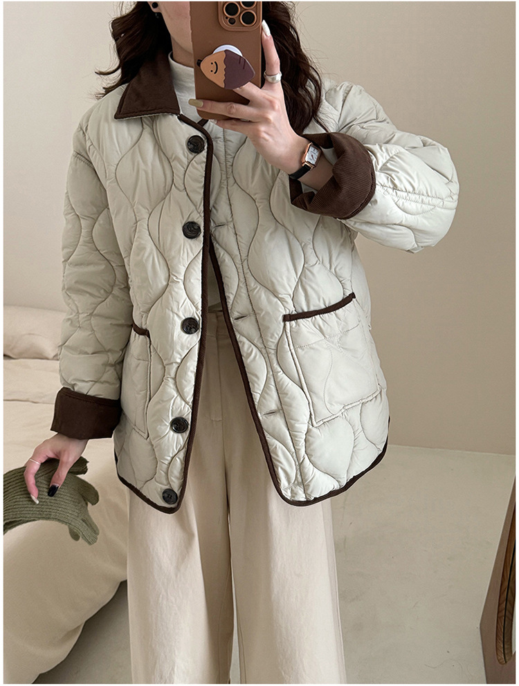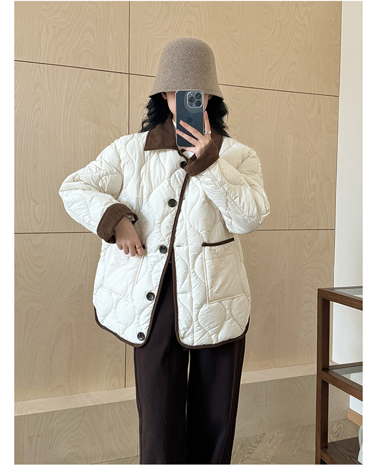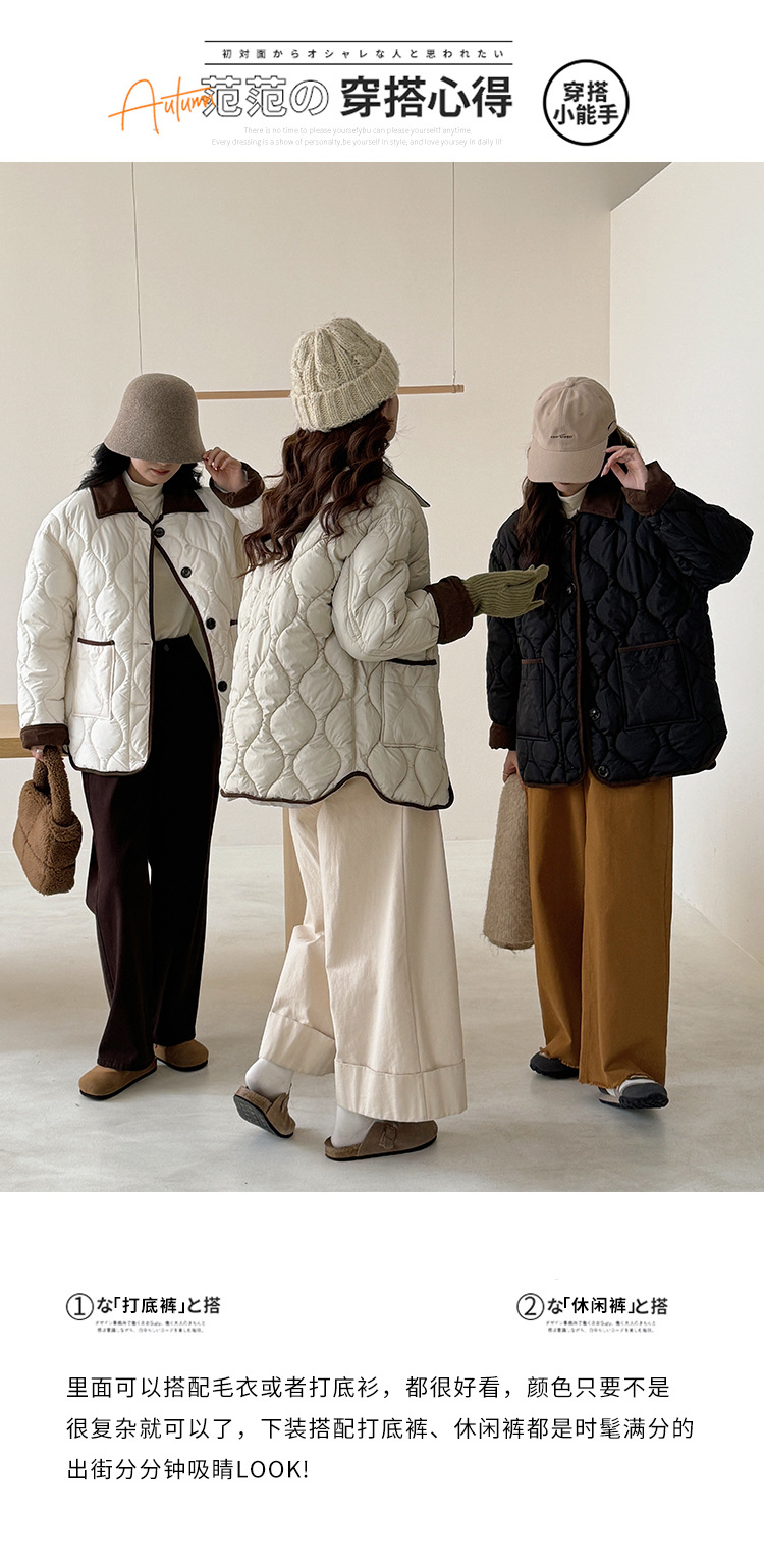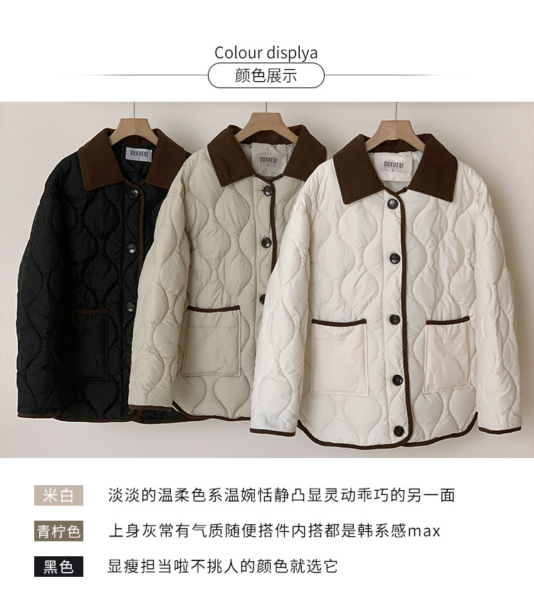 リアルショット 2024 Xiaoxiangfeng ショートダウンジャケット女性のコントラストカラーラペル菱形軽量ルーズコットンジャケット