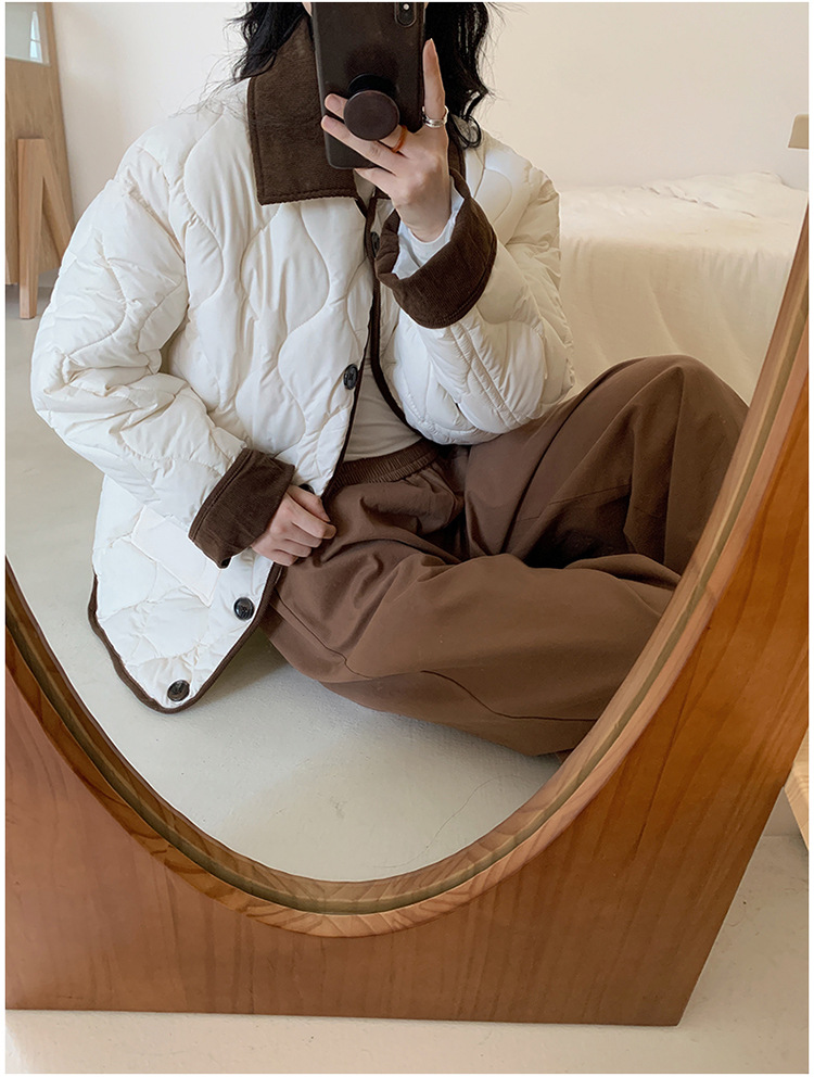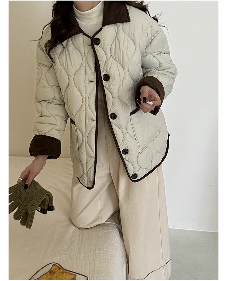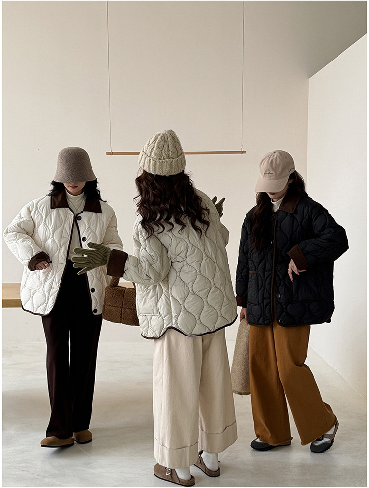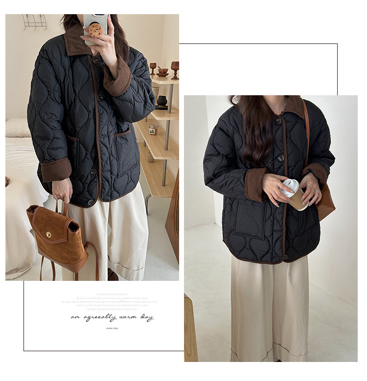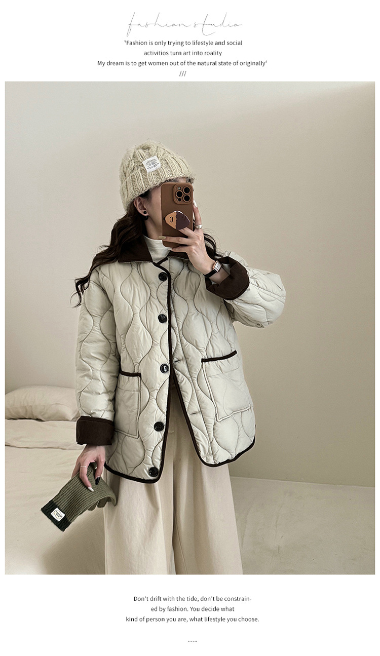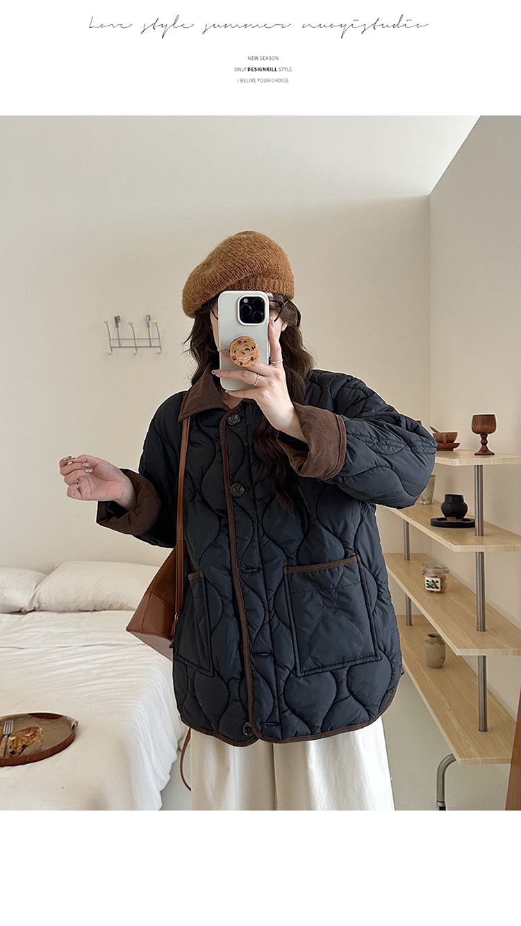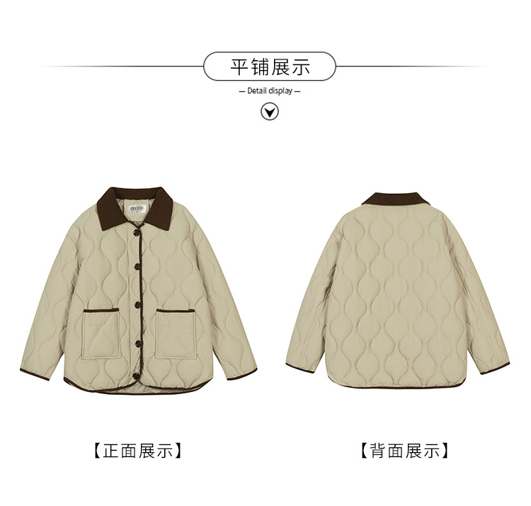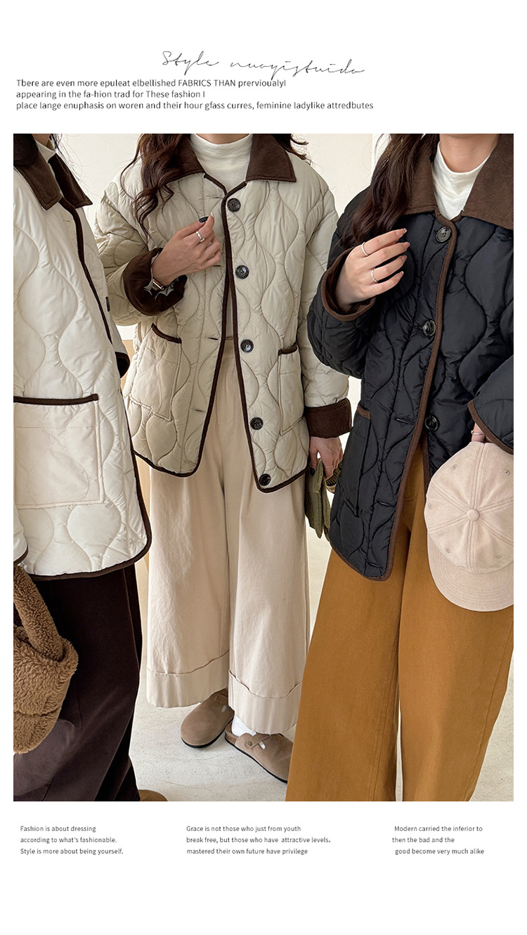 リアルショット 2024 Xiaoxiangfeng ショートダウンジャケット女性のコントラストカラーラペル菱形軽量ルーズコットンジャケット