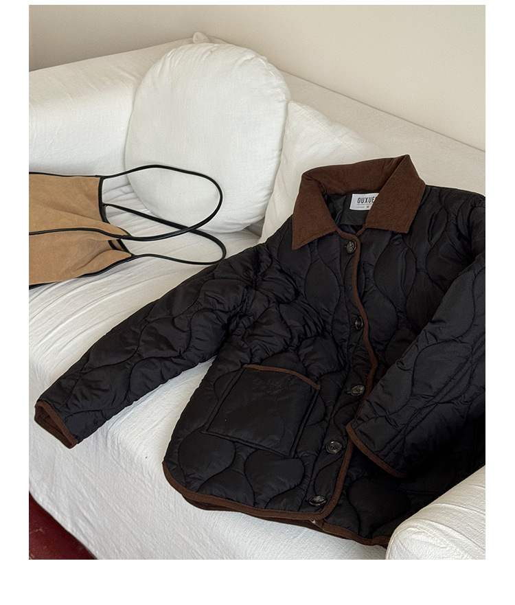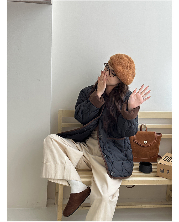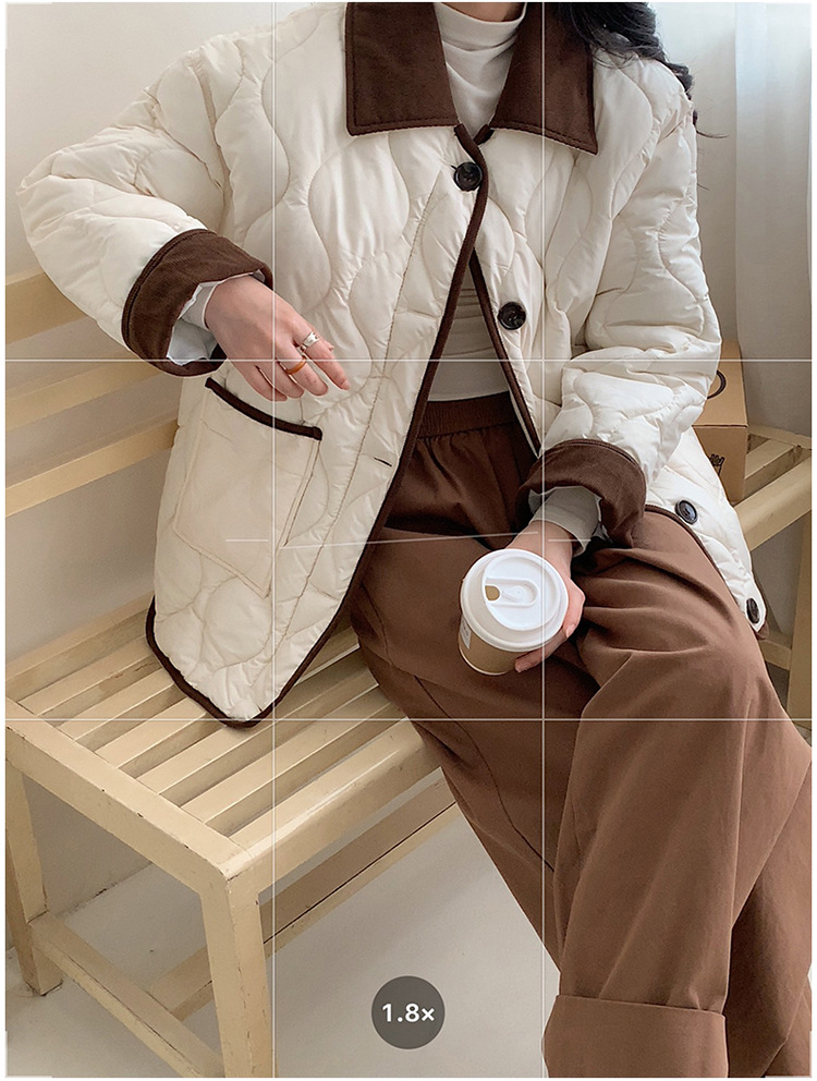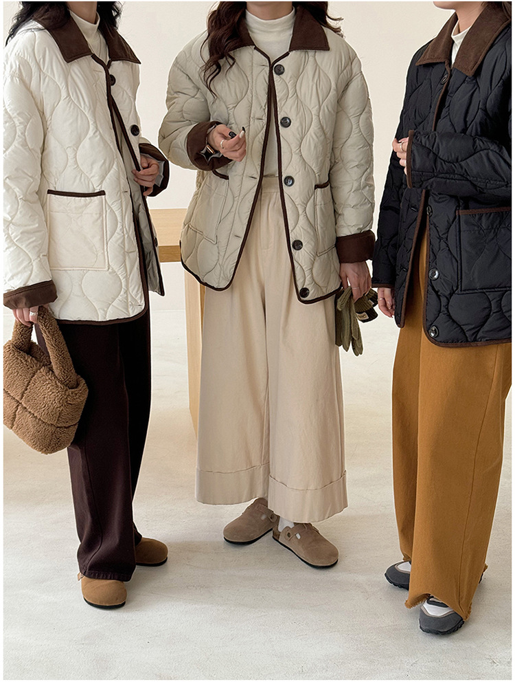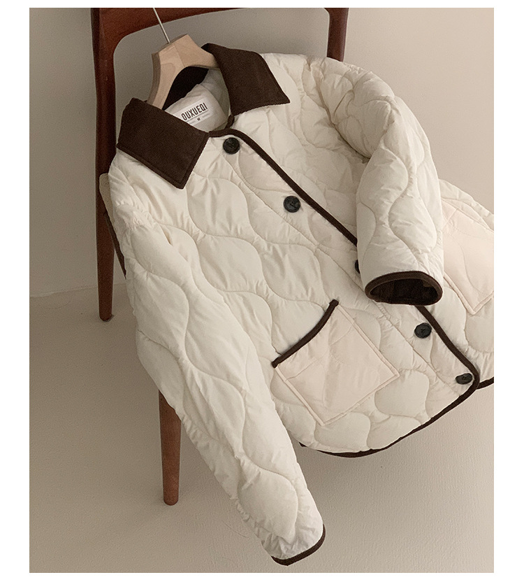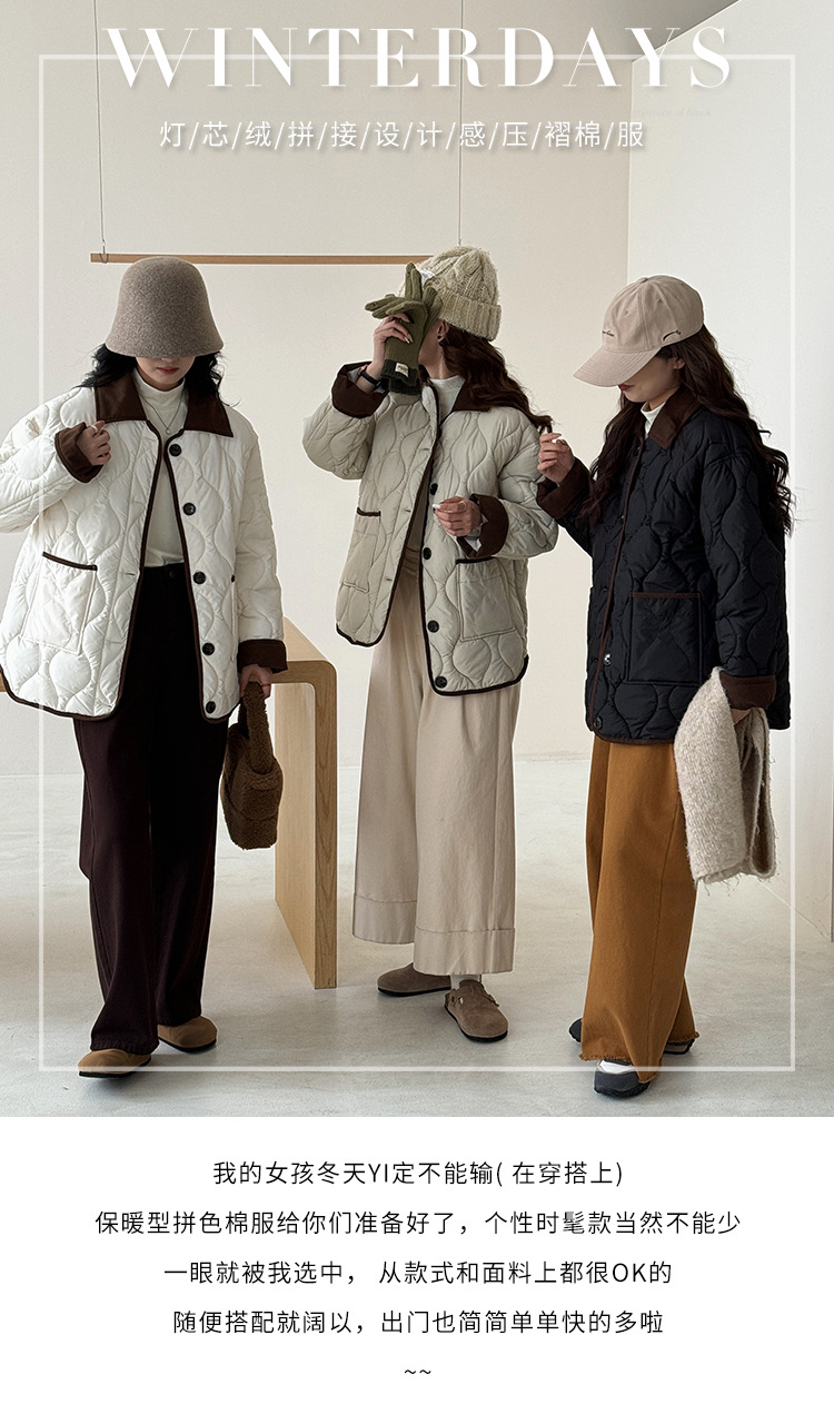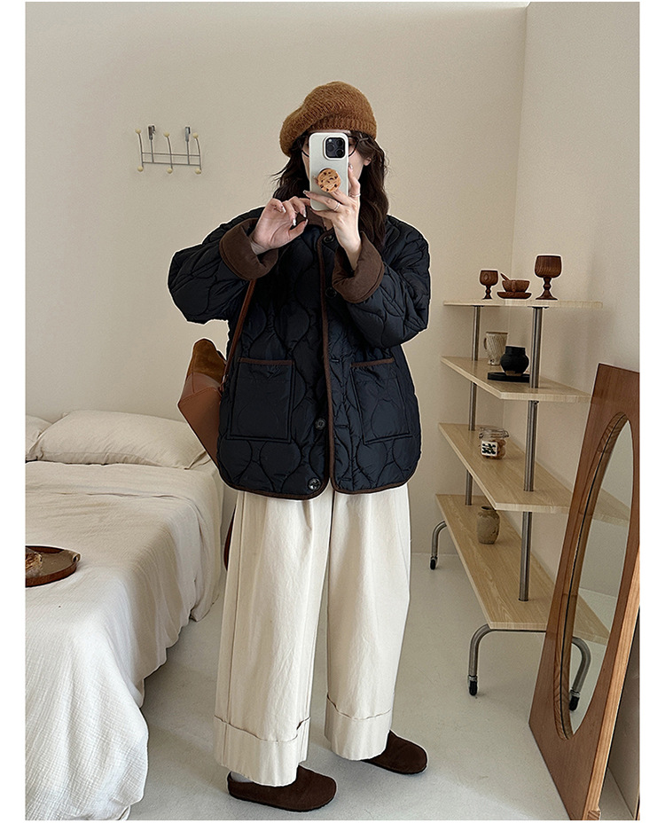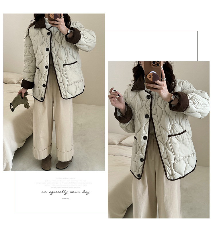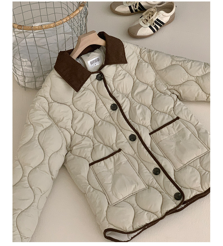 リアルショット 2024 Xiaoxiangfeng ショートダウンジャケット女性のコントラストカラーラペル菱形軽量ルーズコットンジャケット