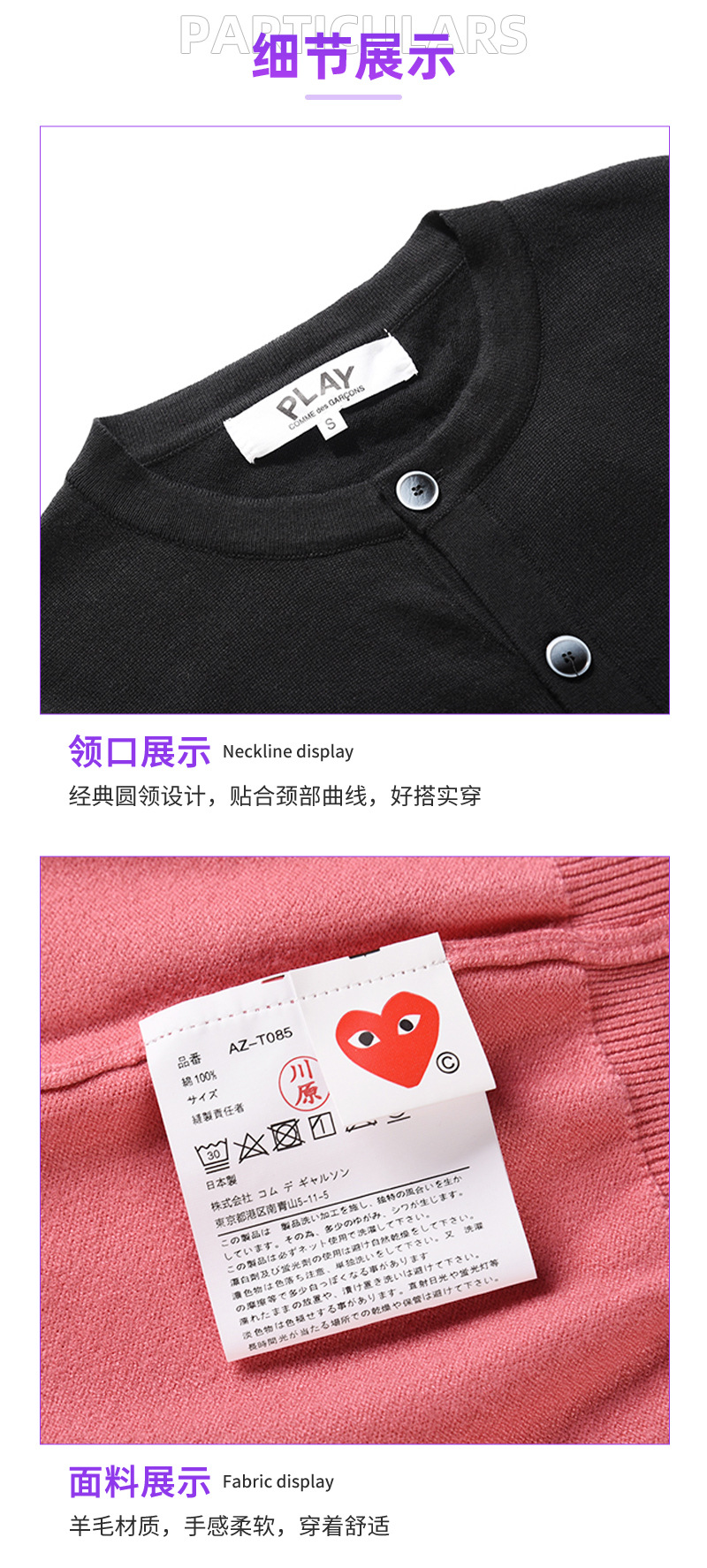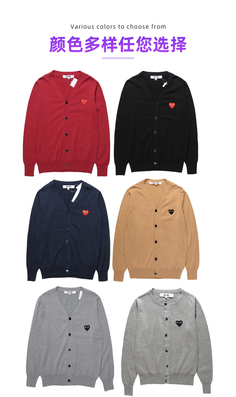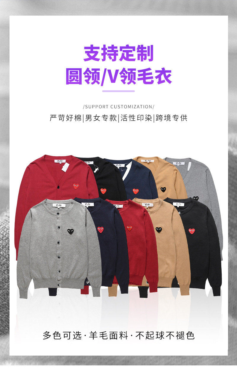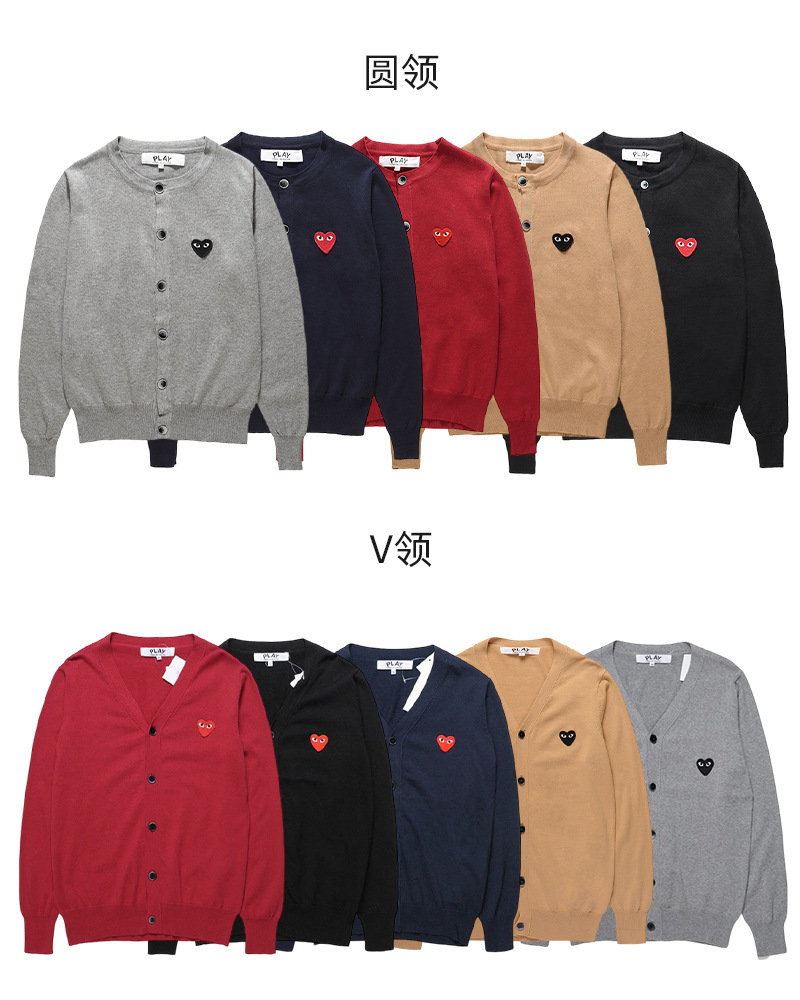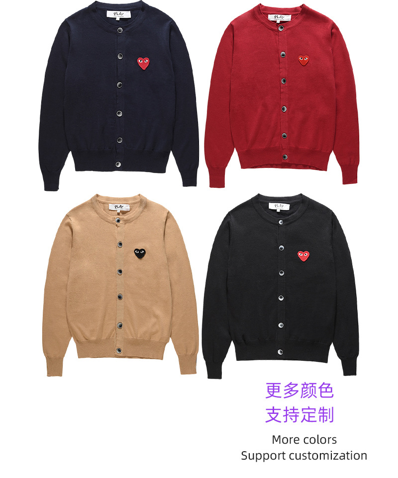 日本のトレンドブランド「HEYPLAY」と同じスタイルのニットカーディガン、黒のカップル向け同型ウールセーター、赤いハート柄ニットセーター(女性用)