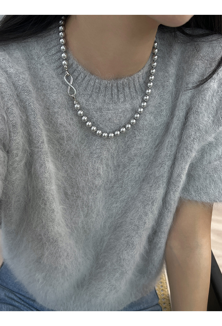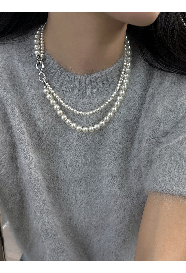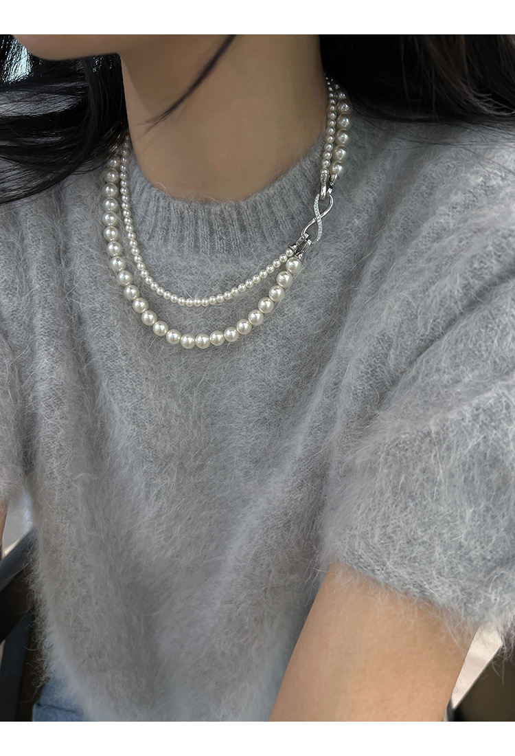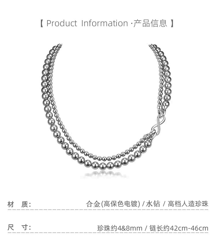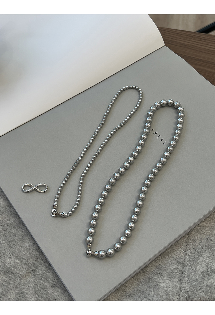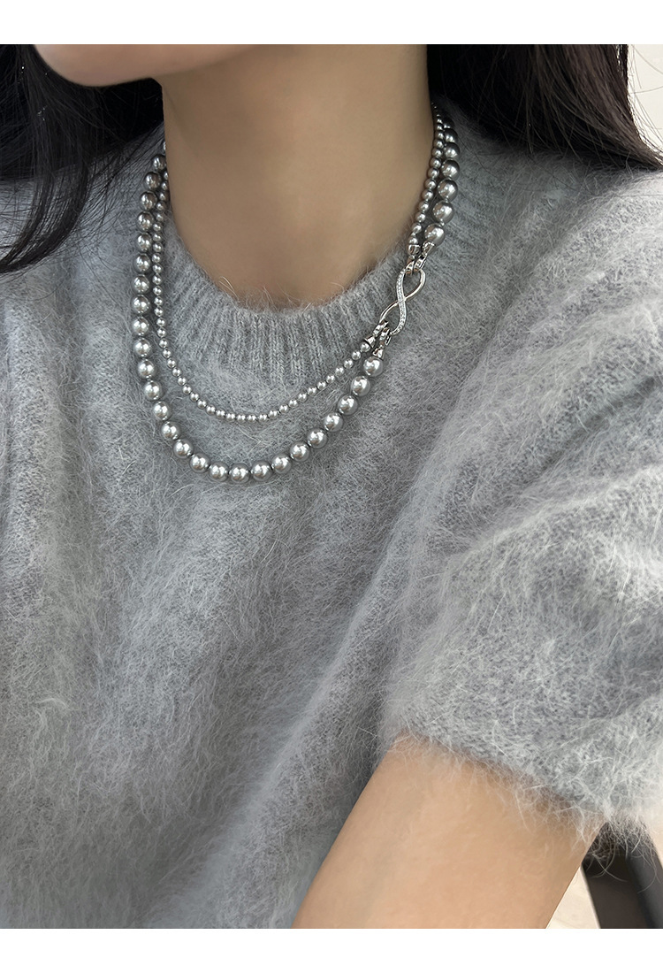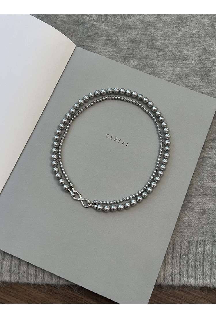 グレー二層パールネックレス【着脱式】