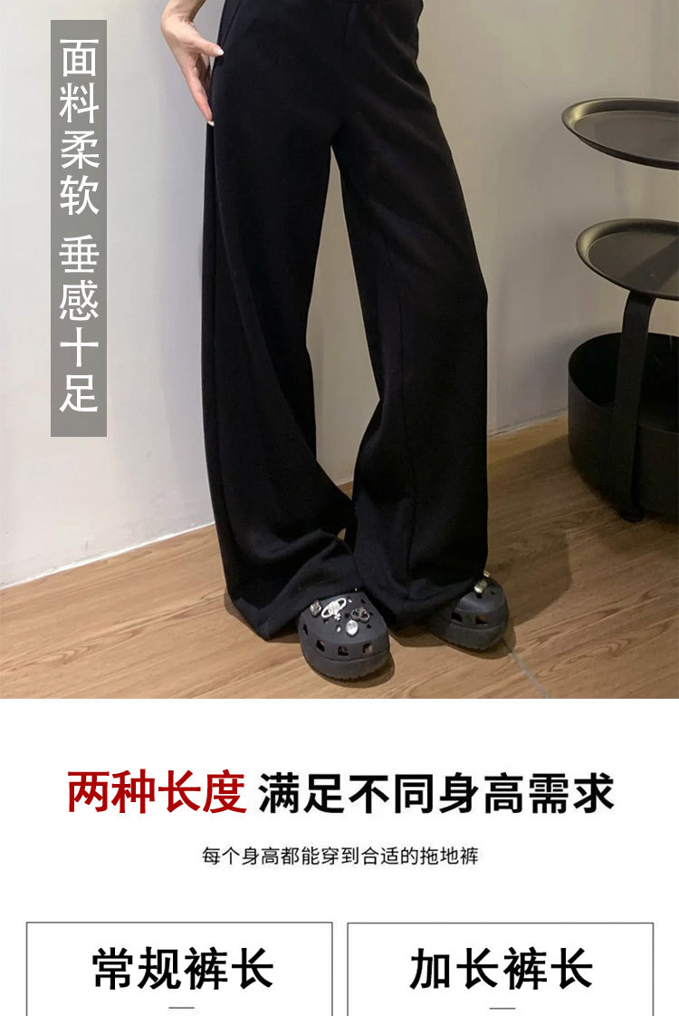 ステッチ入りコントラストカラーワイドレッグパンツ レディース 2025春秋 スポーツパンツ ローウエストストレートパンツ ロング丈ニットパンツ