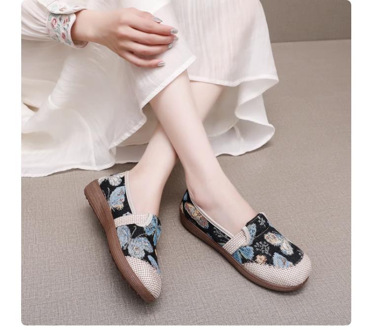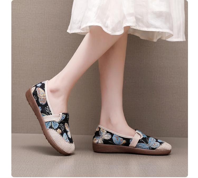 26夏の新作老北京布靴、女性用春秋新作通気性フィッシャーマンシューズ、中高年向けスリッポンママシューズ、シングルシューズ