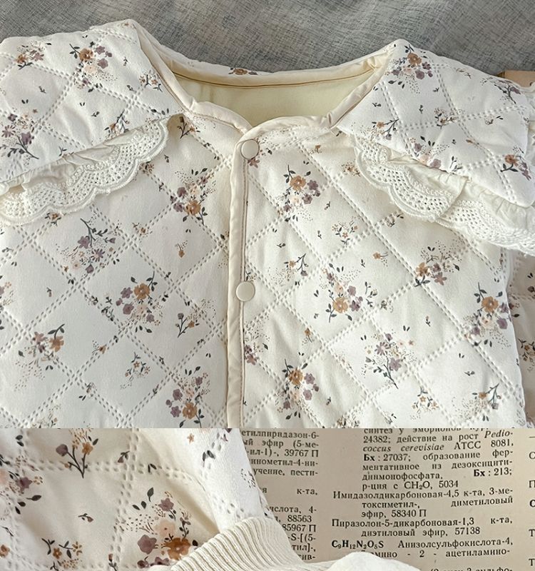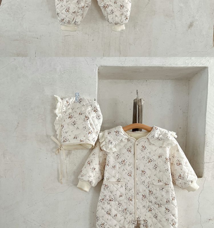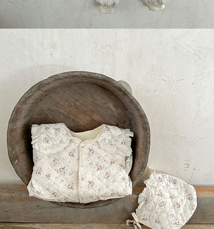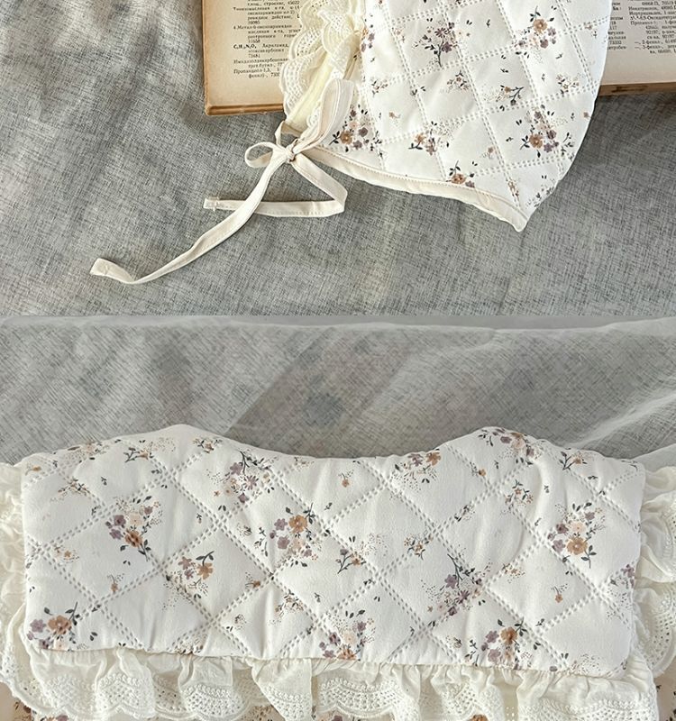 オフホワイト【ドールカラー花柄+帽子薄手コットン】カーキ