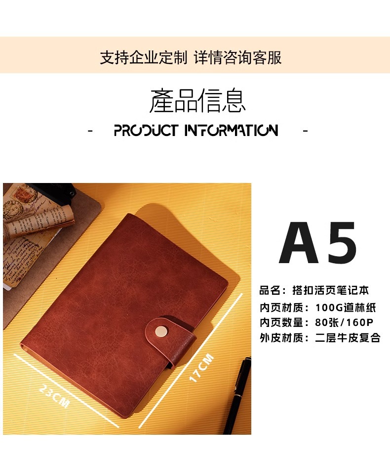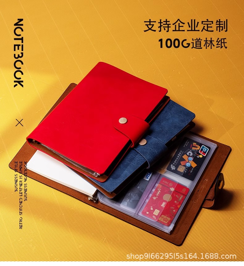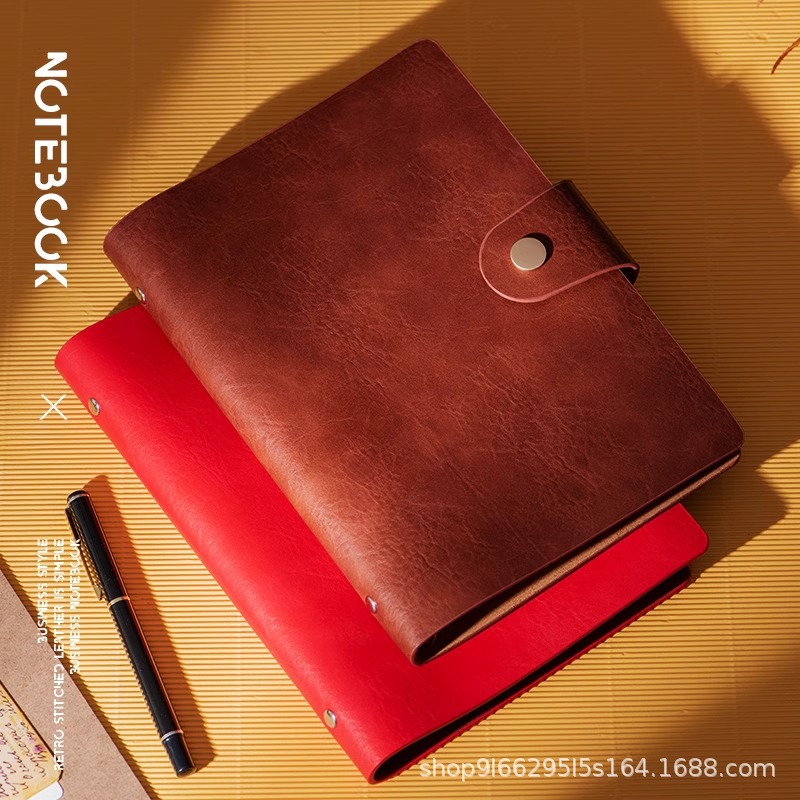 A5 レトロ牛革ビジネスノートブック卸売バックルオフィスレザーバインダーメモ帳カスタマイズ