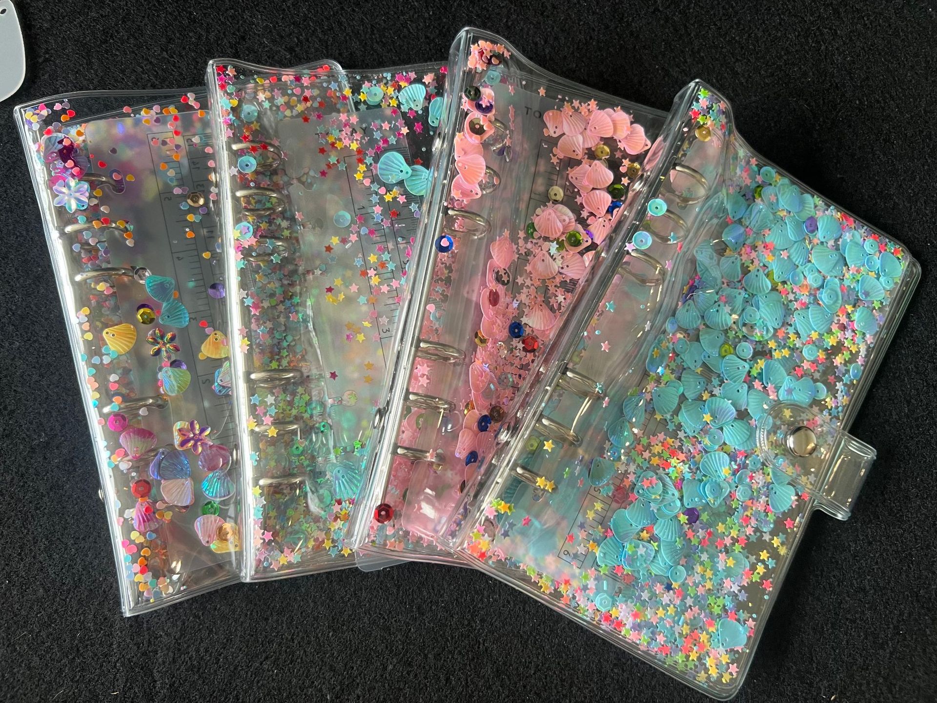 ノートA6カラー流砂貝殻スパンコールPVCバインダーアルバムクリップスター小カードコレクション収納帳手帳