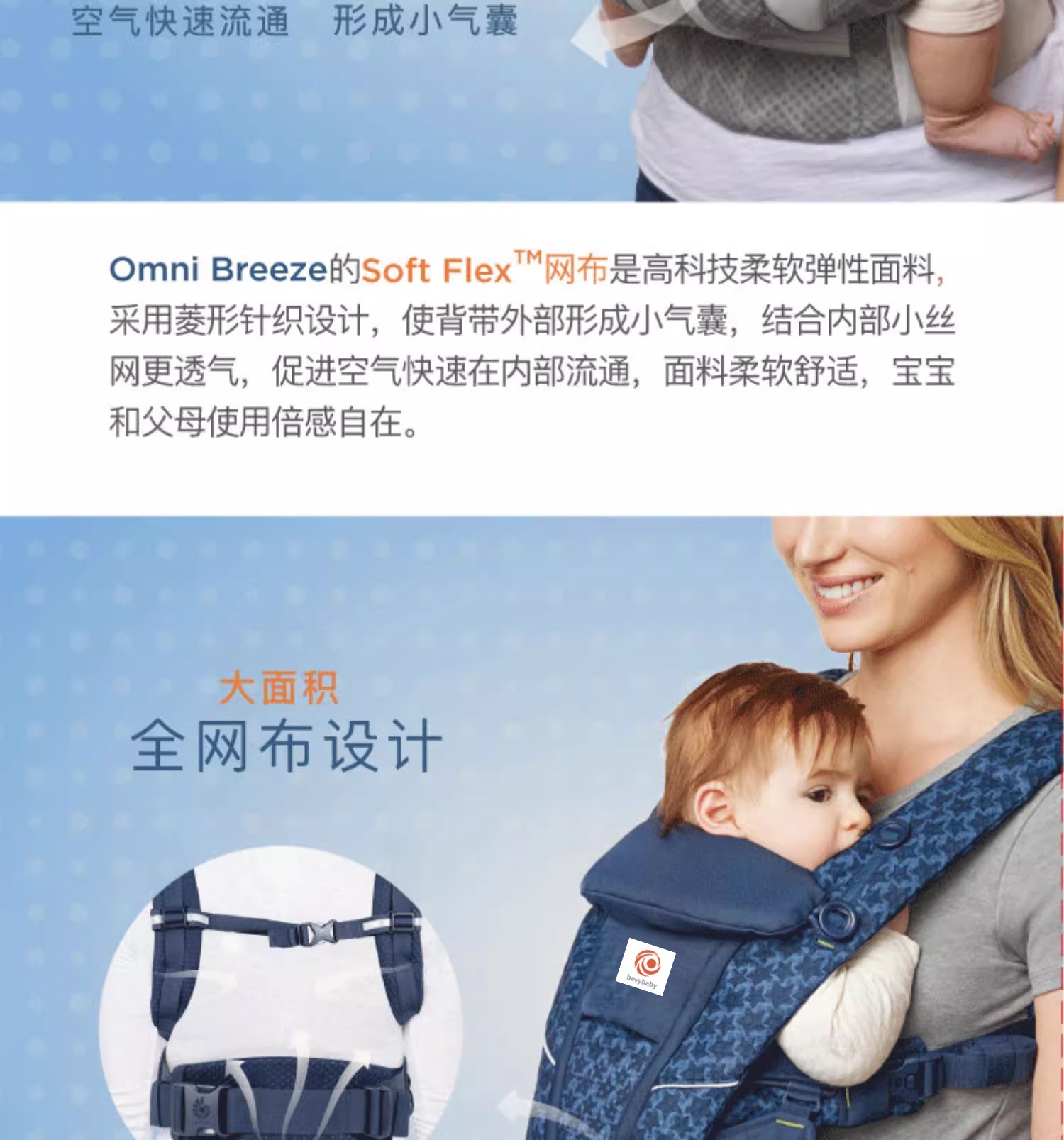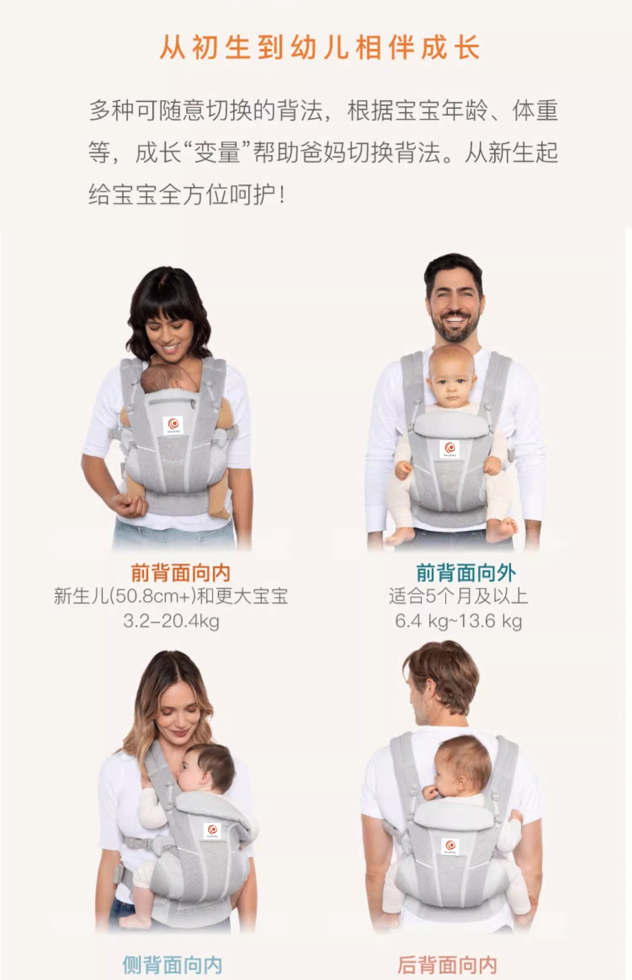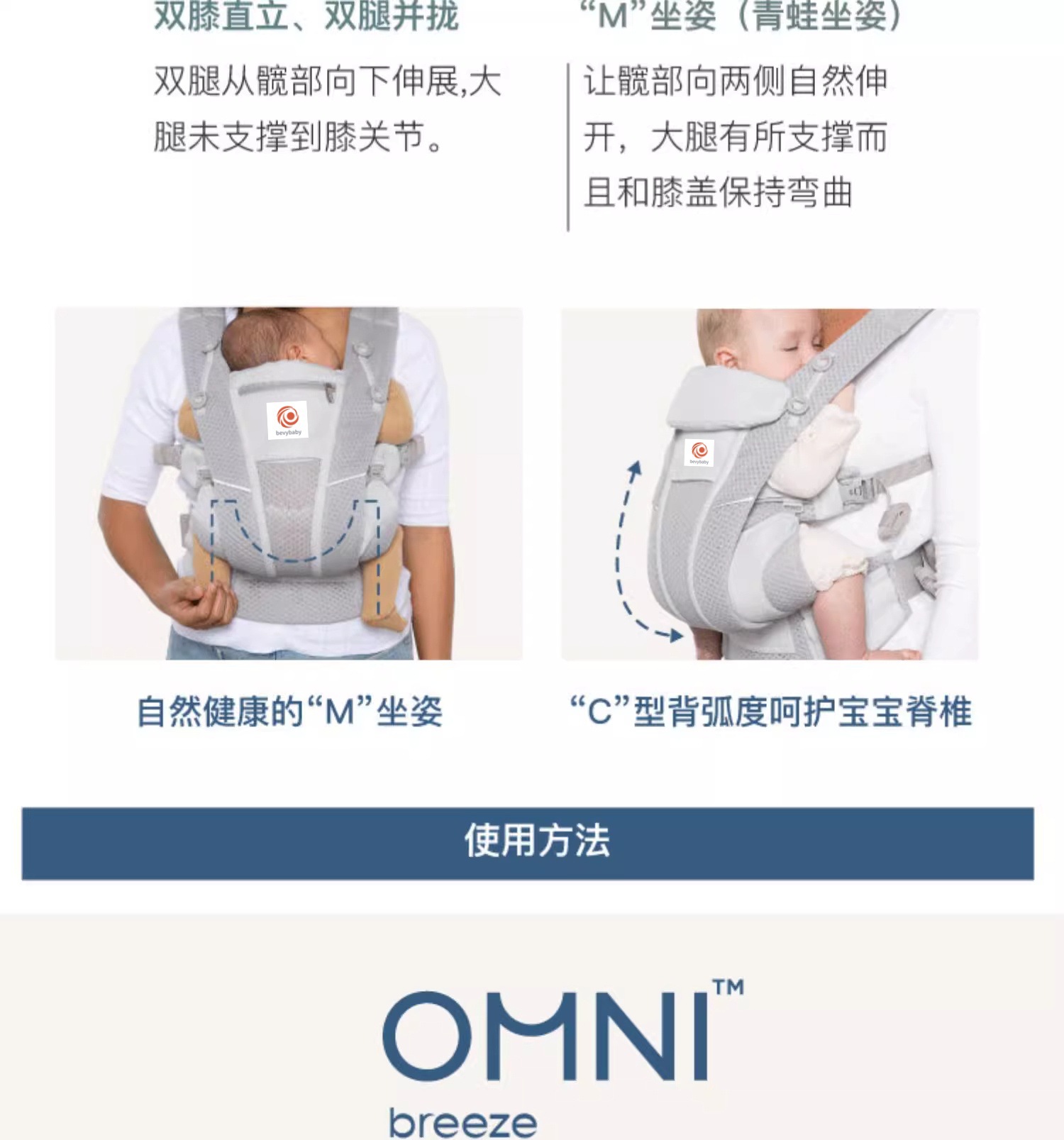 アメリカ製ベビーキャリア、二子犬用腰掛け、OMNIBreeze、乳児用抱っこ紐、新生児から幼児まで使えるベビーキャリア