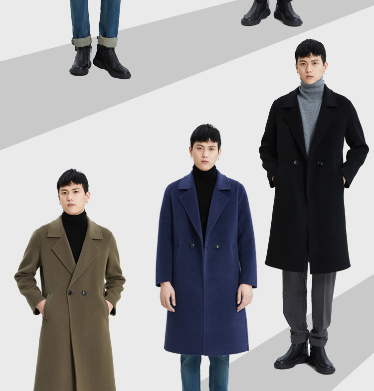 両面のカシミヤのコートの男性の冬の厚い中の長さの100% のウールのラシャのコートの男性の風の服のコートの男性の秋冬