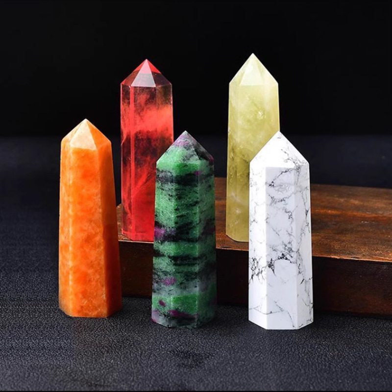 天然紫水晶黒曜石単双尖水晶柱六角柱原石磨き置物ホームリビングオフィス