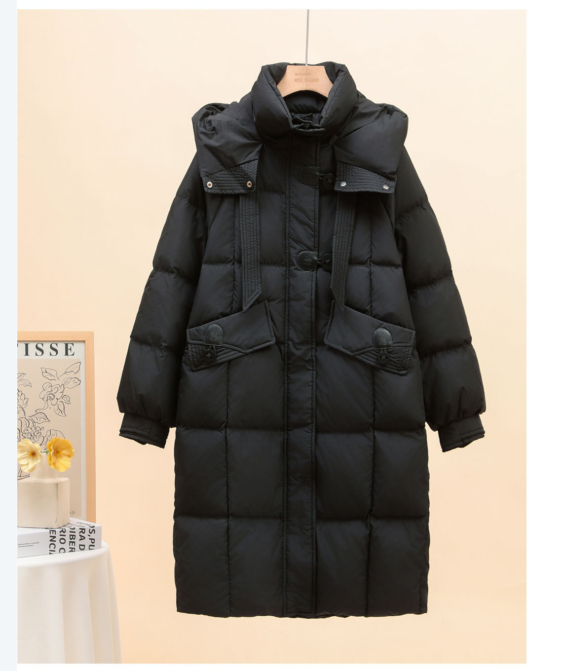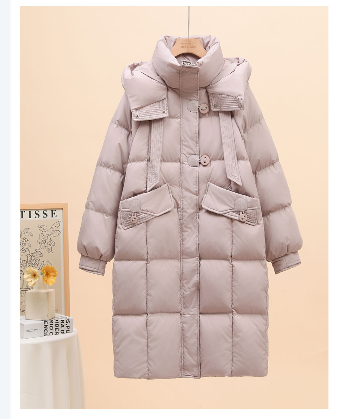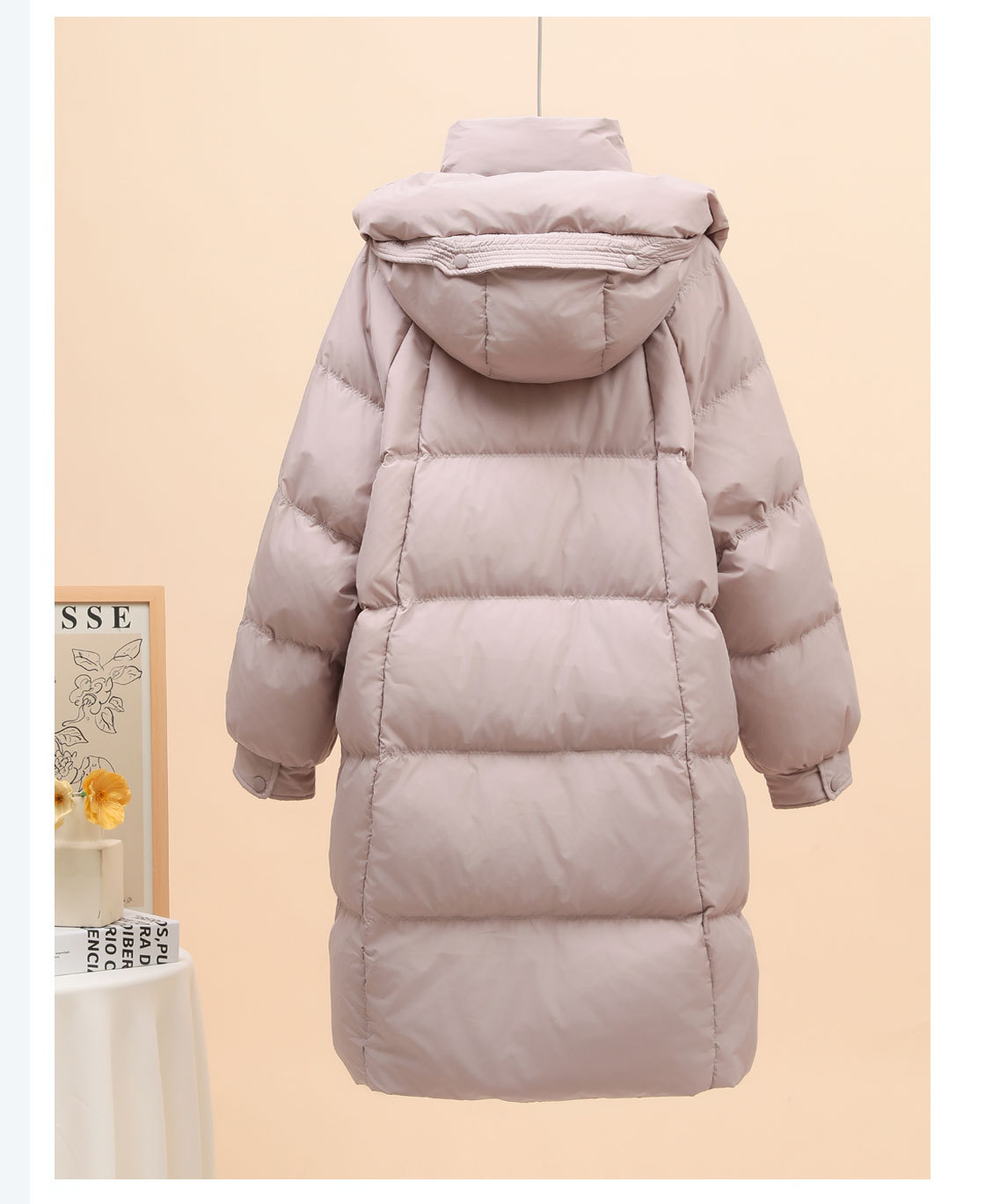 中丈の白いグースダウンジャケット レディース 2025年新作 韓国風 厚手 リボン付き フード付き ゆったり 膝丈 冬用コート