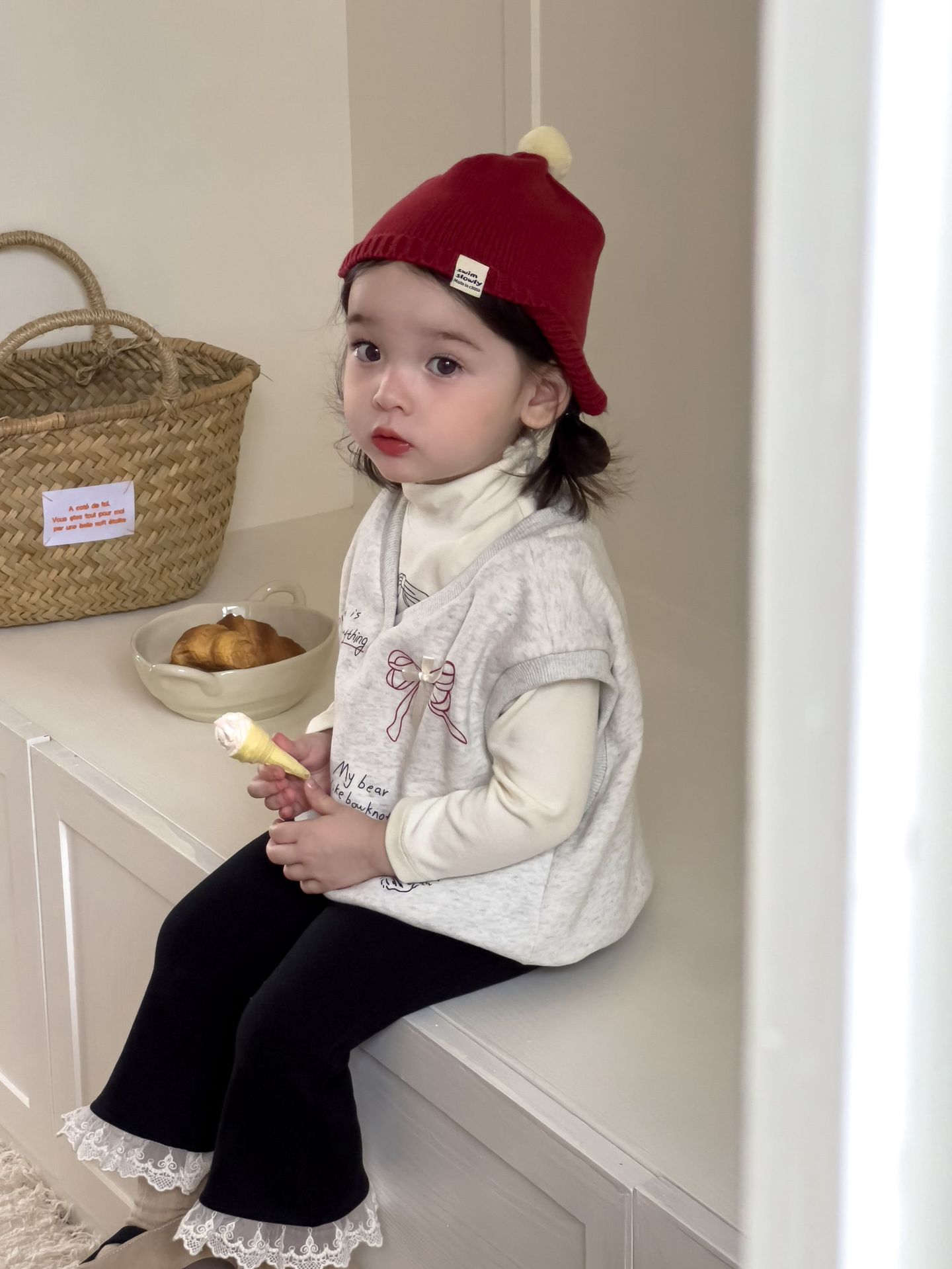 幼児女児用おしゃれな裏起毛スウェットベスト、女児用冬用インナー、秋冬セット