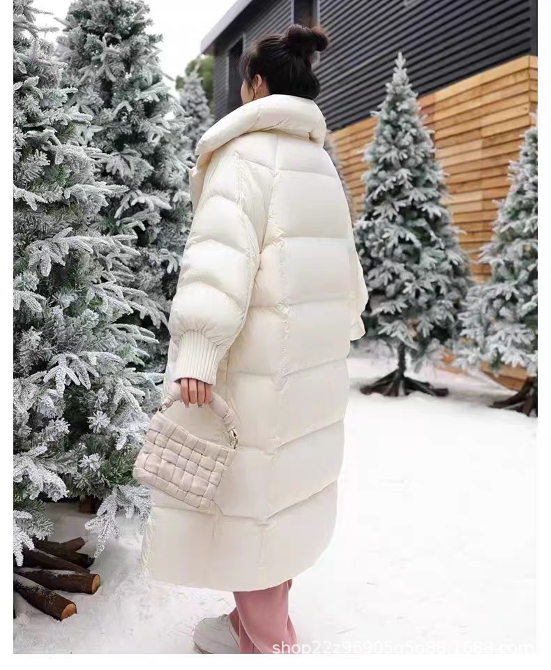 25種類の高級感のある大きな襟のロング丈レディースダウンジャケット、ゆったりとした膝丈以上の厚手のファッショナブルな暖かいコート