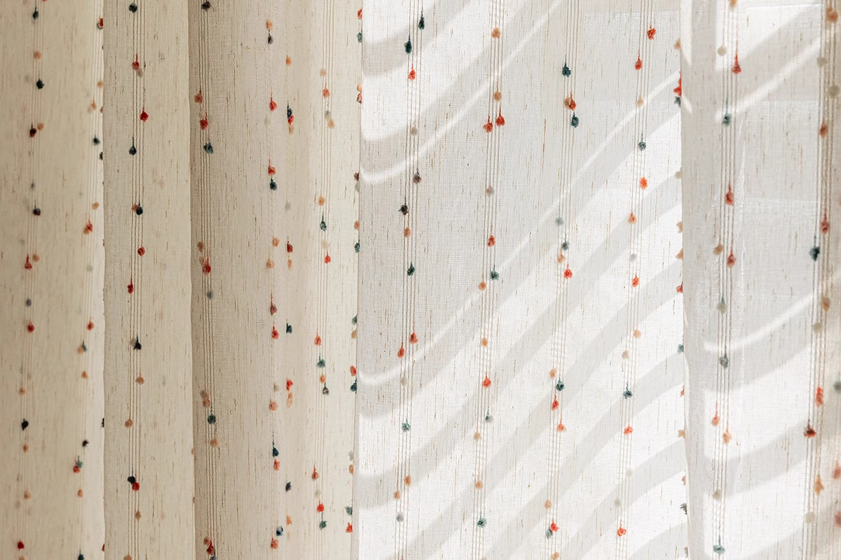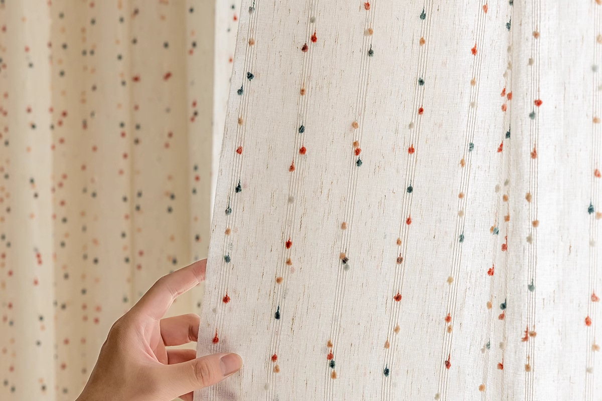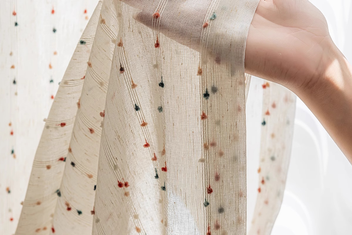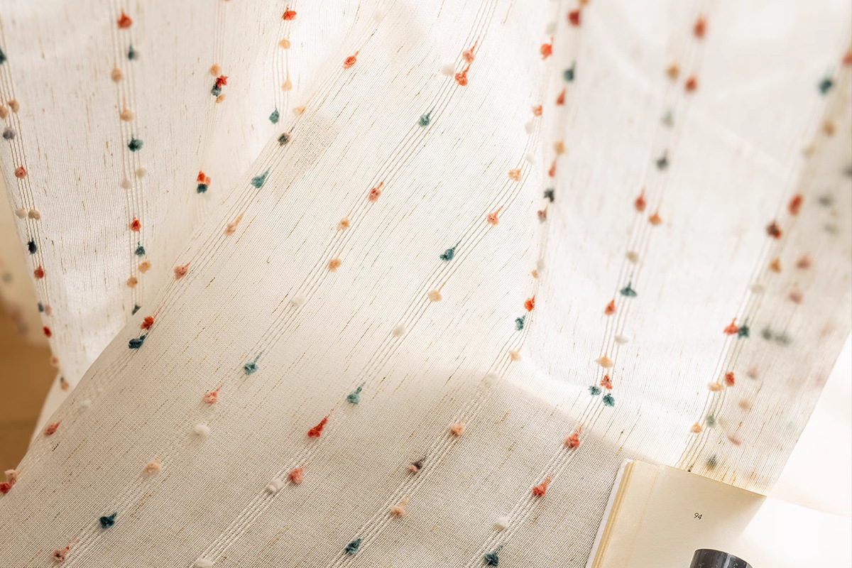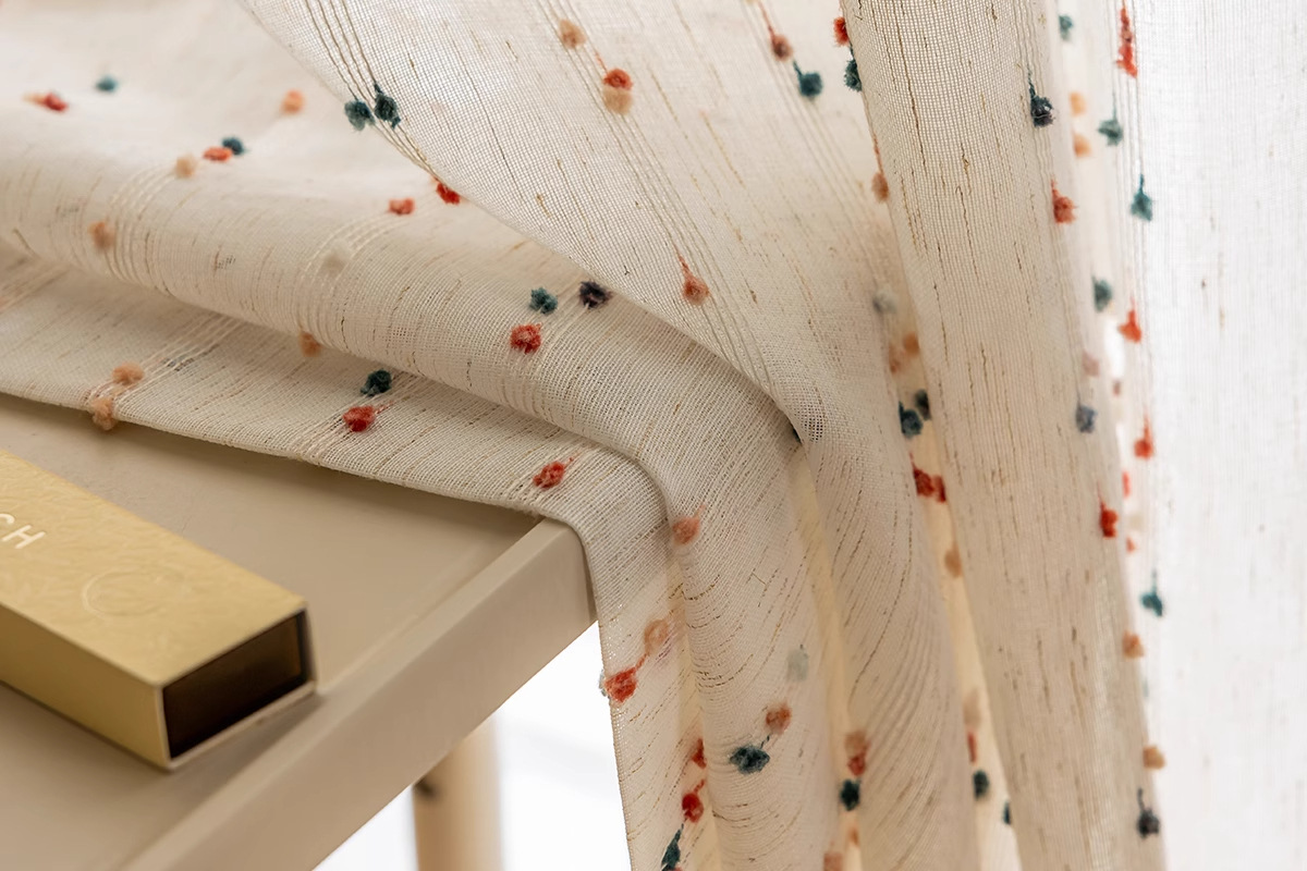 カーテンのカーテンのメーカーの布地の卸売りの完成品は国境を越えて対外貿易の窓の紗の虹の砂糖の豆の亜麻の紗のカーテンの子供の窓の紗です。
