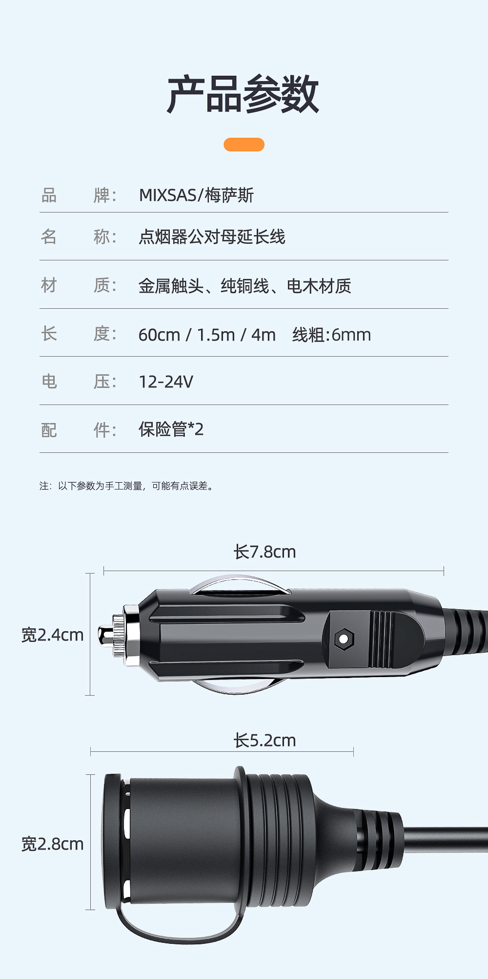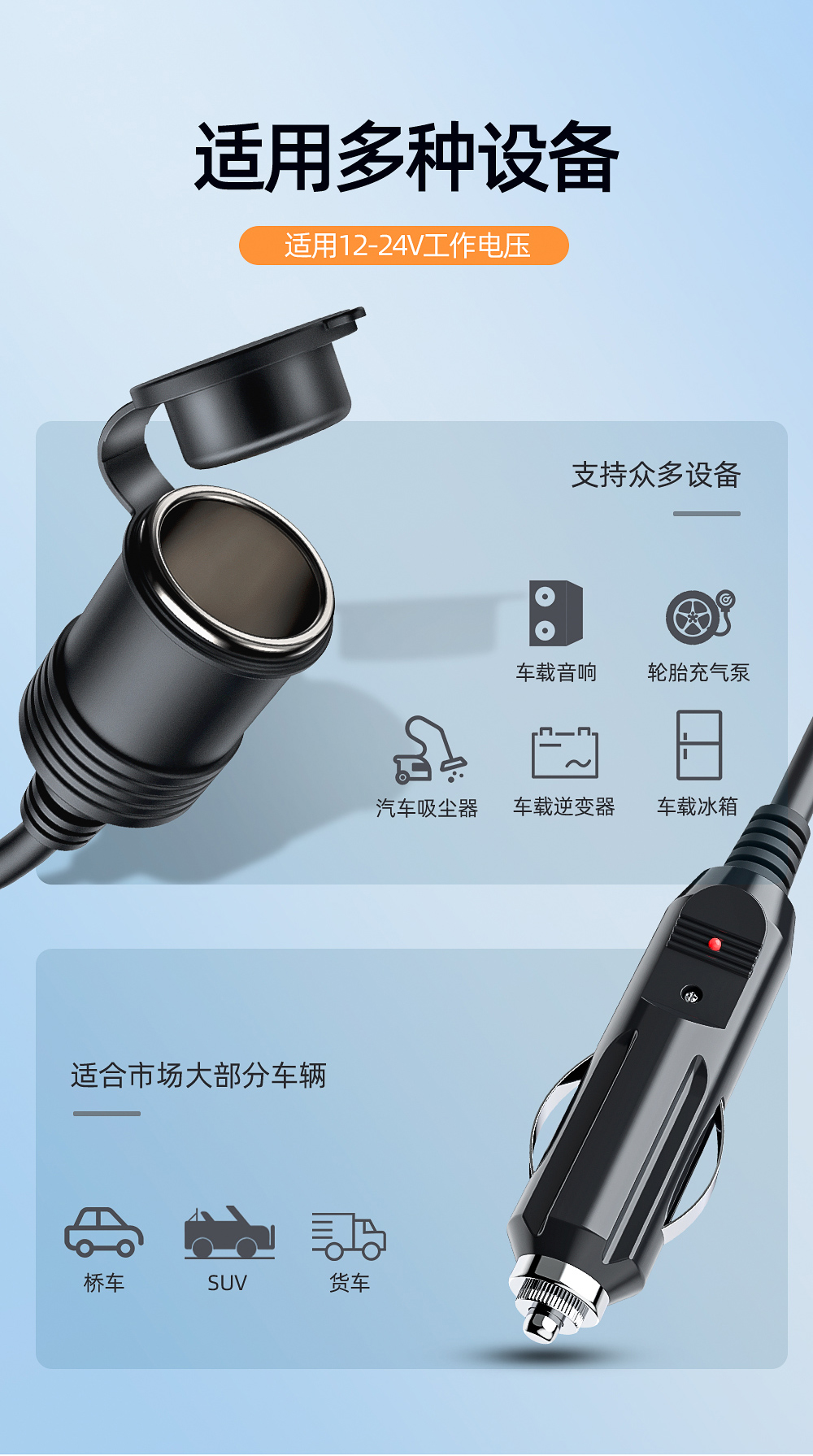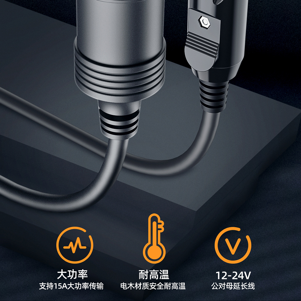車載シガレットプラグ延長線公対母座自動車煙口穴加長線中継12v24v共通