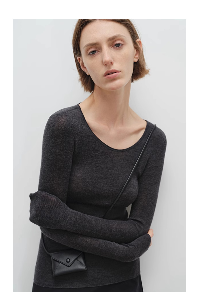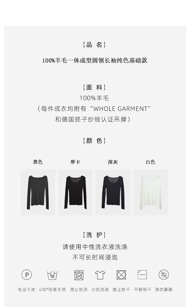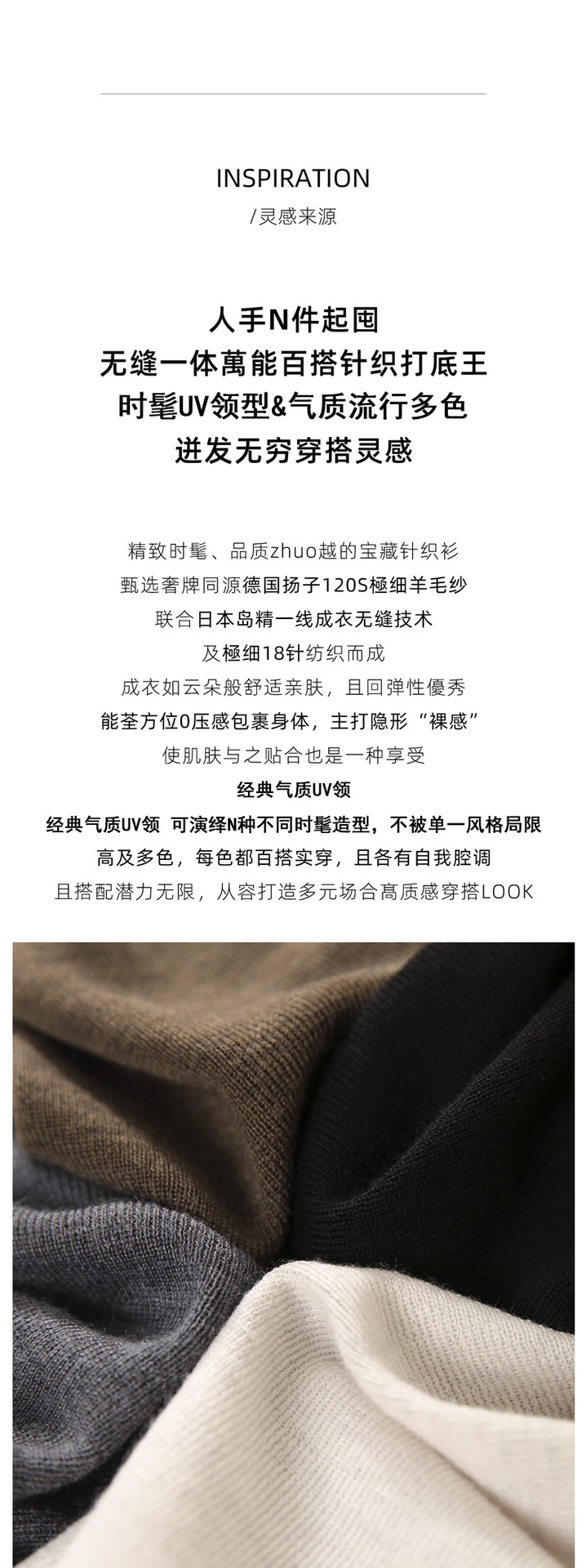 春の新型揚子紗U襟長袖セーター60本のシームレス一体100ウールのスリムニット