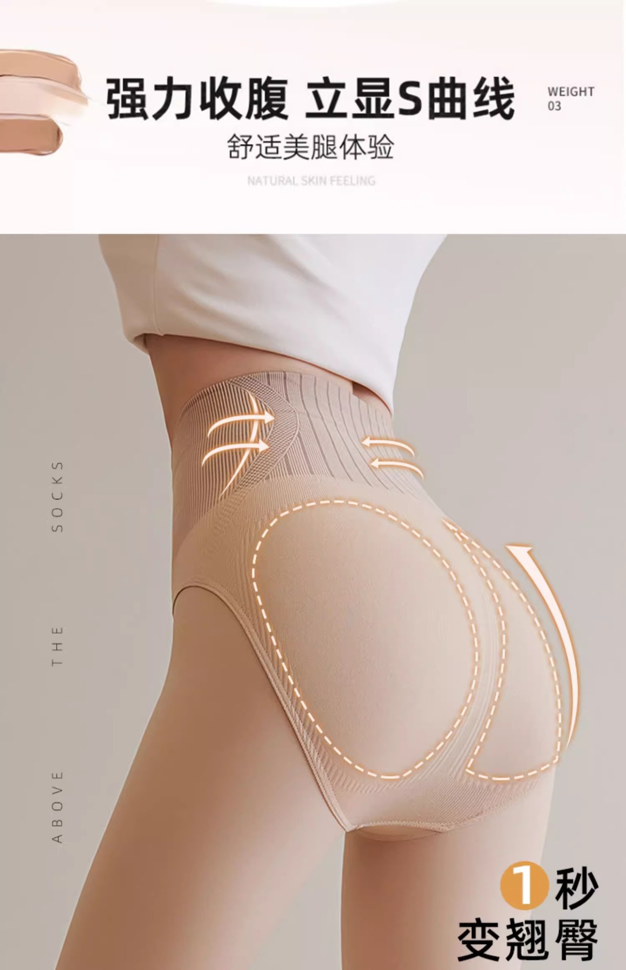 ナチュラルスキン【ストッキングスタイル】【ミッドウエスト】水光沢ソックス